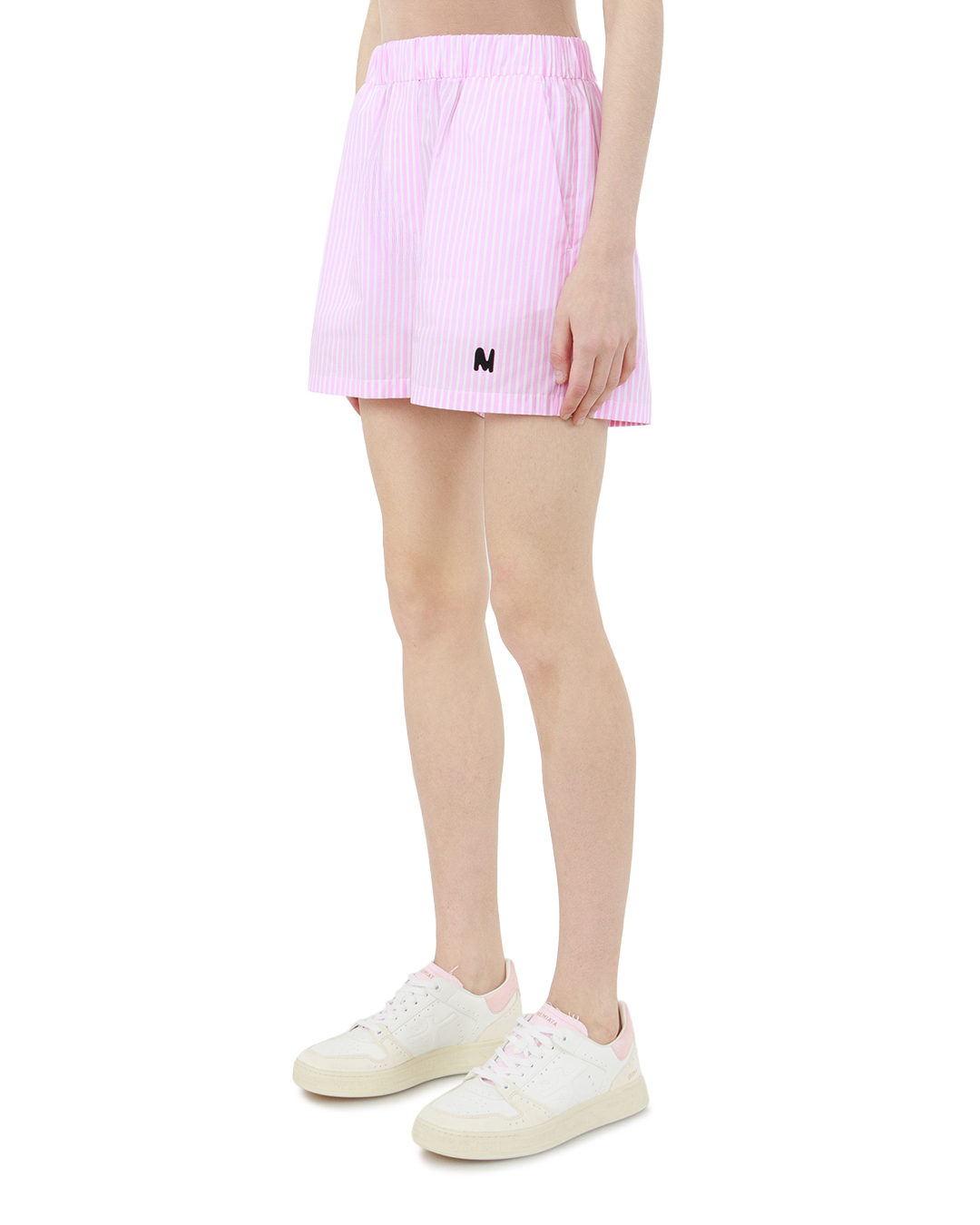Эти нежно-розовые шорты в тонкую полоску — воплощение лёгкости и непринуждённой элегантности. Свободный крой с высокой посадкой создаёт сбалансированный силуэт, который одинаково удачно подчёркивает фигуру и дарит ощущение комфорта. Эластичный пояс обеспечивает идеальную посадку по талии, не сковывая движений и добавляя модели практичности. Особую изюминку изделию придаёт лаконичная полоска — она оживляет дизайн, не перегружая его, и создаёт визуальный эффект стройности. Полосы расположены равномерно, с безупречной точностью, что говорит о высоком качестве кроя и внимании к деталям. На боковой части шорт размещена минималистичная вышивка в виде стилизованной буквы. Этот элемент служит не только фирменным знаком, но и стильным акцентом, который придаёт вещи индивидуальность. Вышивка выполнена аккуратно, нитка гармонично сочетается с общей цветовой гаммой, не выбиваясь из образа. Кромки шорт обработаны ровной подгибкой — такой способ отделки гарантирует долговечность изделия и комфорт при носке, исключая натирание. Швы выполнены безупречно: они ровные, плотные, без торчащих нитей, что подчёркивает мастерство исполнения. Эти шорты — не просто элемент повседневного гардероба, а стильный инструмент для создания лёгких, воздушных образов. Они органично впишутся в летний лук с базовой футболкой и сандалиями, станут изюминкой расслабленного ансамбля с укороченным топом и кедами или дополнят романтичный образ с лёгким блузоном. Сочетание утончённого оттенка, продуманного кроя и аккуратной отделки делает эту модель незаменимой для тех, кто ценит стиль и удобство.