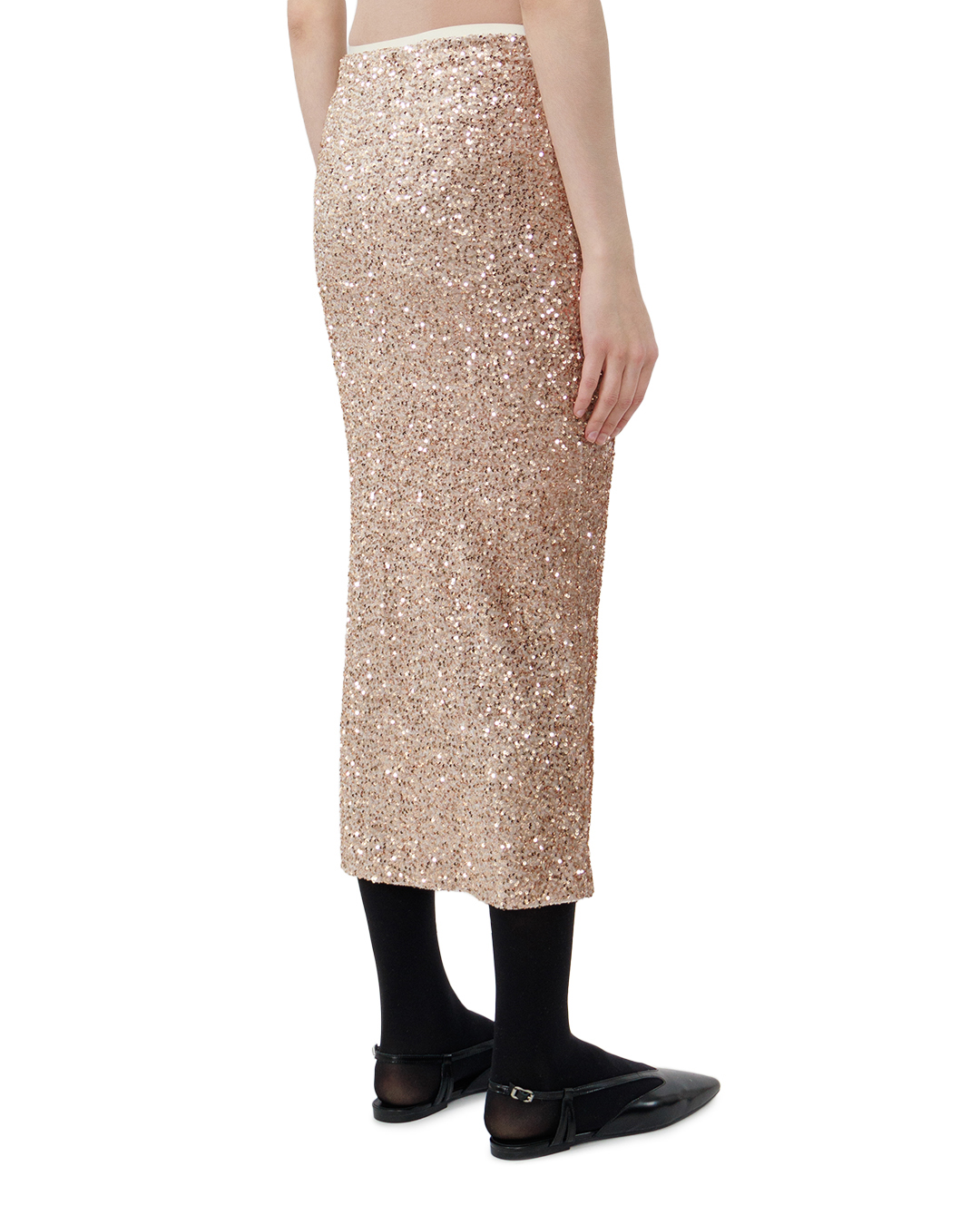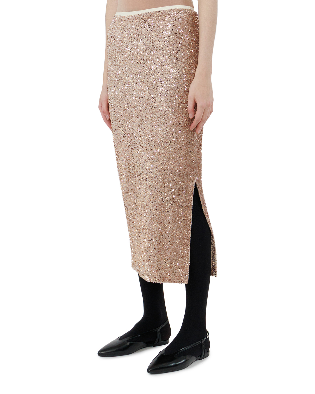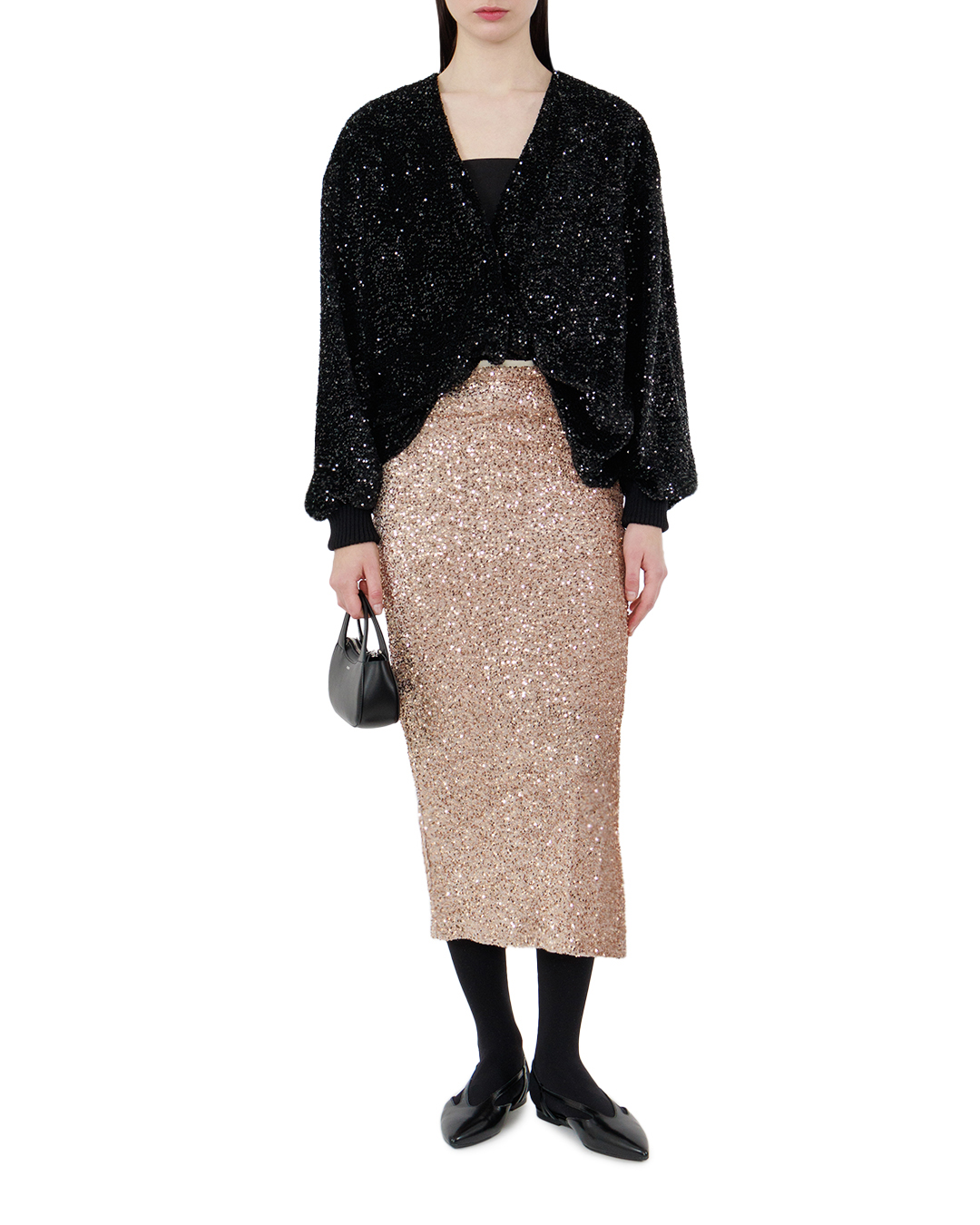 Эта юбка — истинный шедевр вечернего гардероба, излучающий блеск и утонченность. Выполненная из ткани с пайетками, она создаёт завораживающий эффект сияния, который подчёркивает каждое движение. Прямой силуэт миди подчеркивает фигуру, создавая элегантный и стройный образ. Безупречная посадка и аккуратные вертикальные линии делают её универсальной и подходящей для различных типов фигуры. Блестящий светло-розовый оттенок придаёт юбке шик и драматизм, идеально сочетаясь с нейтральными и контрастными топами. Высокая талия зрительно удлиняет ноги и подчеркивает изящность силуэта. Тщательная обработка краев и скрытая застежка на молнию обеспечивают гладкость линии и комфорт. Эта юбка — превосходный выбор для торжественных мероприятий и вечеринок, добавляющий каждому образу нотку гламура и роскоши.