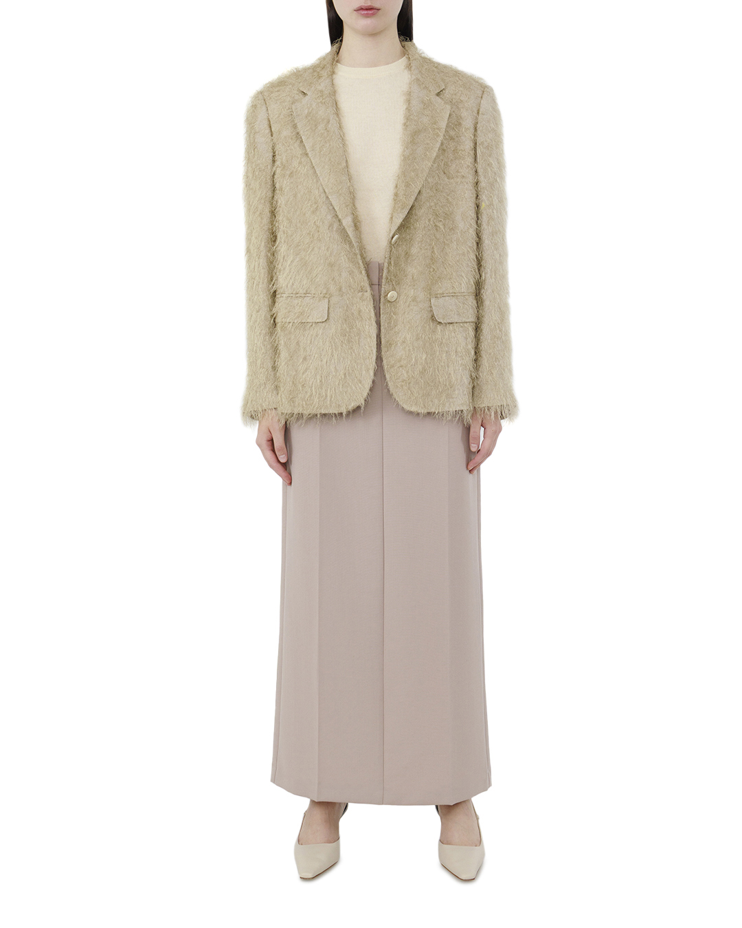 Эта юбка воплощает классическое изящество и современную утонченность, выполненная в нежном бежевом оттенке, она излучает лёгкость и мягкость. Формат юбки «карандаш» придает фигуре стройность и изящность, создавая элегантный и сдержанный силуэт. Высокая посадка подчеркивает линию талии, визуально удлиняя ноги и придавая фигуре скульптурную выразительность. Это делает модель универсальной, подходящей для различных фигур. Передняя часть юбки украшена аккуратными защипами, которые добавляют текстурный акцент и придают изделию дополнительный объем, создавая игру света и тени. Элементы отделки включают в себя тонкие, едва заметные шлевки для ремня, позволяющие добавить дополнительный акцент или оставаться в минималистичной концепции. Застежка на молнии обеспечивает удобство и обеспечивает идеальную посадку. Эта юбка станет основной деталью гардероба для создания стильных и элегантных комплектов, прекрасно сочетаясь с разнообразными блузами и топами. Идеальна для офисных луков и более формальных мероприятий, она внесет нотку изысканности в каждый образ.