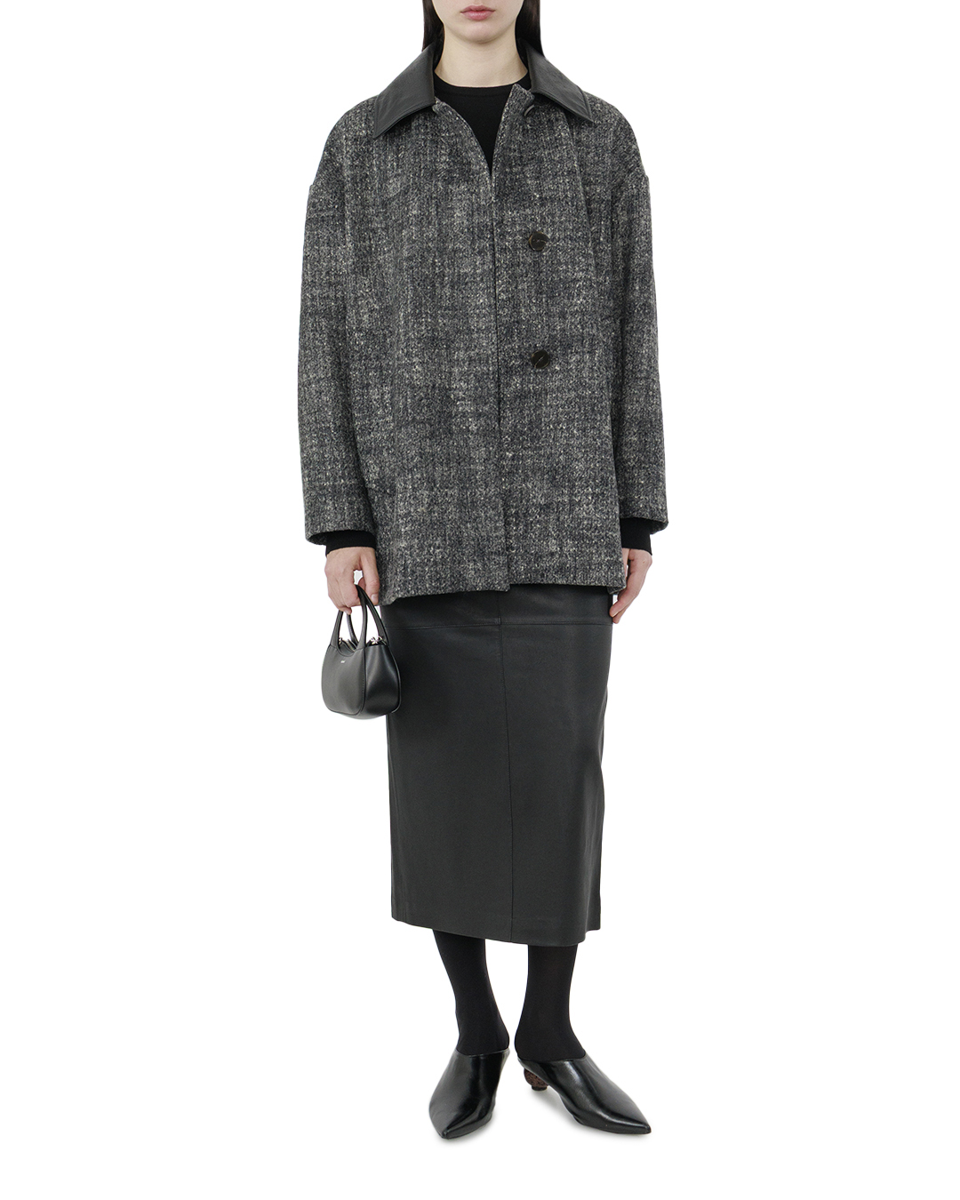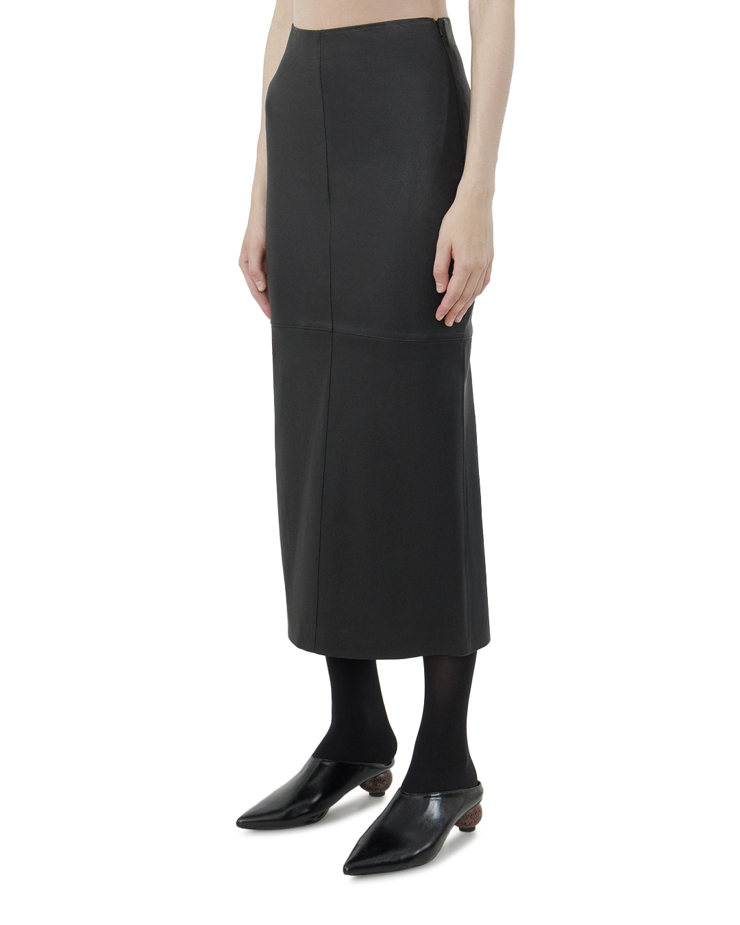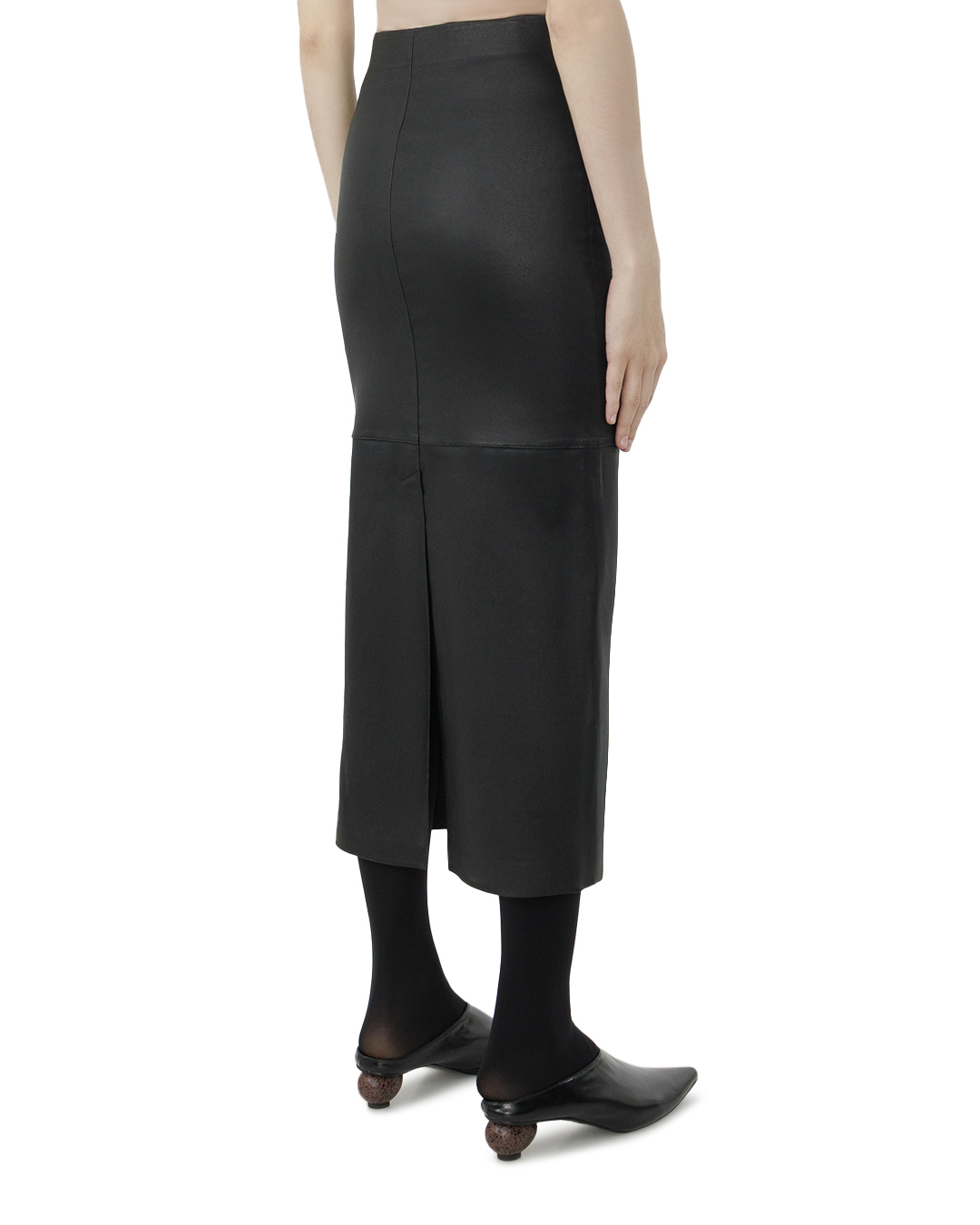 Эта юбка изысканно сочетает в себе современный стиль и классическую элегантность. Она выполнена из высококачественной черной кожи, что придает образу благородство и утонченность, добавляя нотку дерзости. Фасон «карандаш» безупречно обрамляет фигуру, подчеркивая силуэт и создавая стройную линию. Длина миди обеспечивает баланс между сдержанностью и соблазнительностью, делая юбку универсальным элементом гардероба. Верхняя часть юбки аккуратно сидит на талии, создавая эффект идеальной посадки и визуально вытягивая фигуру. Сшивка горизонтальной панелью в центре добавляет изделию текстурный акцент, создавая игру светотени и динамичную структуру. Отделка выполнена с минималистичной тщательностью, что подчеркивает сдержанную роскошь материала. Благодаря этому юбка легко интегрируется в различные стили, выступая как самостоятельный элемент или основа для более смелых аксесуарных решений. Эта юбка станет выразительным акцентом в гардеробе, идеально сочетаясь как с классическими блузами, так и с более повседневными топами, воплощая гармонию и стиль в каждом образе.