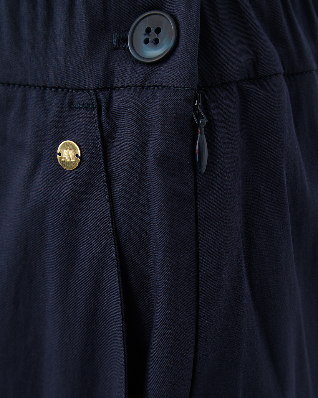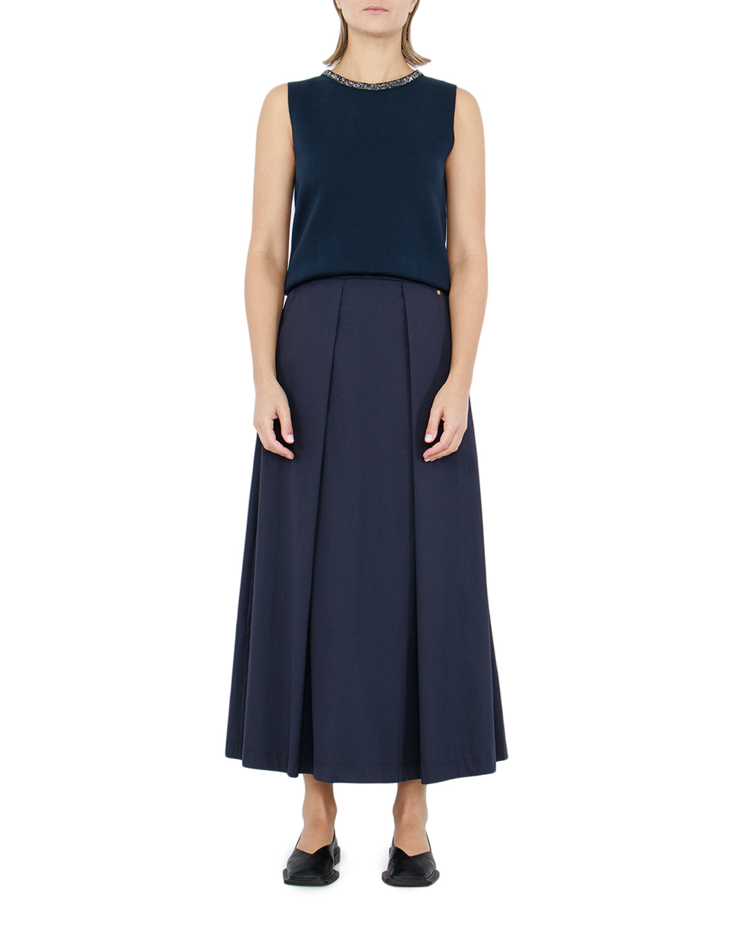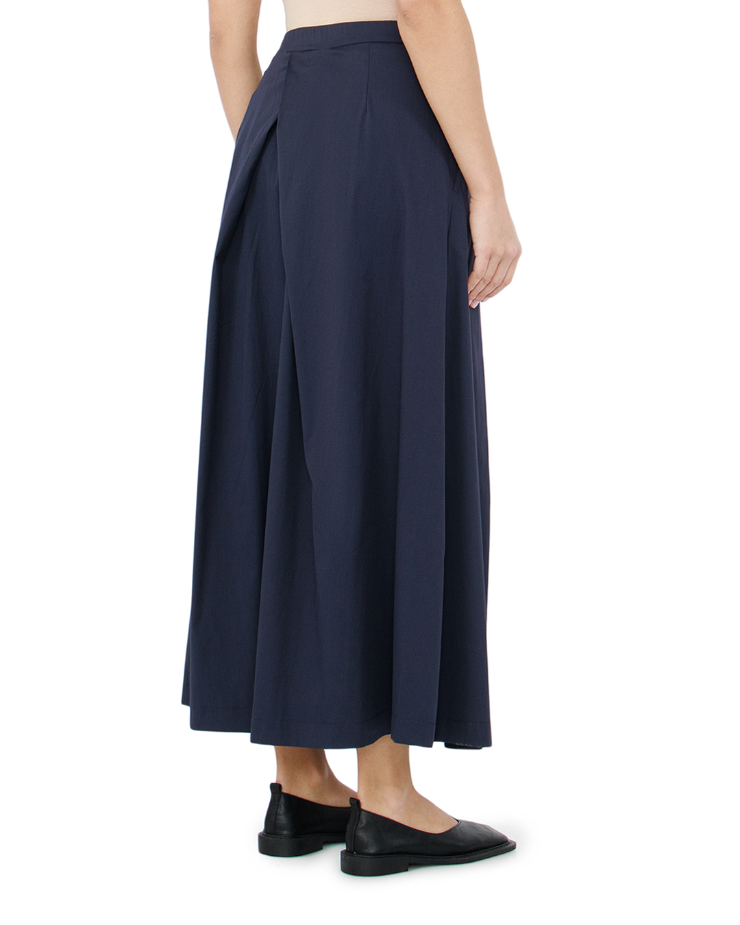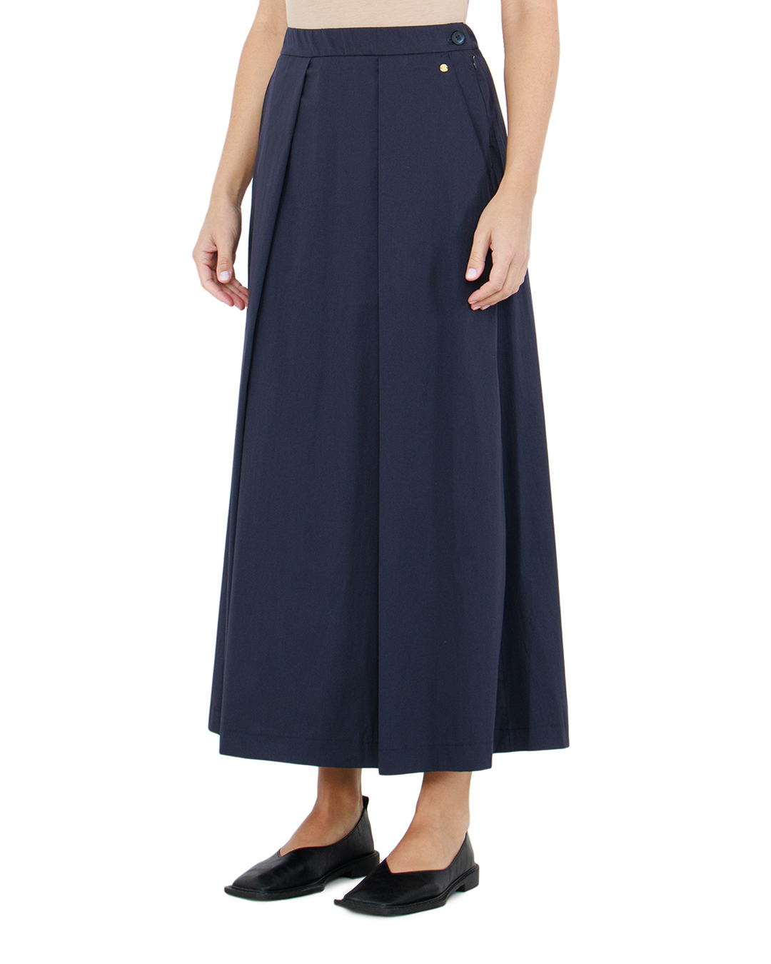 Эта элегантная юбка макси олицетворяет изящество и утонченность. Выполненная из лёгкой и струящейся ткани, она создаёт эффект плавного движения при каждом шаге, добавляя образу динамику и женственность. Высокая посадка визуально вытягивает силуэт, подчёркивая линию талии и придавая образу стройность. Чистые линии и минималистичный крой создают ощущение простоты и легкости, что делает юбку универсальной для различных ситуаций. Интересным элементом отделки являются складки и тщательно проработанные швы, которые добавляют текстурный акцент и созданы с исключительной точностью. Это позволяет юбке легко сочетаться как с повседневными блузами, так и с более формальными топами, добавляя элегантность и стиль в любой ансамбль.