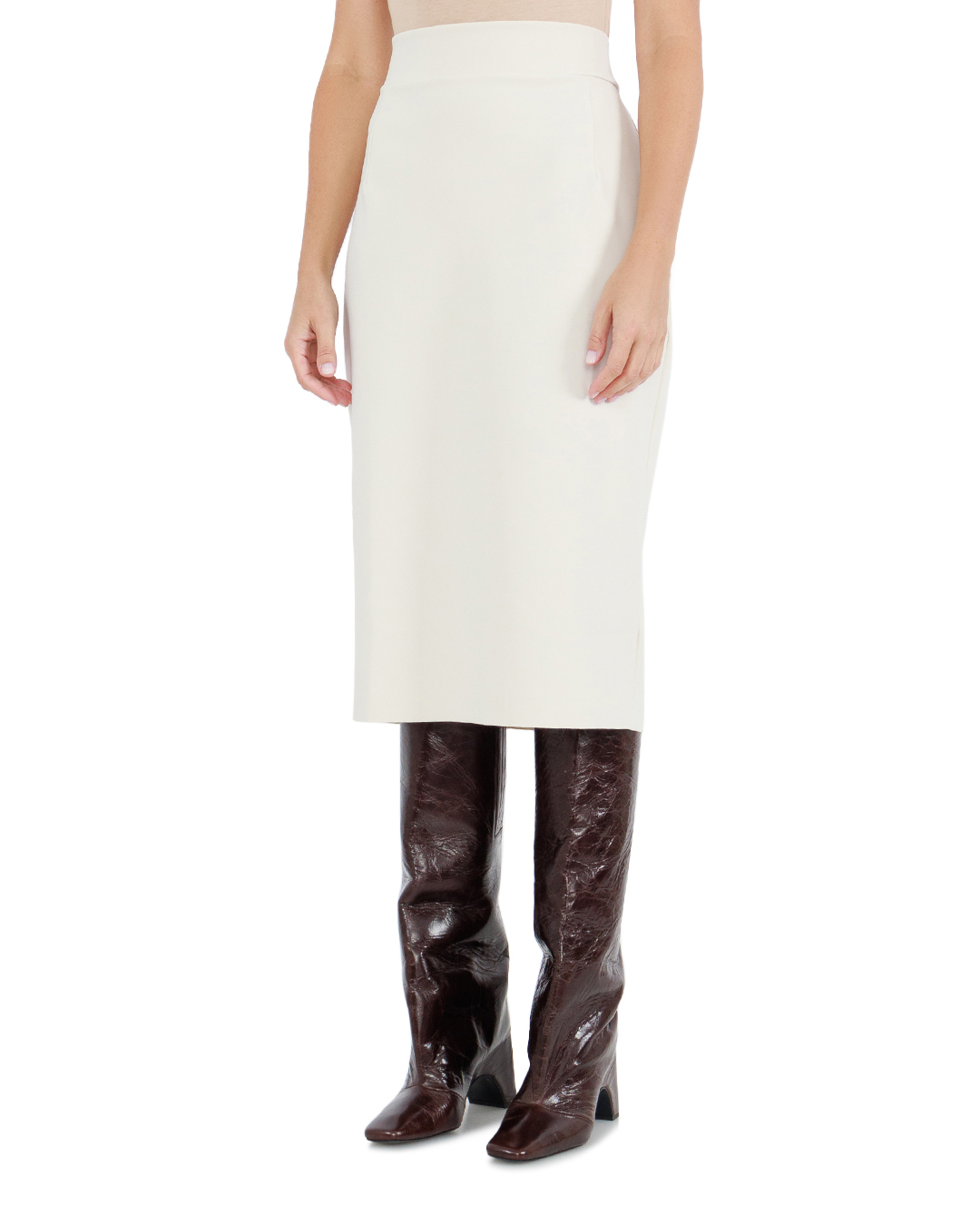 Юбка карандаш из трикотажной ткани. Модель с эластичным широким поясом резинкой.