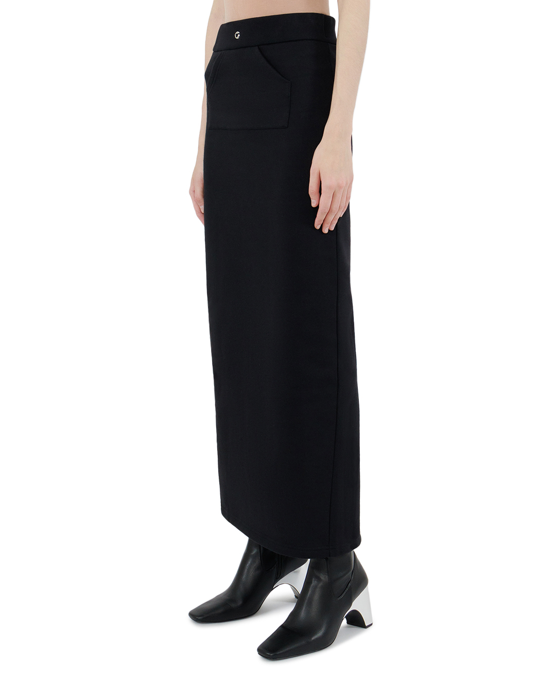 Эта юбка — образец утонченной элегантности и минималистичного дизайна, идеально подходящая для создания сдержанных и стильных образов. Выполненная из качественного материала глубокого черного цвета, она подчеркивает силуэт и визуально вытягивает фигуру, создавая стройный эффект. Прямой крой в стиле "карандаш" добавляет юбке классической строгости, а длина макси делает ее современным трендом. Верхняя часть юбки украшена изящными швами, создающими аккуратный карман, который добавляет функциональности без ущерба для эстетики. Эта деталь акцентирована небольшой металлической кнопкой, которая придает изделию лаконичный, но заметный штрих. Юбка легко сочетается как с элегантными блузами для офисного стиля, так и с расслабленными топами для вечерних выходов. Эта юбка — идеальный выбор для тех, кто ценит простоту с изысканным акцентом, позволяя создавать разнообразные образы и всегда оставаться на высоте в мире стиля и моды.