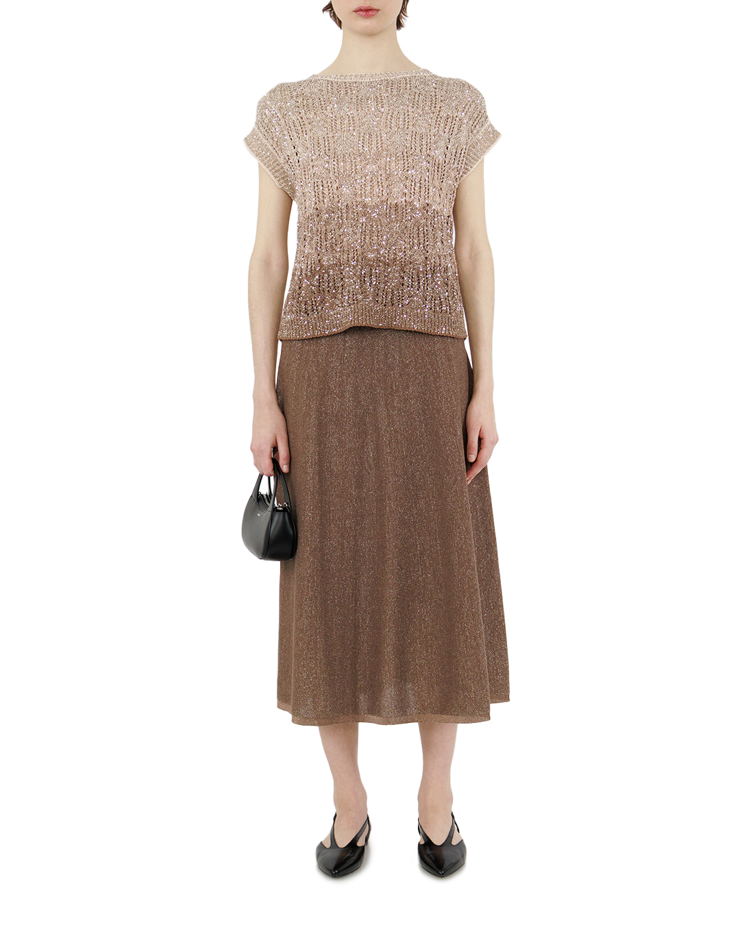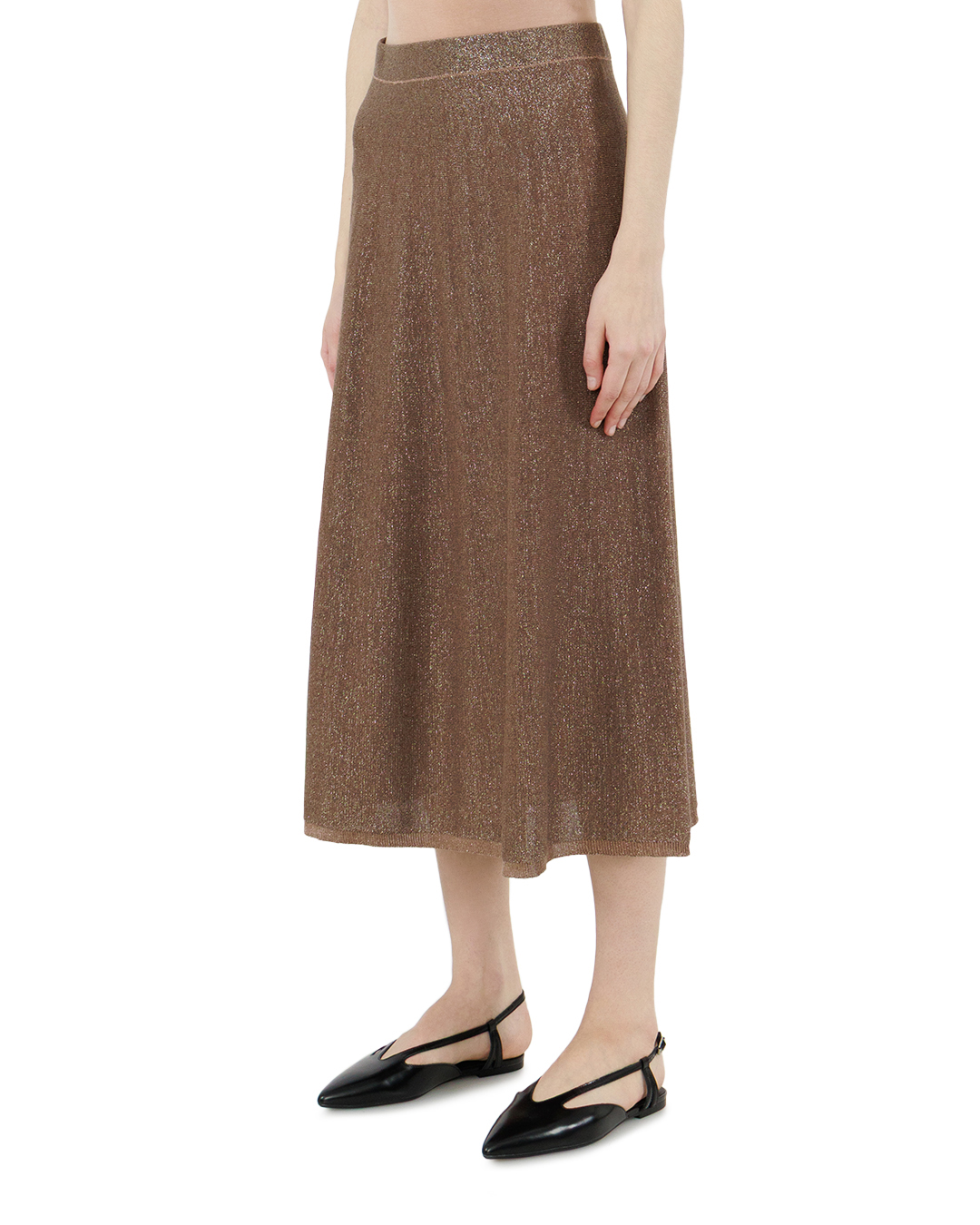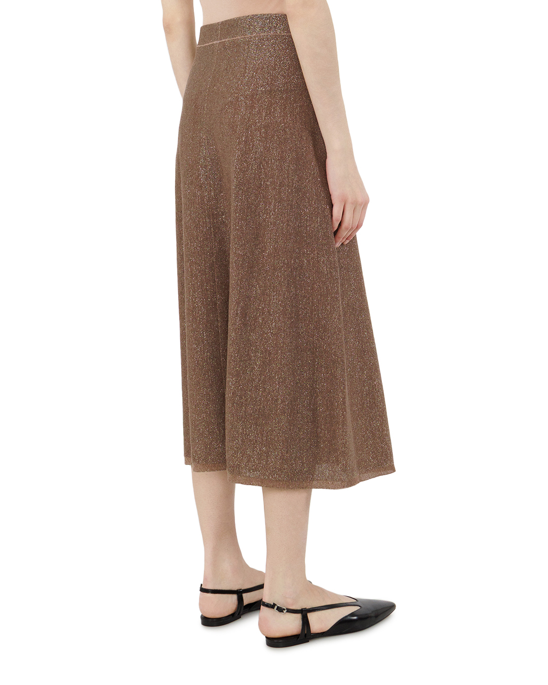 Эта юбка — истинное воплощение элегантности с лёгким налётом роскоши. Благородный коричнево-золотистый оттенок, усиленный мерцанием люрекса, создаёт завораживающий эффект: ткань словно оживает при каждом движении, играя бликами света и превращая обычную вещь в ювелирное украшение гардероба. Классический А-силуэт модели продуман до мелочей — он мягко подчёркивает талию, плавно расширяясь к низу, и визуально вытягивает силуэт. Длина макси придаёт образу аристократичную сдержанность, позволяя создавать как повседневные, так и вечерние луки. Ткань с люрексовой нитью выглядит одновременно плотной и воздушной, создавая удивительную игру света и тени. Микрорельефная вязка добавляет глубины и тактильного интереса, а лёгкий стрейч в составе обеспечивает идеальную посадку по фигуре — юбка мягко облегает, не сковывая движений. Эта модель универсальна: она органично впишется в разные стили. Представьте её с лаконичной водолазкой и ботильонами для сдержанного офисного образа или с блестящим топом и туфлями на каблуке для вечернего выхода. Юбка станет настоящей находкой для тех, кто ценит баланс между изысканностью и комфортом — она добавит любому образу нотку гламура, оставаясь при этом практичной и удобной.
