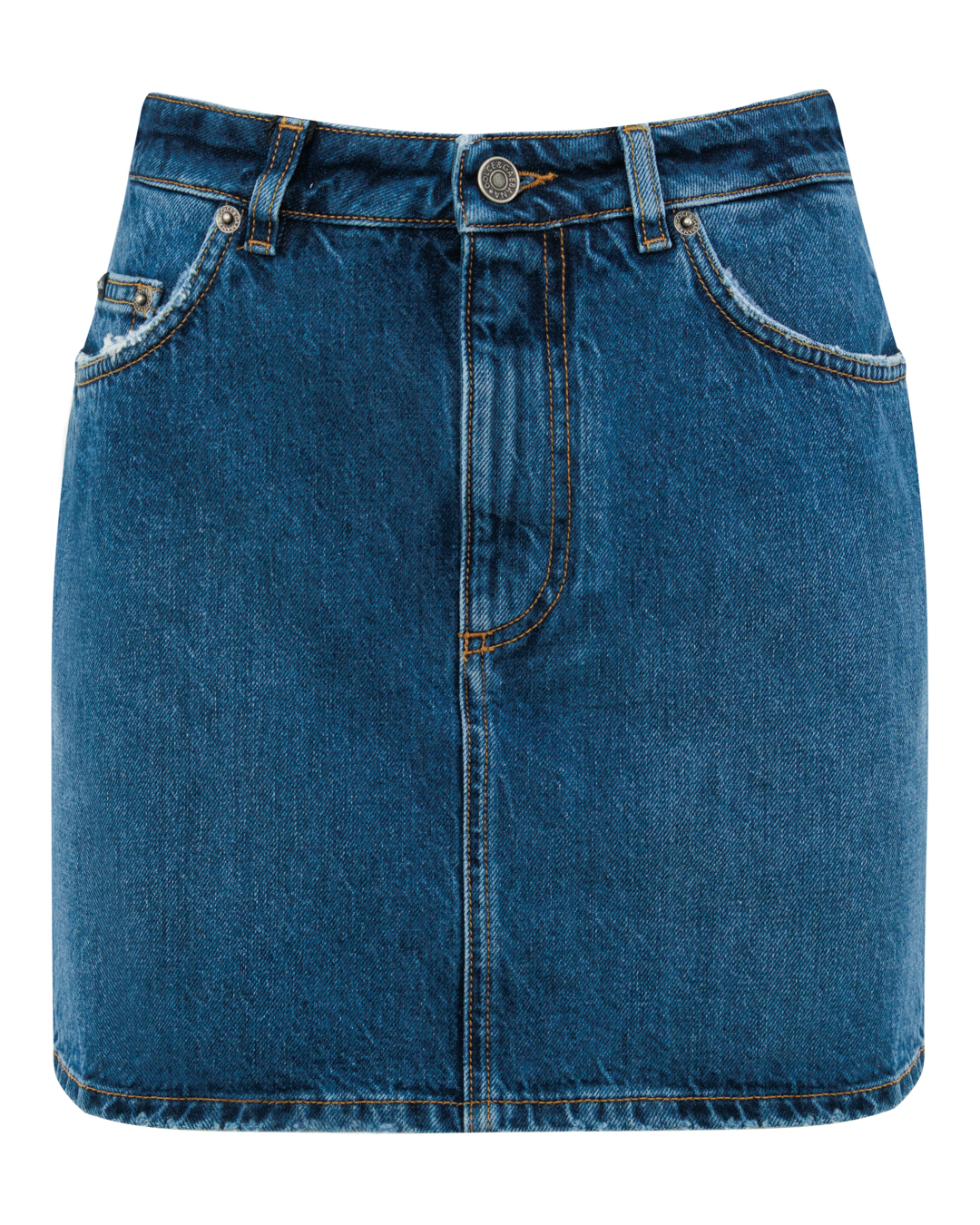 Эта джинсовая юбка — воплощение лаконичной элегантности. Классический синий оттенок денима создаёт сдержанный, но выразительный образ. Силуэт прямой, лаконичный, подчёркивает фигуру без излишней облегаемости. Карманы с аккуратной отстрочкой добавляют практичности, не нарушая гармонию линий. Пояс оформлен традиционной застёжкой на металлическую пуговицу, а контрастная оранжевая прострочка по швам придаёт изделию характер. Чистота кроя и продуманные детали делают эту юбку универсальной основой для стильных композиций.