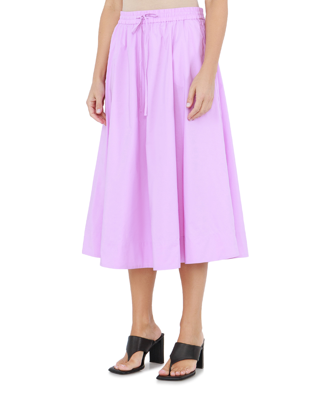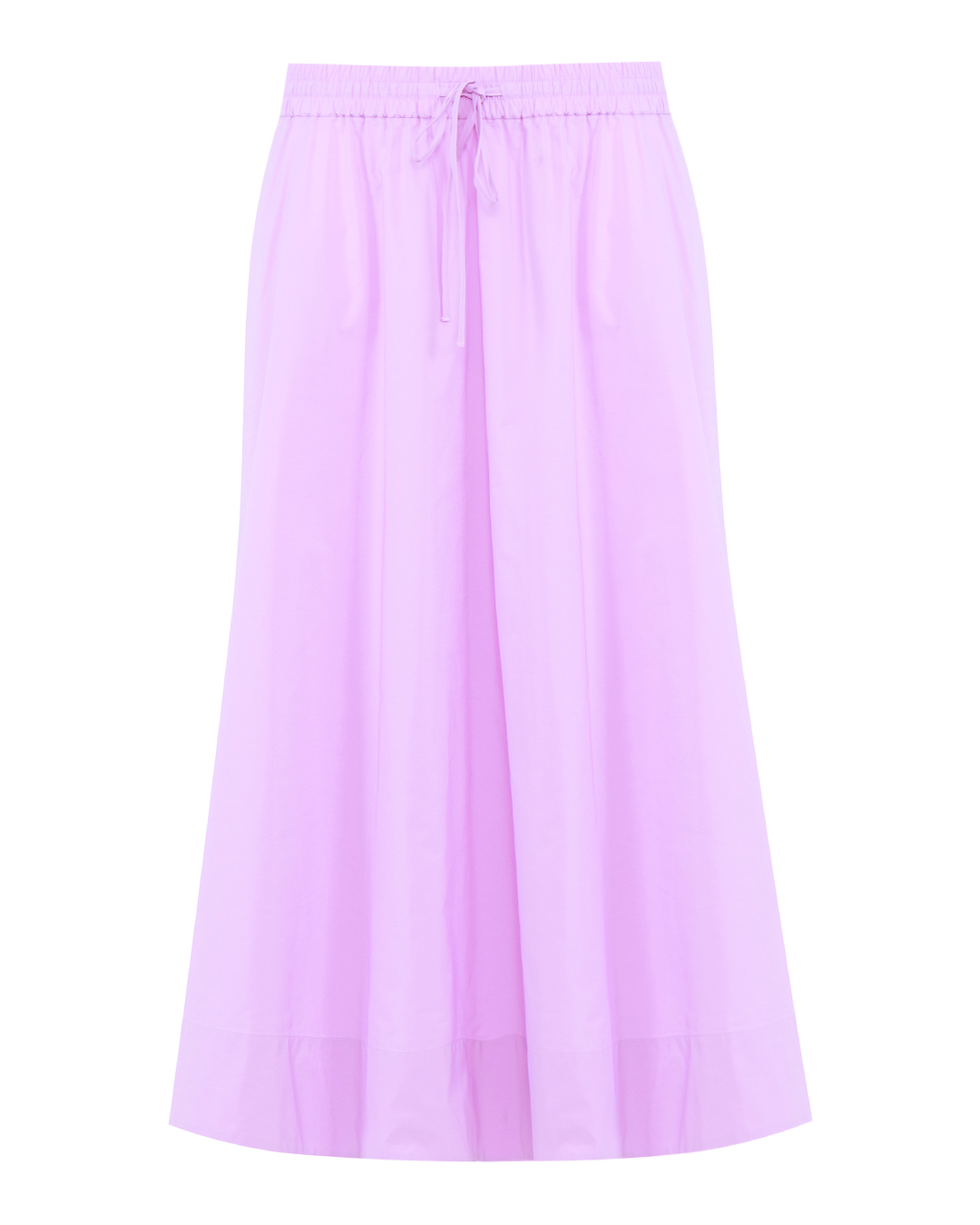Эта юбка Essentiel — воплощение лёгкости и романтичности. Выполненная в нежном лавандовом оттенке, она добавляет в образ свежесть и изысканность. Изготовленная из легкой ткани, юбка свободно ниспадает и создает элегантный, плавный силуэт. Эластичная талия позволяет подчеркнуть фигуру и обеспечивает максимальный комфорт. Тонкая завязка добавляет изящный акцент и позволяет регулировать посадку. Прямые линии и непринужденный крой делают эту модель универсальной для различных стилей и ситуаций. Отделка в виде незаметных швов и отсутствие лишних деталей подчеркивают минималистичный и утонченный дизайн. Эта юбка легко комбинируется с простыми топами и блузами, превращая каждый наряд в модное заявление. Идеальна для создания лёгких и воздушных летних образов.