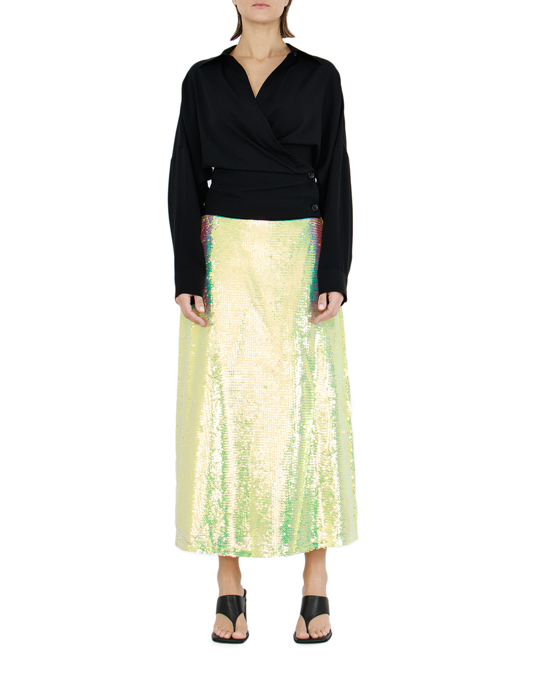 Юбка "IN THE MOOD FOR LOVE" — это истинное воплощение вечернего гламура и изысканности. Яркий лаймовый цвет, усиленный мерцающими пайетками, создаёт неповторимое переливание светотени, привлекая восхищенные взгляды. Прямой силуэт подчёркивает фигуру, добавляя элегантности и утонченности. Высокая талия визуально удлиняет ноги, что делает образ ещё более привлекательным и гармоничным. Тщательная отделка швов и качественная подкладка обеспечивают комфорт и идеальную посадку, придавая юбке дополнительную ценность и долговечность. Этот эффектный предмет гардероба станет прекрасным выбором для вечерних мероприятий и особых случаев, удачно сочетаясь как с простыми топами, так и с более сложными блузами. Юбка "IN THE MOOD FOR LOVE" трансформирует любой образ, добавляя в него шикарную ноту и подчёркивая индивидуальный стиль.