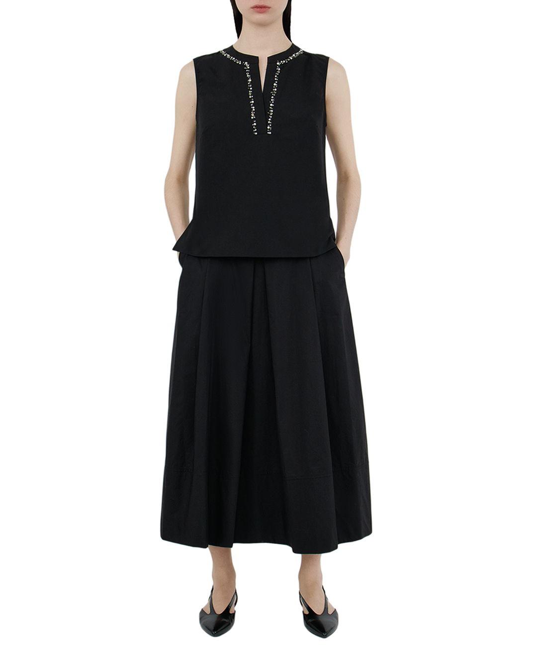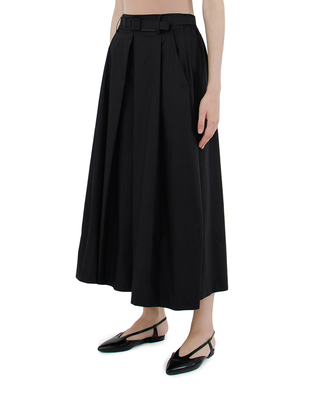 Эта юбка — воплощение современной классики и утонченного стиля. Изготовленная в насыщенном черном цвете, она привлекает внимание своим благородным и элегантным силуэтом. Макси-длина и ровные линии подчеркивают изящность фигуры, а центральная складка добавляет динамики и структуры, создавая эффект движения. Высокая талия акцентирована изящным поясом с декоративной пряжкой, что позволяет подчеркивать линию талии и создавать законченный образ. Ткань отличается высокой плотностью и шикарной драпировкой, что подчеркивает качество исполнения. Изделие обработано с особым вниманием к швам, обеспечивая долговечность и идеальную посадку. Эта юбка станет ключевым элементом в вашем гардеробе, легко сочетаясь как с деловыми блузами, так и с более расслабленными топами. Она идеально подойдет для создания как официальных, так и более casual образов, даря ощущение уверенности и стиля в любой ситуации.