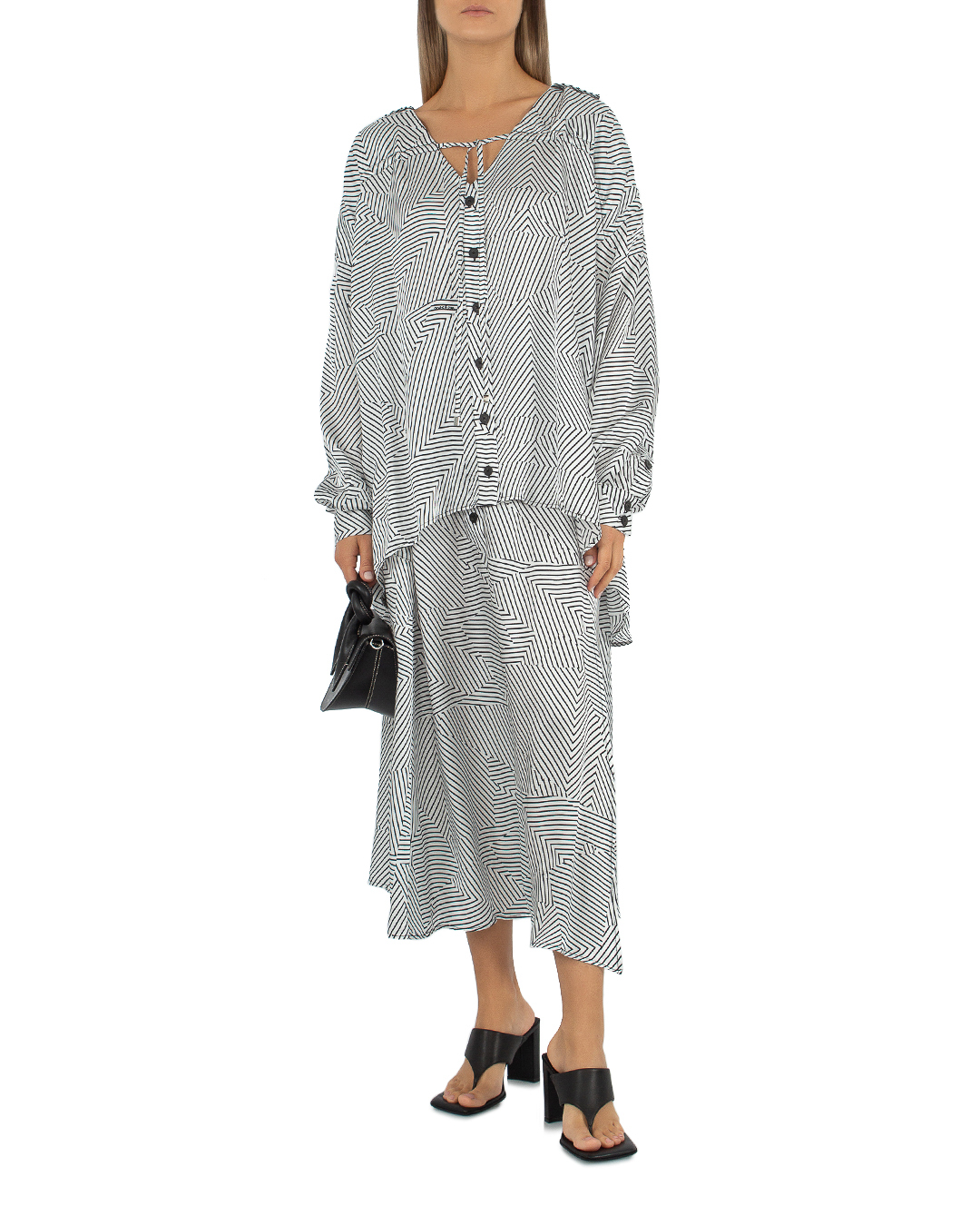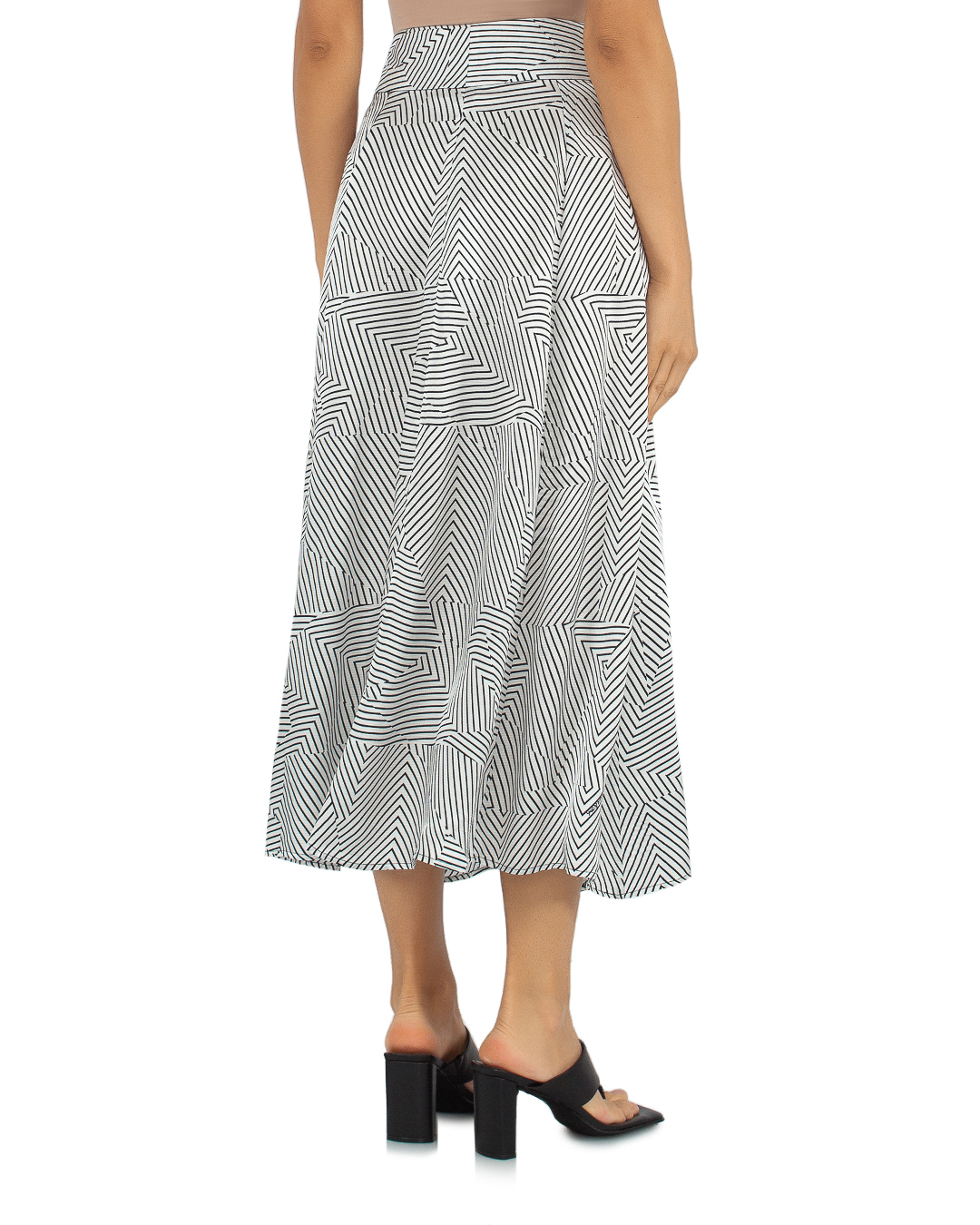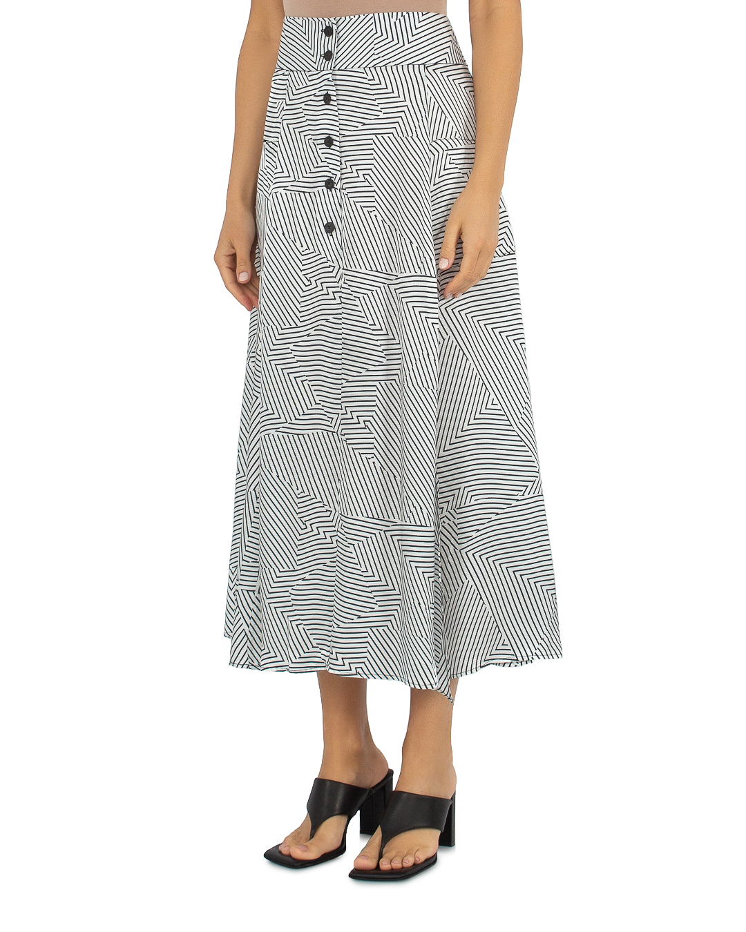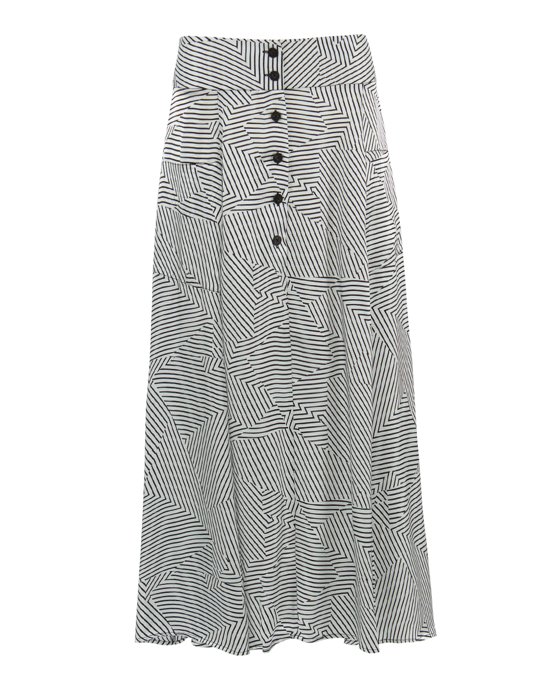 Юбка MAX&MOI из вискозы в полоску. Модель длины миди с высокой посадкой на талии и застежкой на пуговицы.