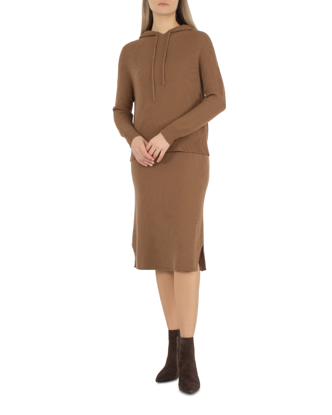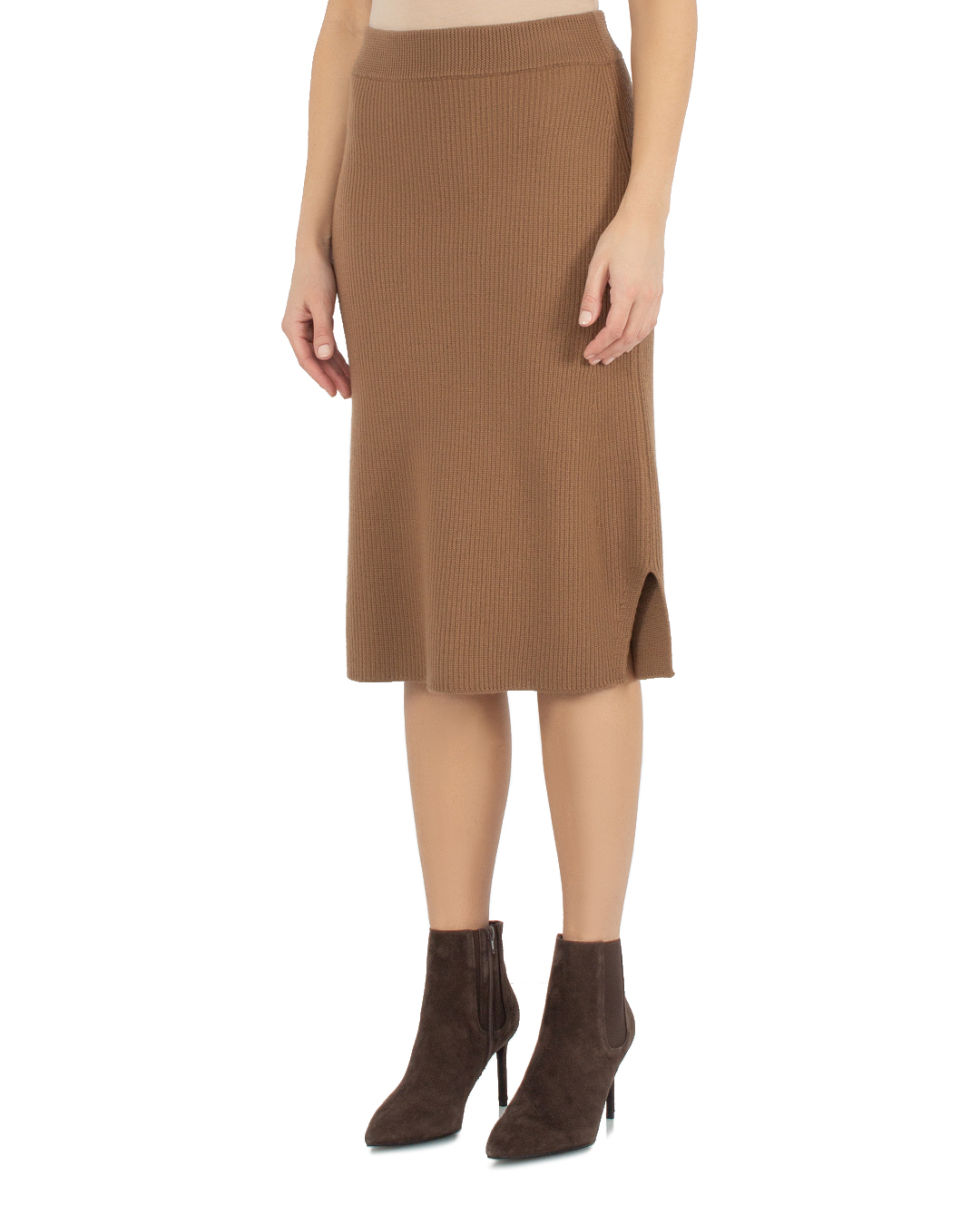 Юбка MaxMara из мягкой вязаной шерсти коричневого оттенка. Эластичное изделие прямого силуэта с невысокими разрезами по бокам.