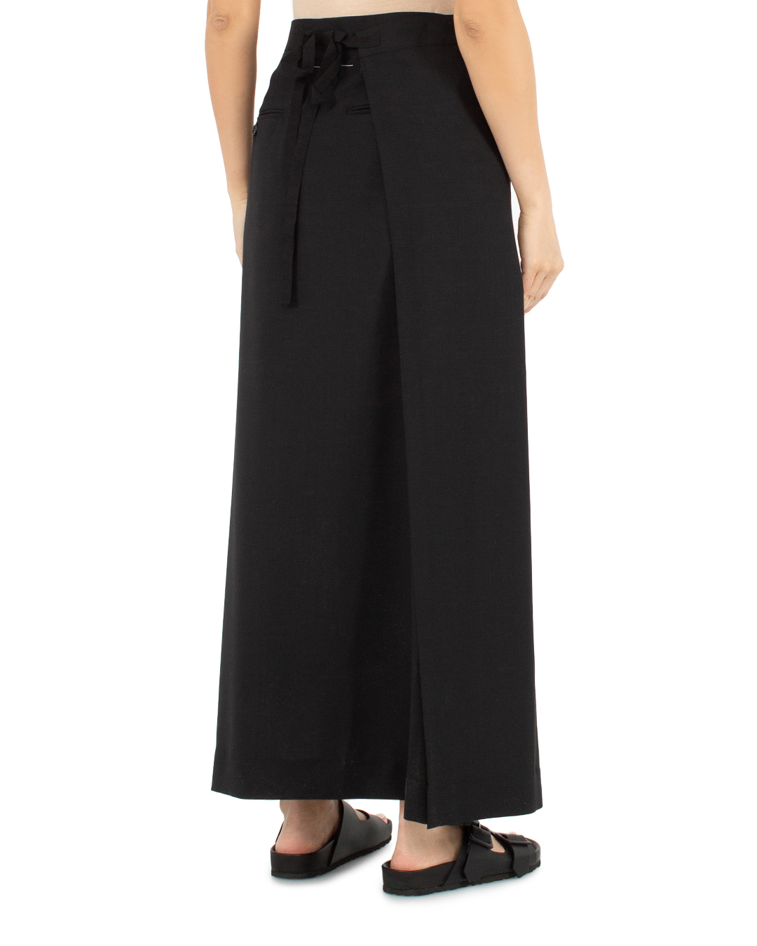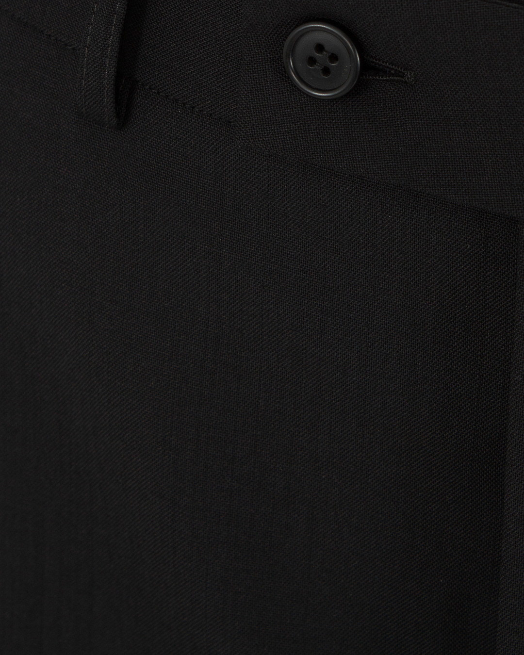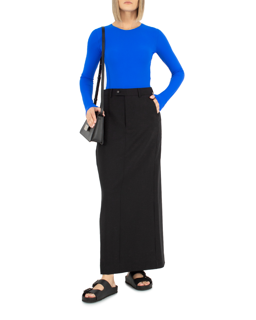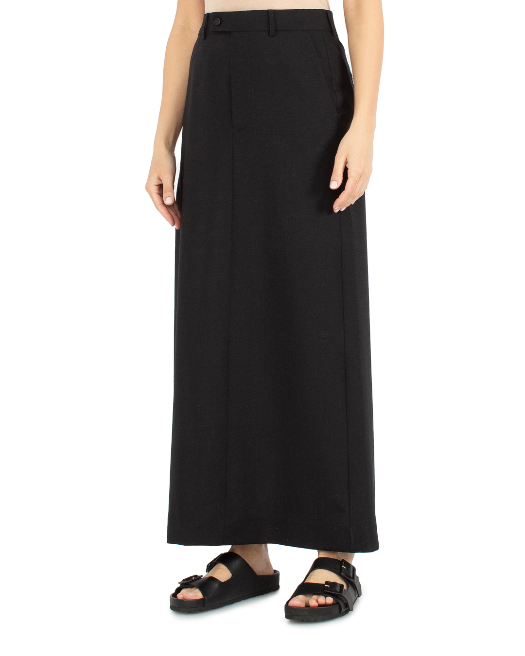 Юбка MM6 Maison Margiela из костюмной шерсти черного цвета. Модель прямого силуэта с высокой посадкой на талии и застежкой на молнию и пуговицу.