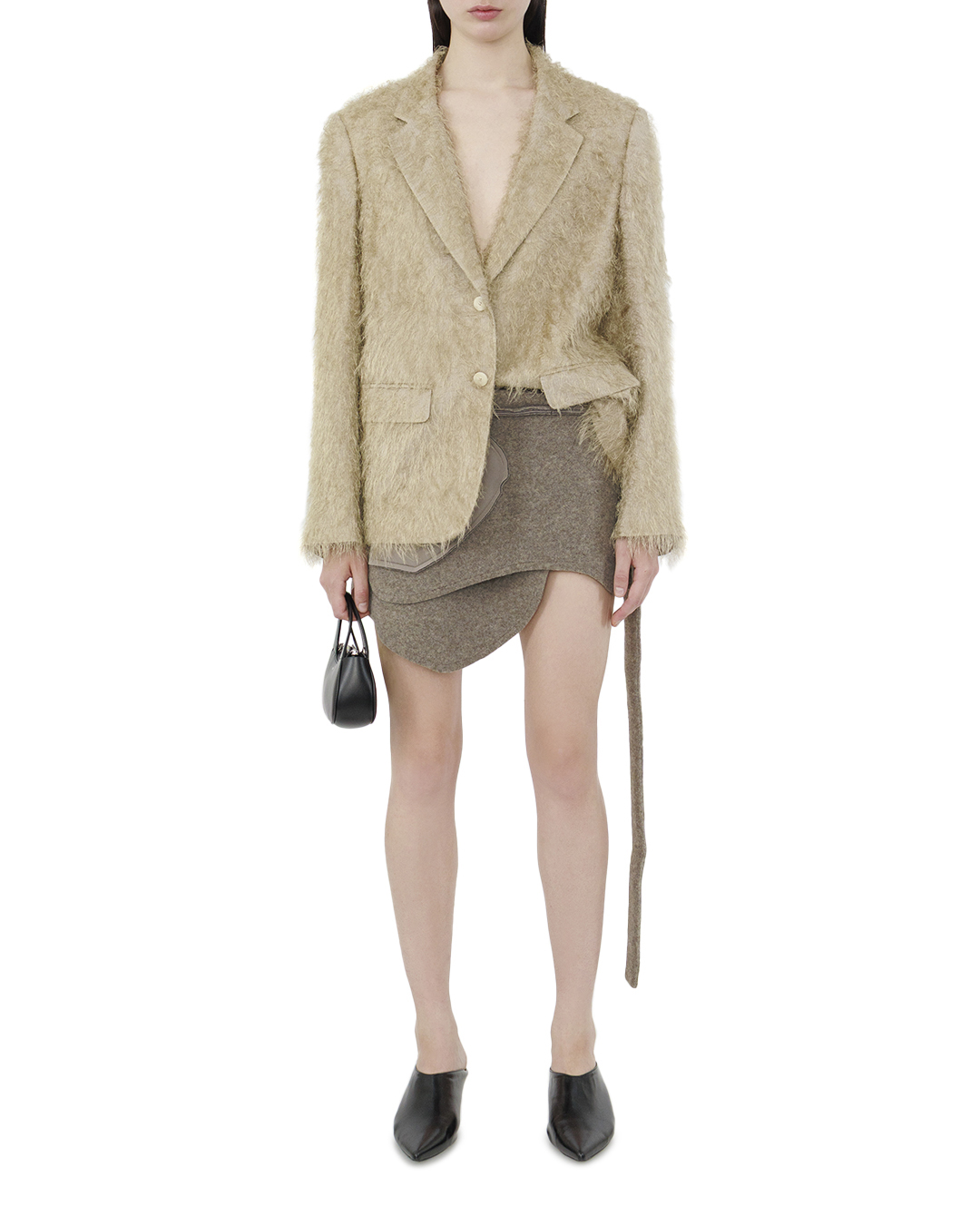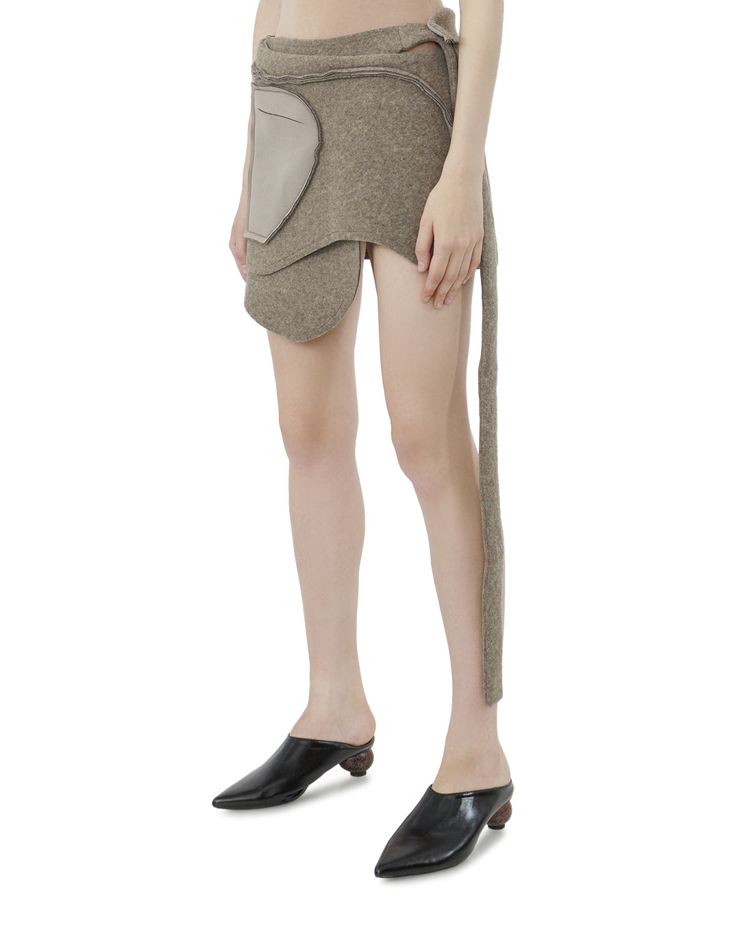 Эта юбка — уникальная интерпретация классического стиля в авангардном ключе. Искусно выполненная из плотной, слегка текстурированной ткани, она создает выразительный силуэт, выделяясь на фоне традиционных моделей. Асимметричный крой добавляет динамичности и визуального интереса, привлекая взгляд и создавая ощущение движения. Оригинальные драпировки и изогнутые линии подчеркивают артистичность дизайна, добавляя архитектурные нотки в общий вид. Декоративный карман с плавными линиями служит акцентом, который не только функционален, но и дополняет стиль юбки, придавая ей современное звучание. Юбка фиксируется с помощью изящного завязывающегося элемента, позволяющего регулировать посадку и обеспечивая комфорт при носке. Высококачественная отделка и внимание к деталям гарантируют долговечность и износостойкость. Эта юбка станет ключевым элементом вашего гардероба, позволяя создавать разнообразные стильные образы, от кэжуал до более изысканных и экспериментальных сочетаний.