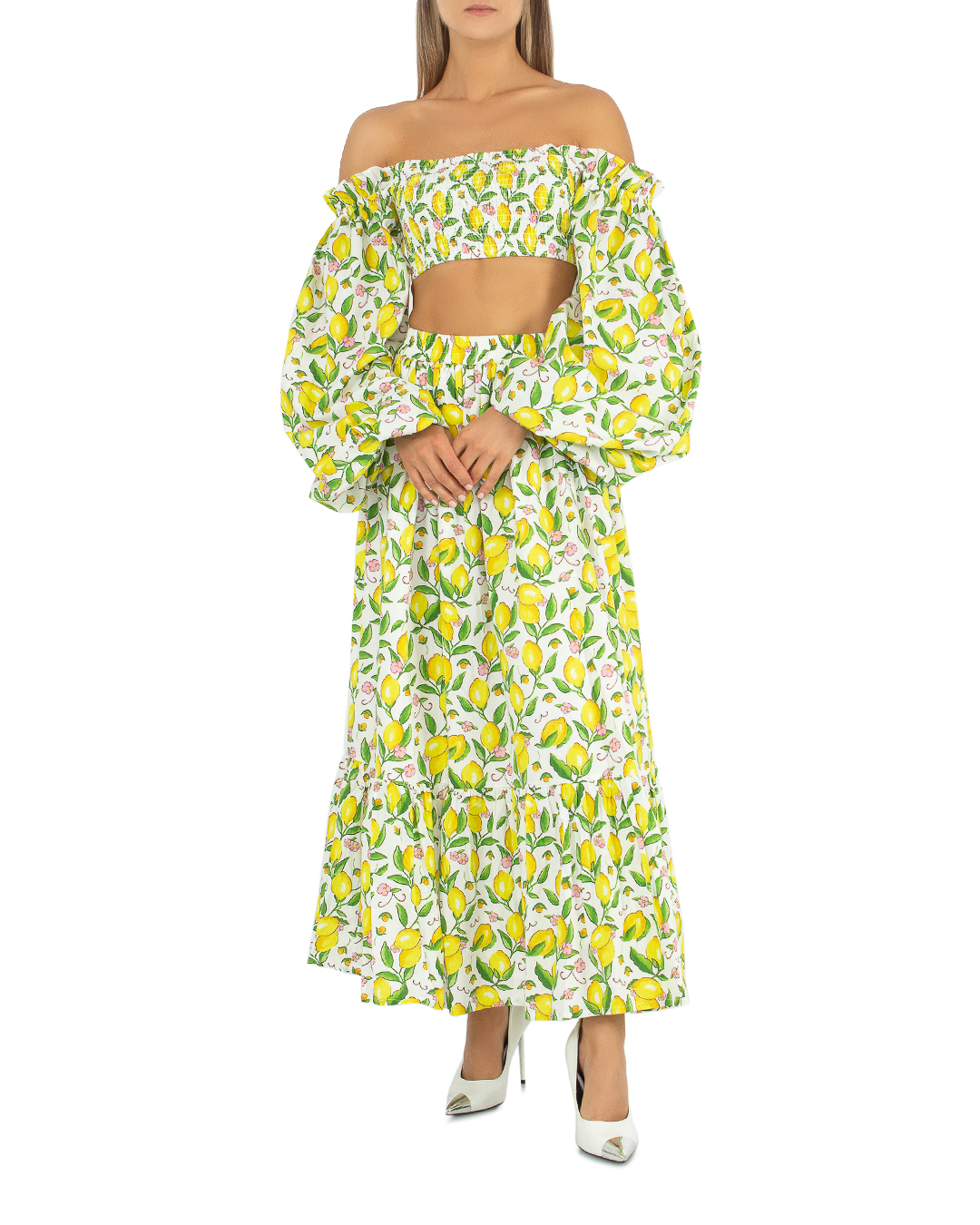 Юбка Palm Noosa из хлопка с летним принтом. Модель длины макси с высокой посадкой на талии.