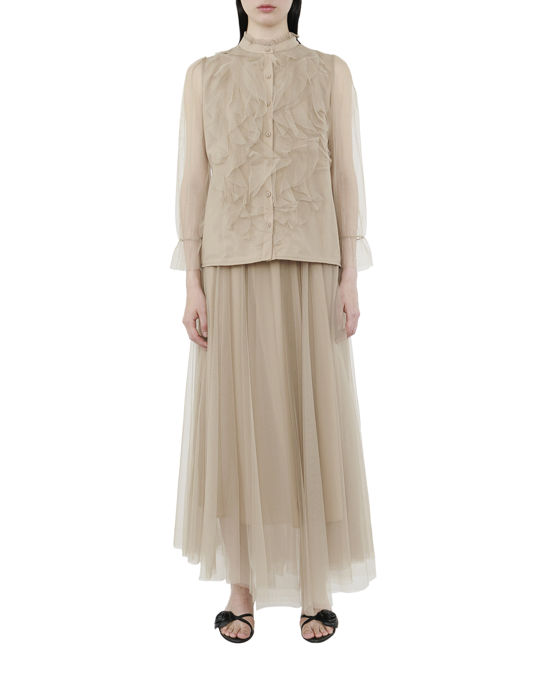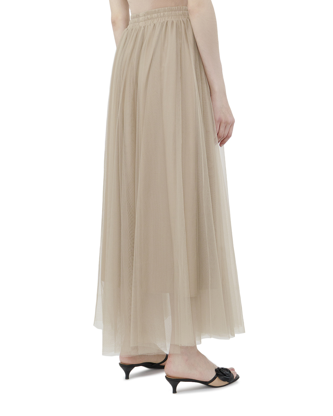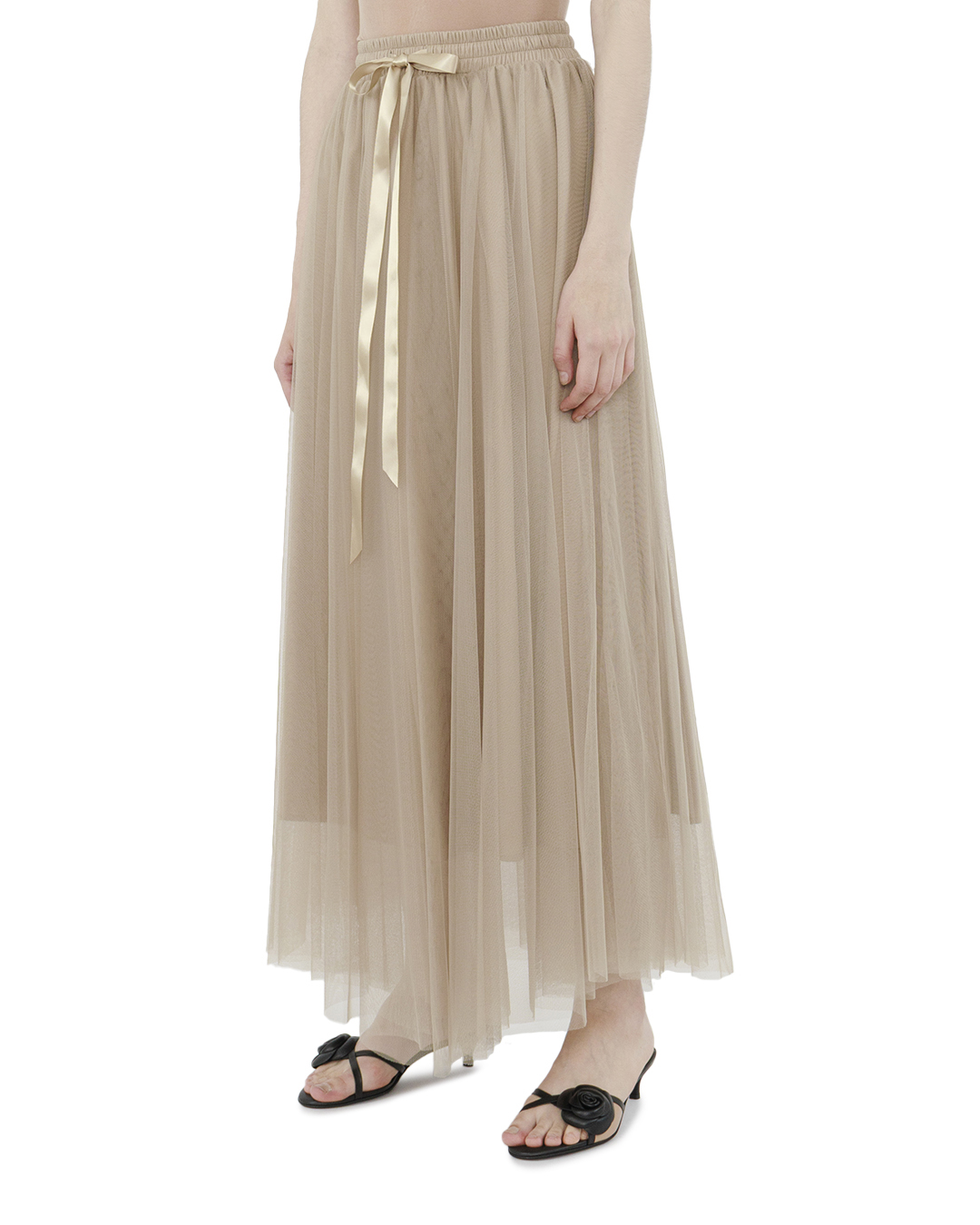 Эта изящная юбка воплощает в себе утонченный и воздушный стиль благодаря своей многослойной текстуре и легкому, полупрозрачному материалу. Бежевый оттенок придает изделию элегантность и универсальность, позволяя создавать нежные и романтичные образы. Фасон "макси" подчеркивает силуэт, плавно струясь вниз и создавая иллюзию легкости и невесомости. Основным акцентом юбки является сатиновая лента на поясе, выполненная в форме банта, которая добавляет нотку изысканности и женственности. Эластичный пояс обеспечивает комфорт и удобную посадку, адаптируясь к фигуре и подчеркивая талию. Тончайшая прозрачная ткань создает многослойный эффект, играя с объемом и светом, добавляя глубину и текстуру. Эта юбка — идеальный выбор как для вечерних прогулок, так и для торжественных мероприятий, предлагая стильное решение для любого случая и подчеркивая вашу индивидуальность.