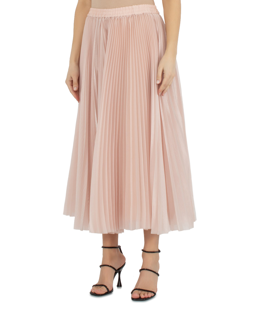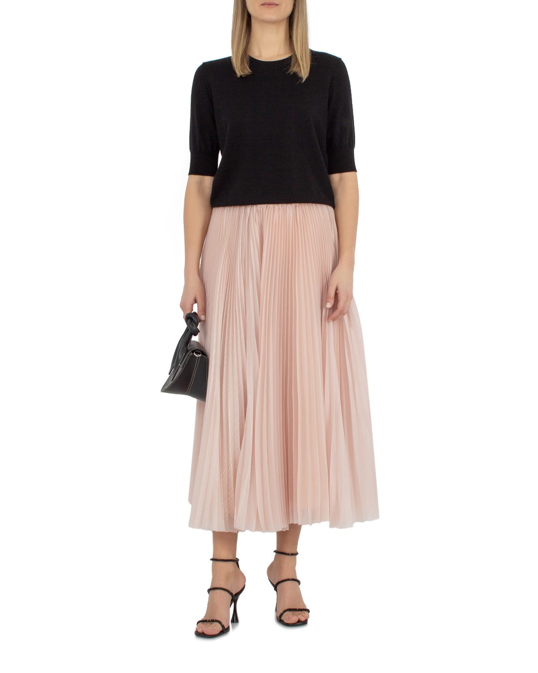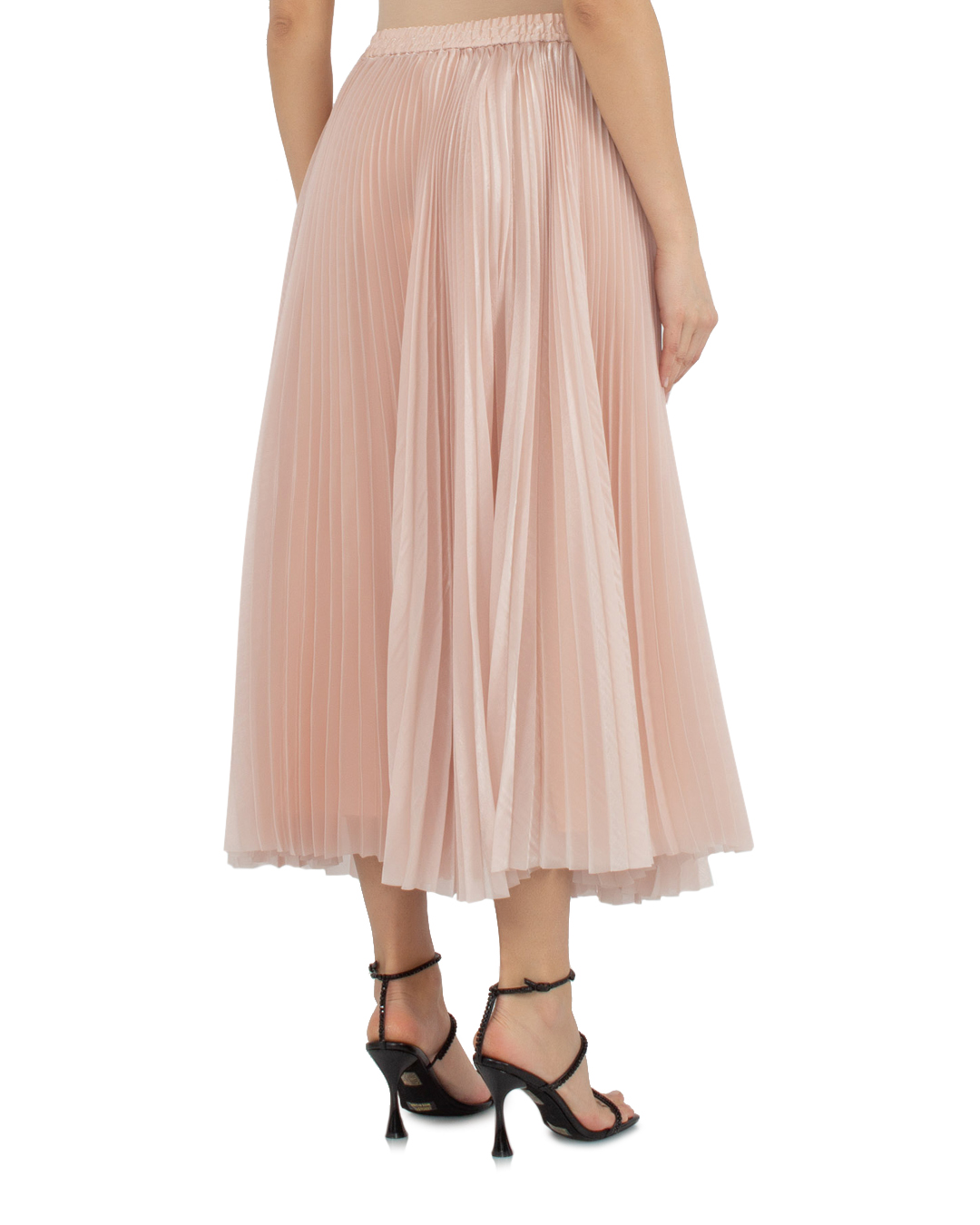 Юбка P.A.R.O.S.H. сшита из плиссированного тонкого материала. Модель длины миди с высокой посадкой на талии и эластичной линией пояса.