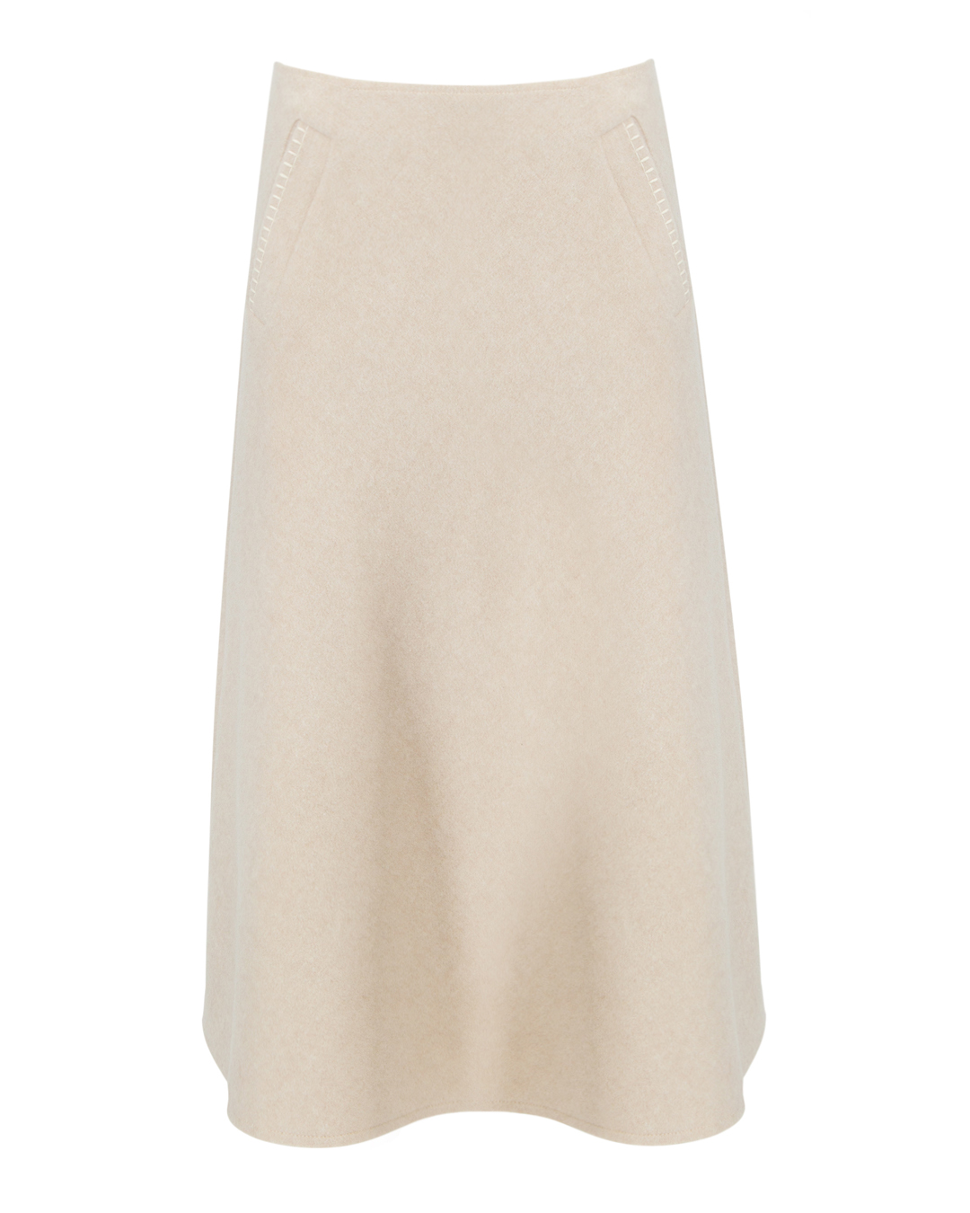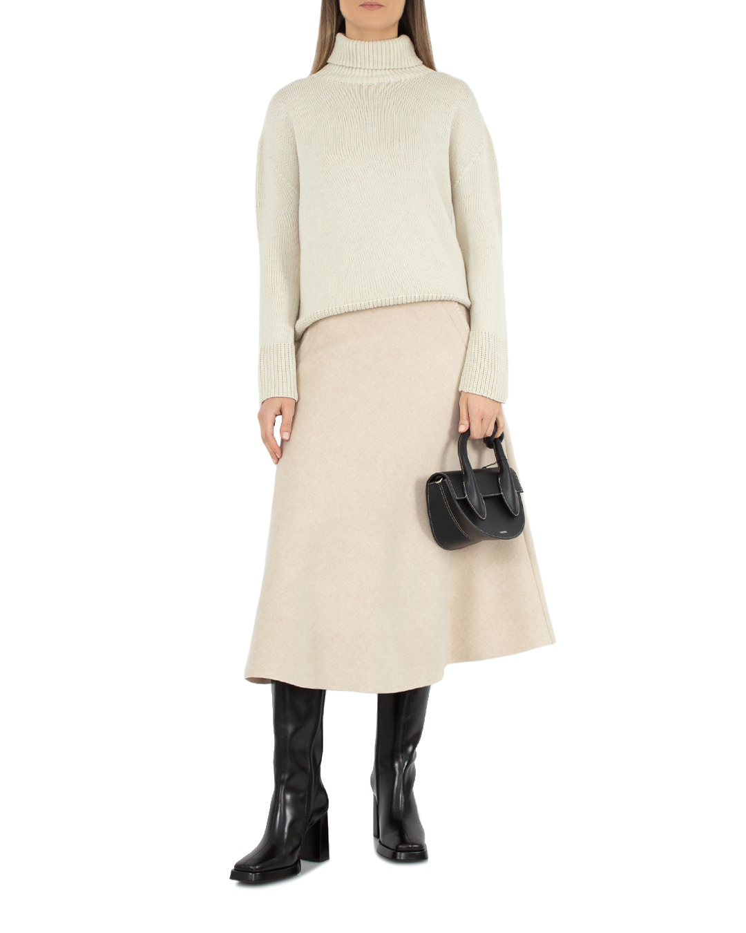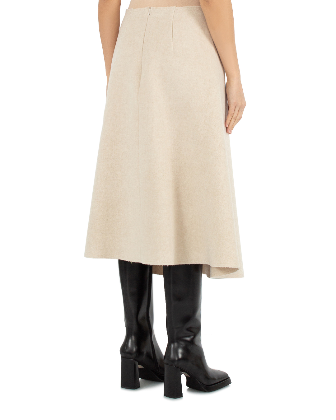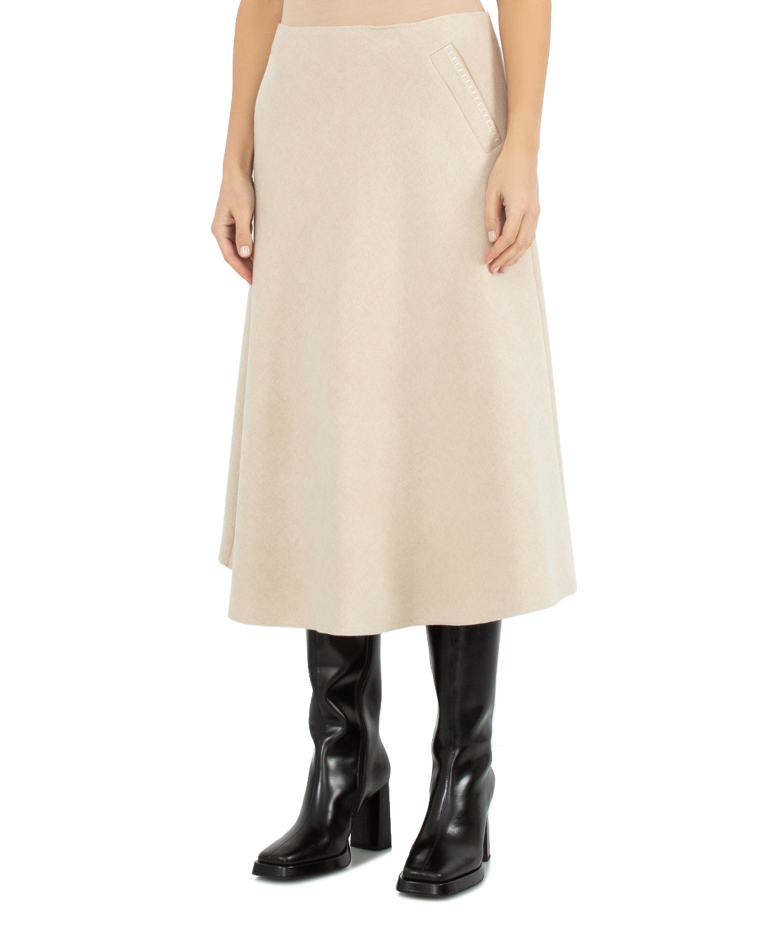 Лаконичная юбка Sfizio из мягкой шерсти бежевого оттенка. Модель длины миди с комфортной посадкой и застежкой на спине на потайную молнию.