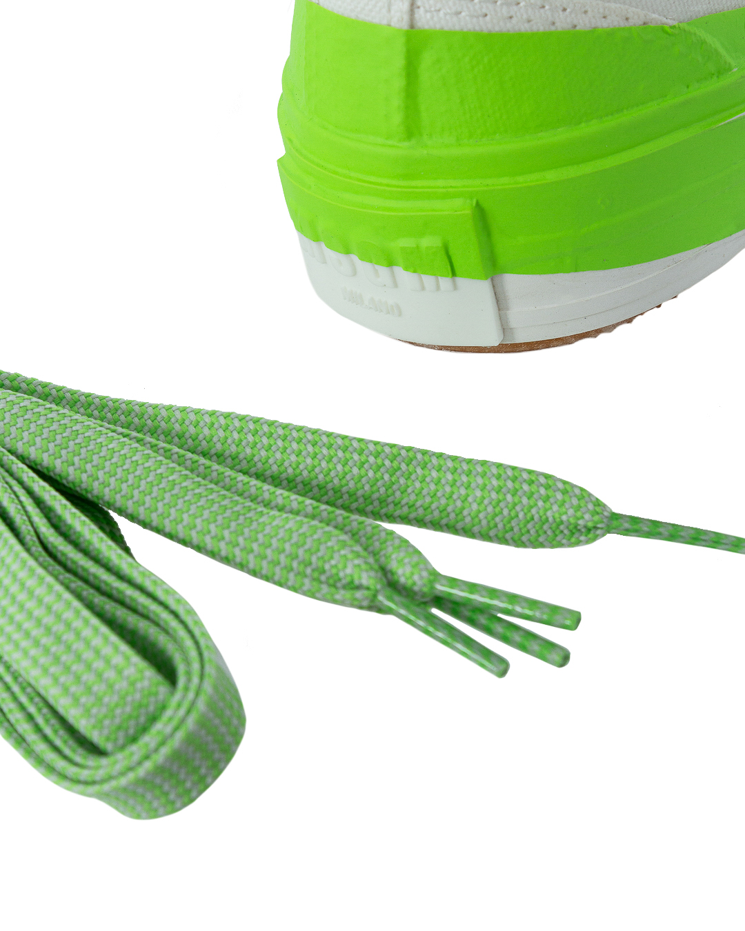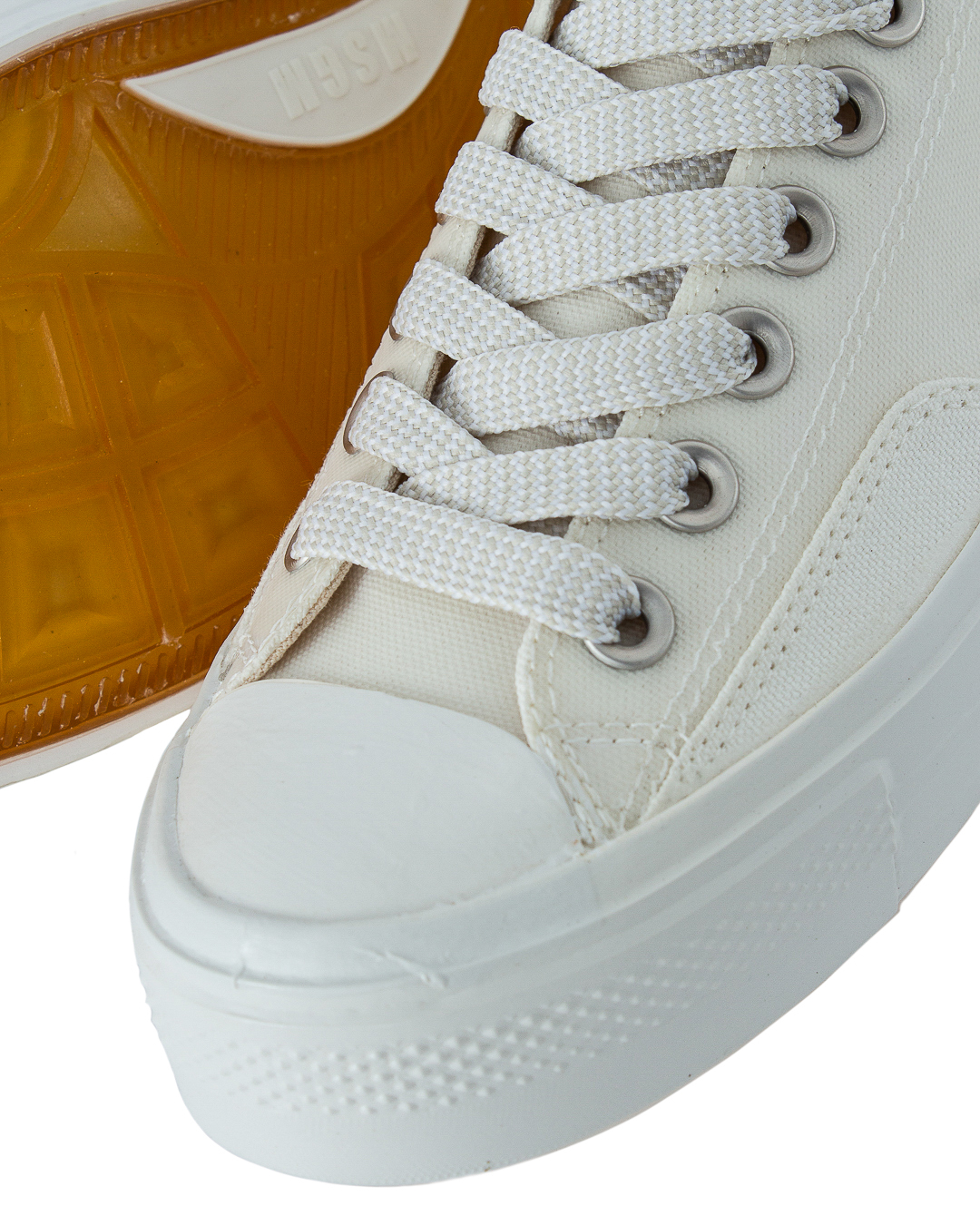 Кеды MSGM выполнены из плотного хлопкового текстиля белого цвета с яркой вставкой. Пара на шнуровке дополнена удобным брендированным язычком и толстой резиновой подошвой. В комплекте пара дополнительных шнурков.
