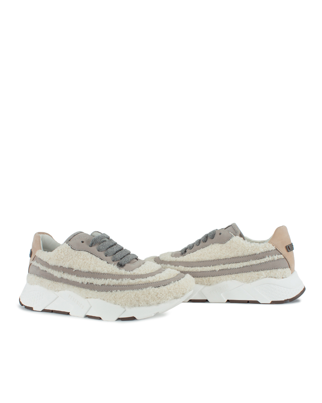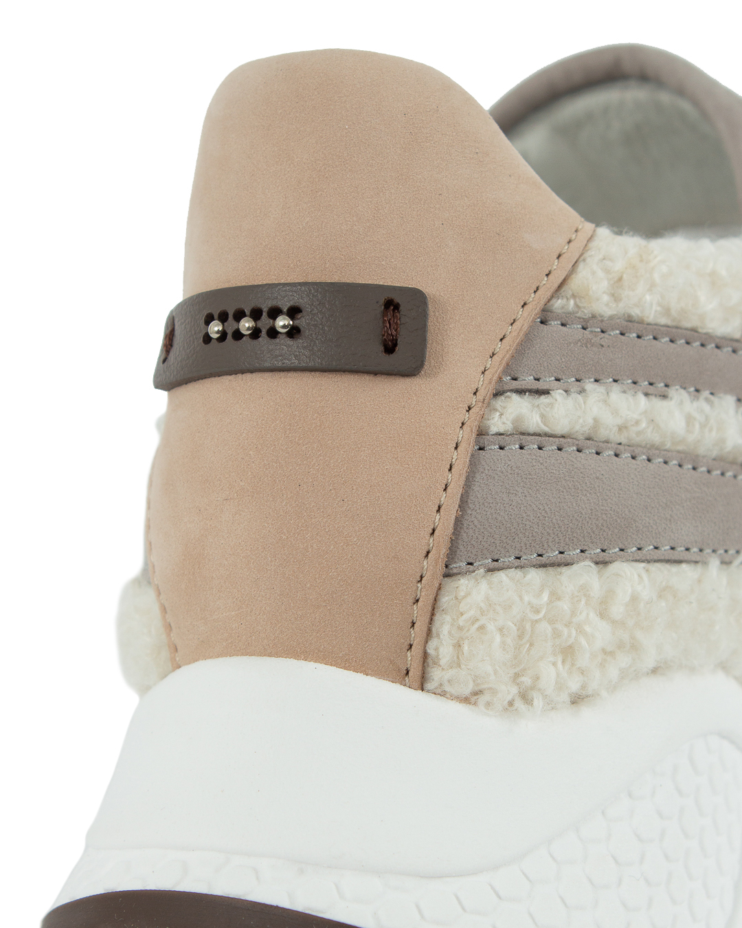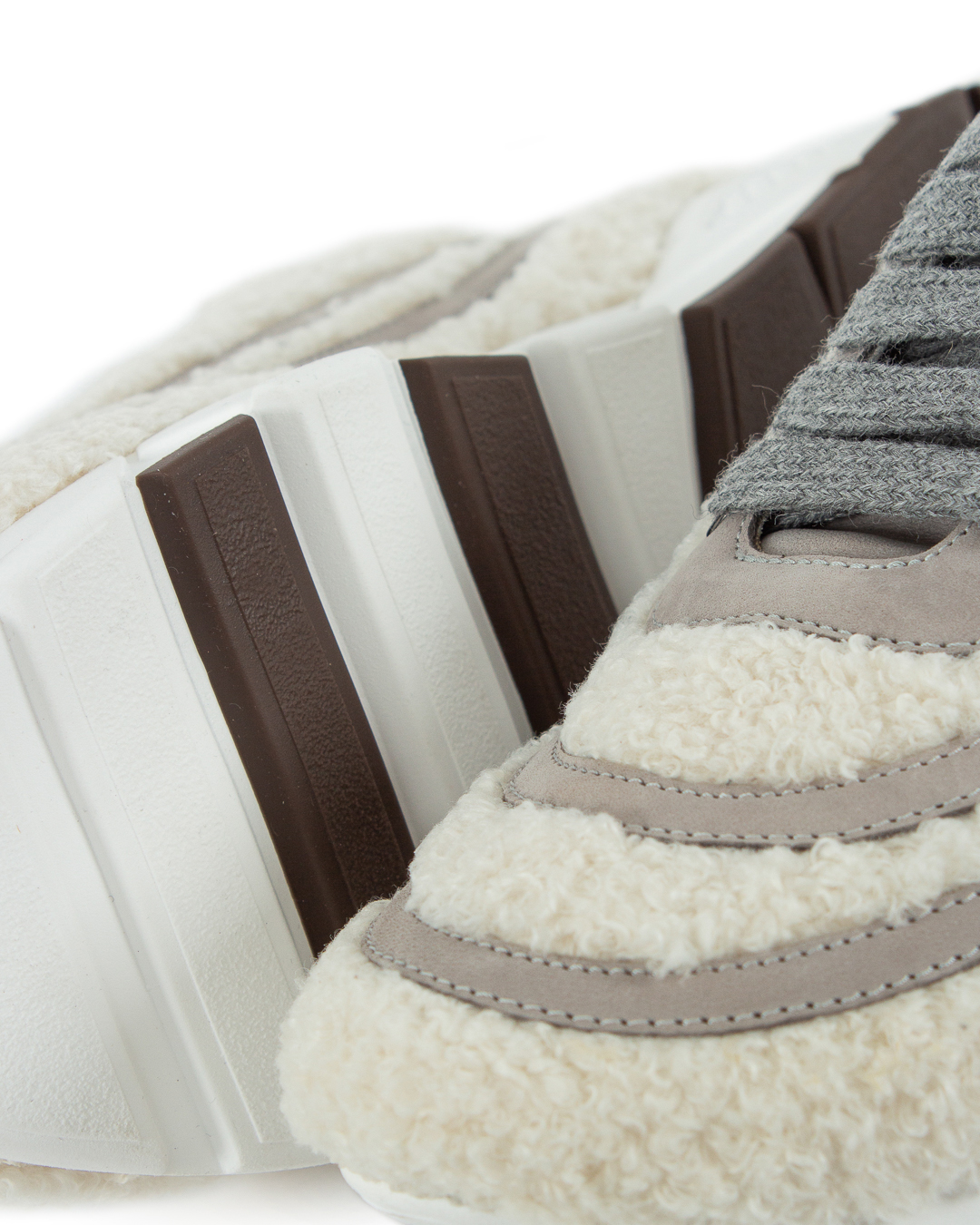 Кроссовки Peserico из матовой кожи с отделкой мехом. Пара на шнуровке дополнена толстой резиновой подошвой с объемными вставками.