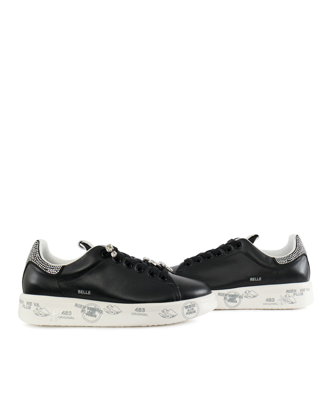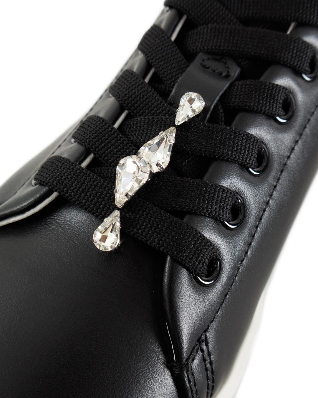 Эти кроссовки — сочетание утонченной роскоши и современной функциональности. Верх из высококачественной черной кожи придает модели элегантность и долговечность, обеспечивая комфорт и стиль в одном флаконе. Украшенные металлическими элементами и стразами на шнуровке и пятке, кроссовки обретают выразительную индивидуальность, добавляя блеск и гламур в каждое движение. Эти детали создают эффект драгоценного сияния, который захватывает взгляд. Белая подошва с контрастными графическими элементами обогащает общий дизайн, придавая современный и динамичный вид. Она обеспечивает стабильность и сцепление, делая каждую прогулку максимально комфортной. Эти кроссовки легко станут главным акцентом вашего образа, идеальны для сочетания с джинсами и платьями, добавляя нотку шика в повседневный стиль. Они подчеркивают вашу уверенность и уникальный модный почерк.