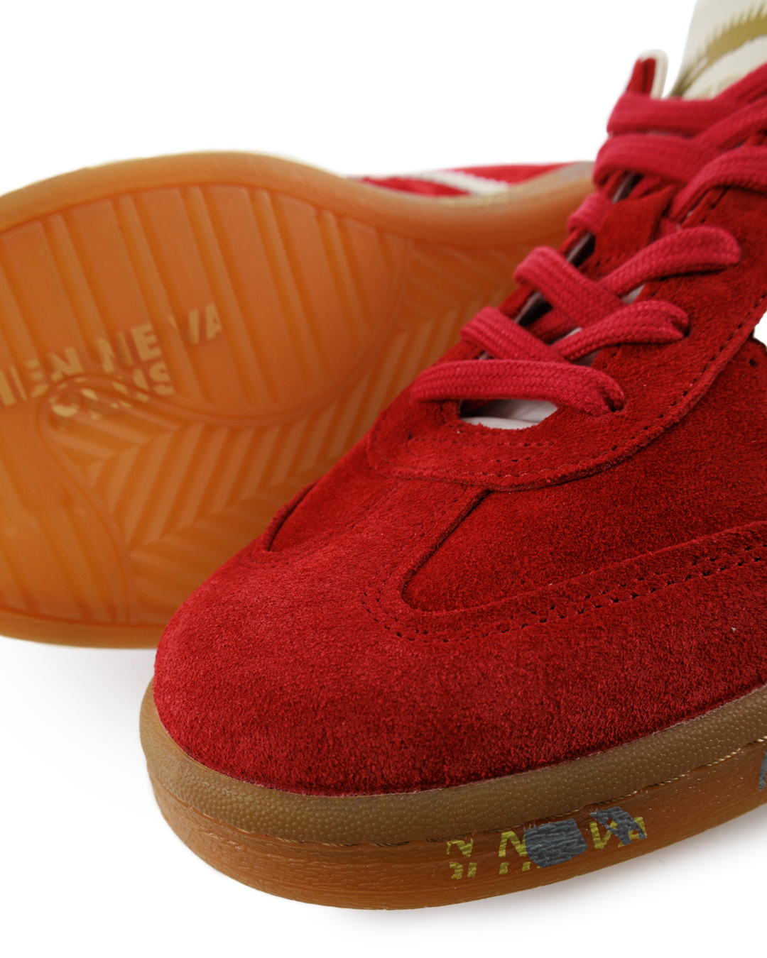 Эти кроссовки — сущность ретро-стиля, воплощенная в современном дизайне. Верх, выполненный из бархатистого красного замша, выделяется насыщенным цветом и богатой текстурой, подчеркивающей роскошь и утонченность. Контрастные белые акценты, включая фирменные полосы и логотип, добавляют выразительности и создают классическую спортивную эстетику. Язычок и пятка кроссовок из гладкой кожи обеспечивают дополнительный комфорт и поддержку. Подошва из резины в теплой карамельной гамме не только гарантирует прочность, но и привносит винтажные нотки, которые гармонично сочетаются с общим дизайном. Стильные графические элементы на подошве добавляют индивидуальности и оригинальности. Эти кроссовки идеально дополнят как повседневные, так и более обдуманные образы, становясь ярким акцентом любого наряда и подчеркивая вашу уверенность в стиле и безупречный вкус.
