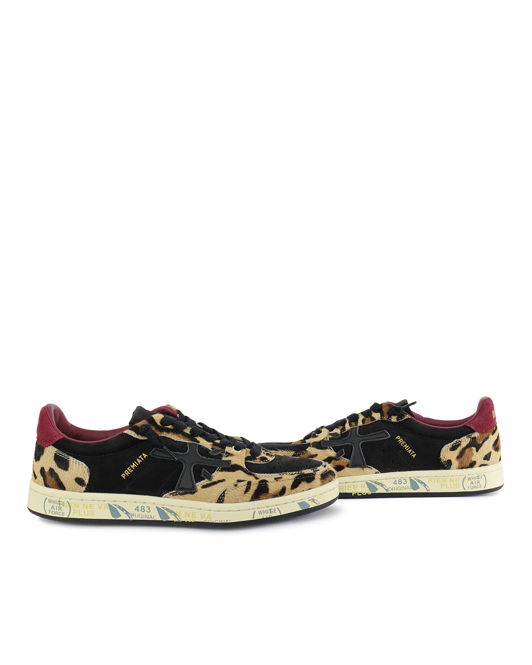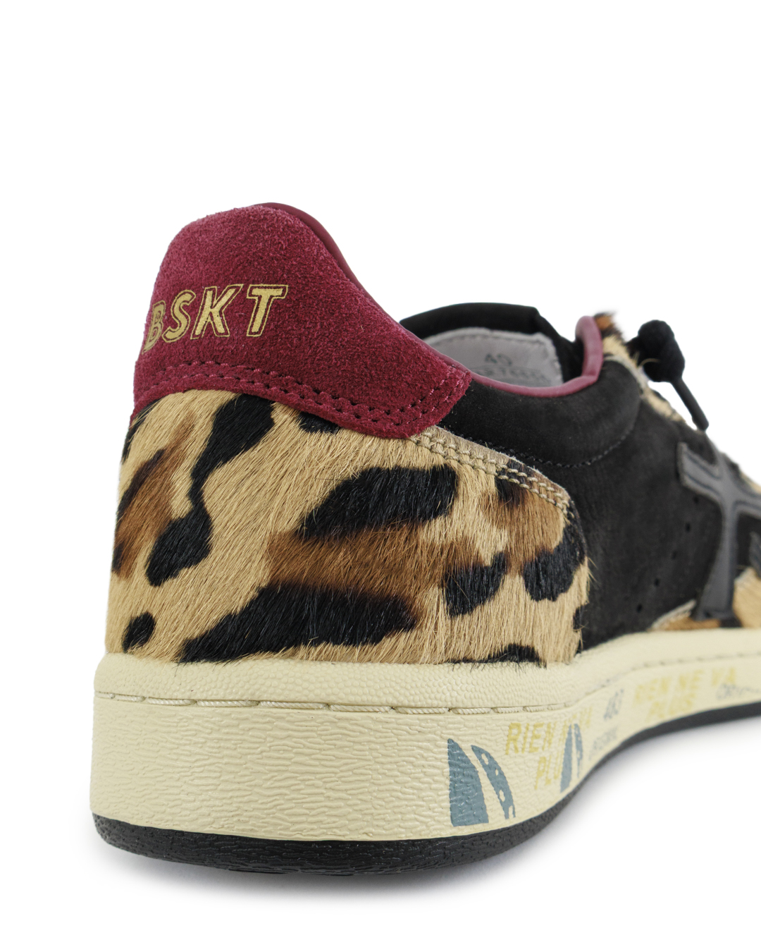 Эти кроссовки представляют собой смелое воплощение анималистичного стиля, сочетающего изысканность и дерзость. Верх выполнен из высококачественных материалов с леопардовым принтом, который моментально притягивает взгляды и придаёт модели экзотический шарм. Богатые черные замшевые вставки создают глубину и текстурный контраст, а насыщенно-бардовый задник добавляет нотку роскоши. Логотип бренда ненавязчиво интегрирован в дизайн, сохраняя фокус на эффектном принте. Подошва с характерными графическими элементами представляет собой баланс между стилем и функциональностью, обеспечивая отличную амортизацию. Эти кроссовки идеально подходят для тех, кто ищет уникальность и современное звучание в повседневных образах.