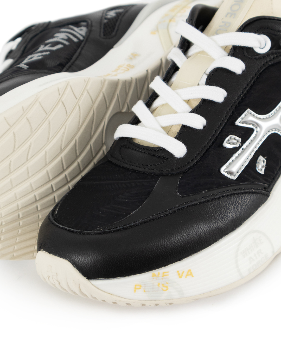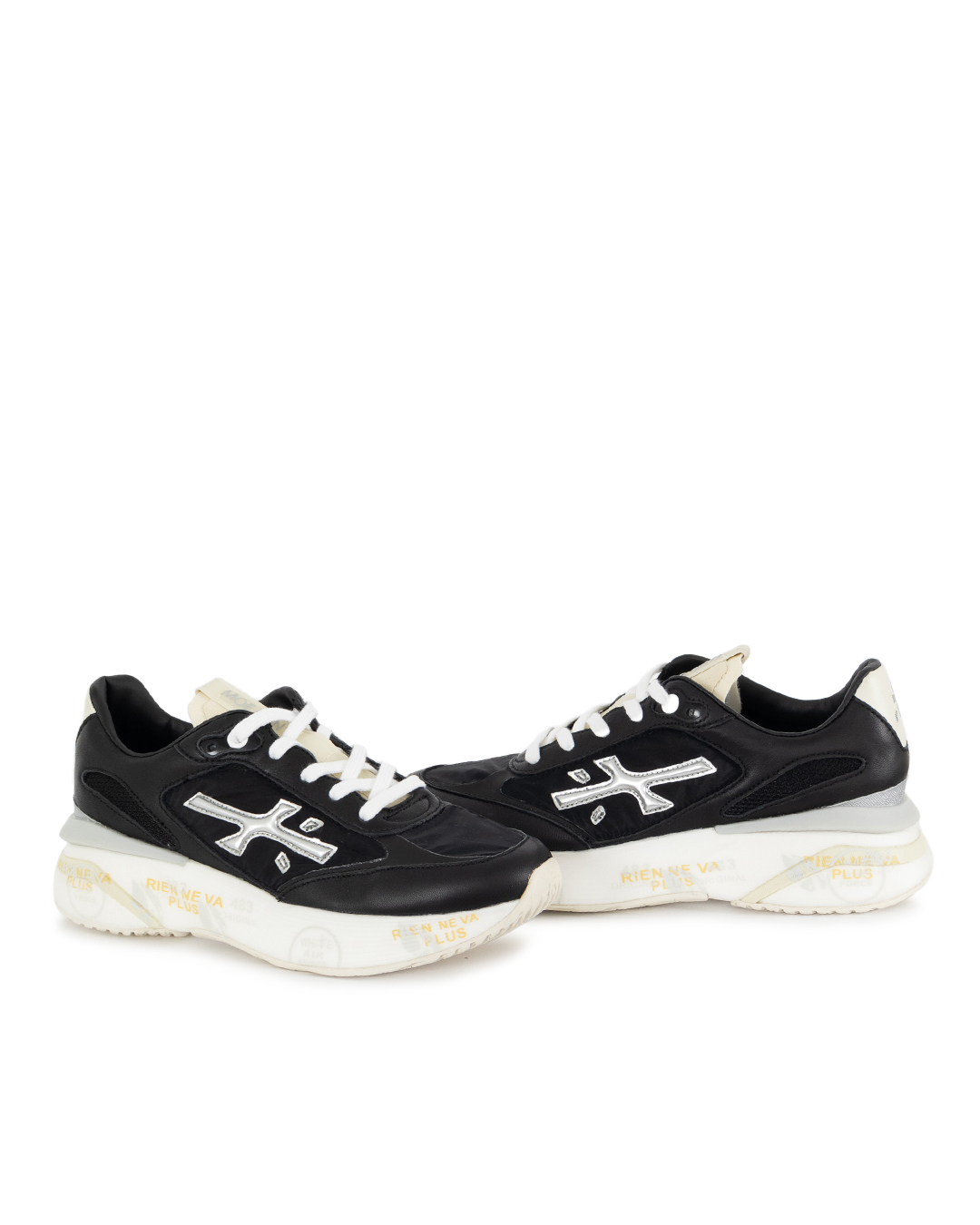 Кроссовки Premiata sport из комбинированных материалов с кожаными вставками. Пара на удобной резиновой подошве с фирменным узнаваемым принтом.