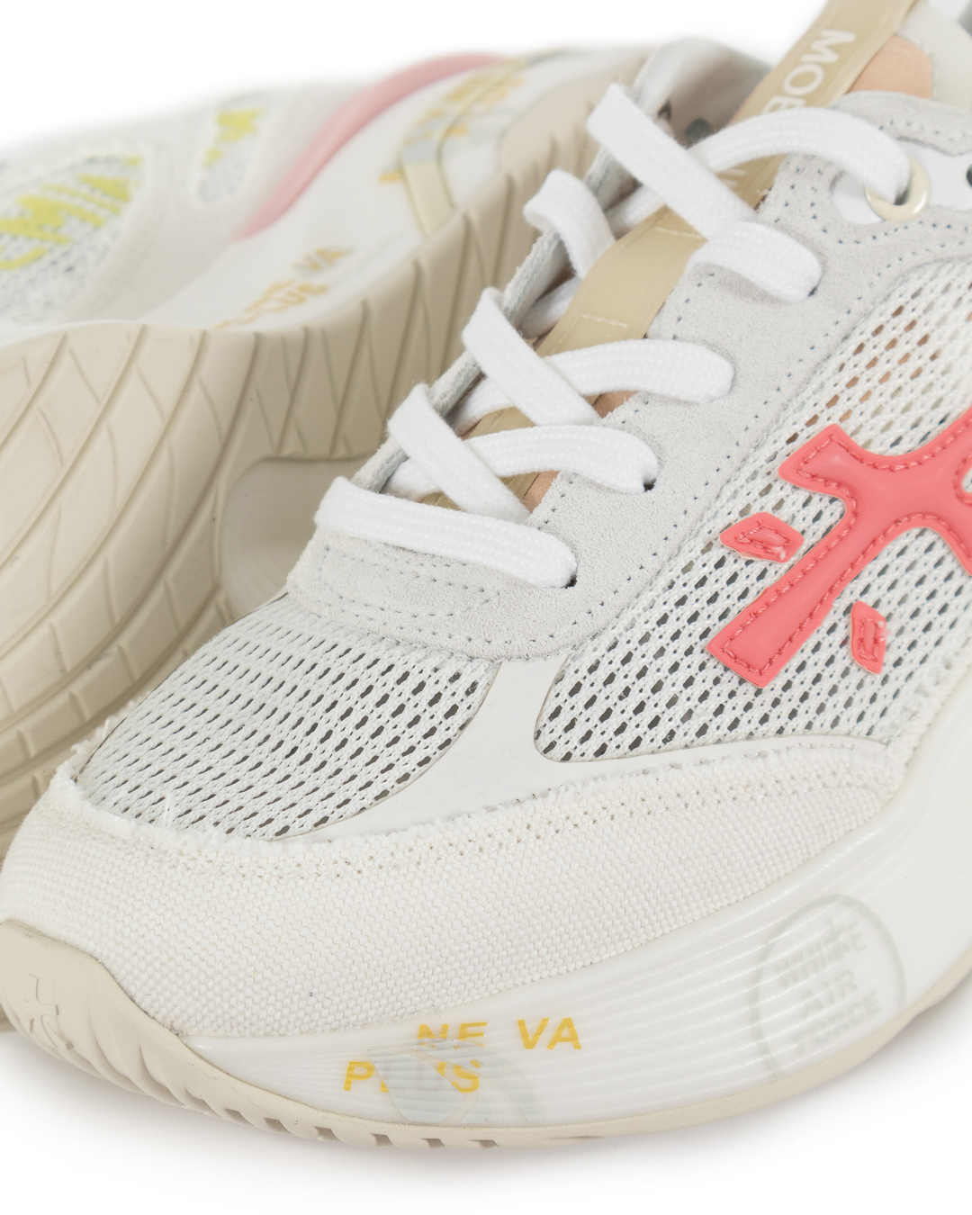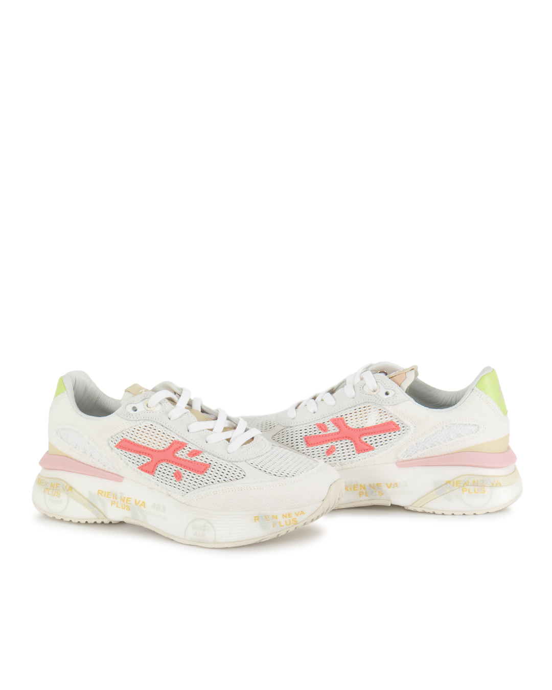 Кроссовки Premiata sport выполнены из комбинированных материалов с сетчатыми вставками. Пара на шнуровке с удобным брендированным язычком. Обувь выполнена на комфортной гибкой подошве из резины с фирменным узнаваемым принтом.