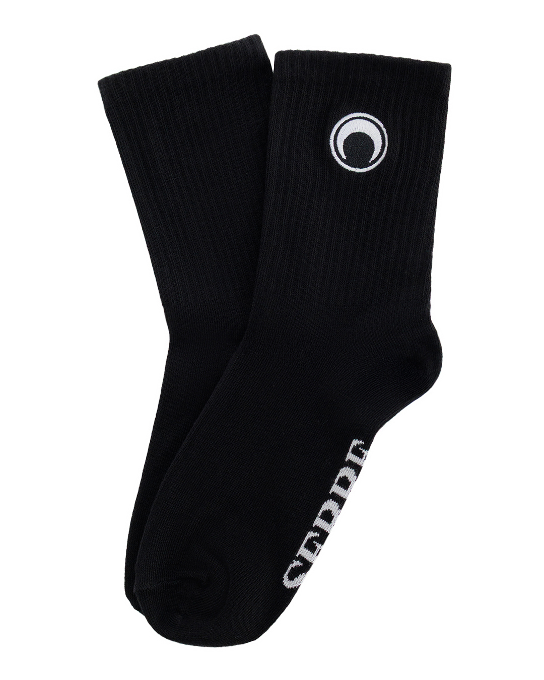 Эти носки представляют собой современное сочетание комфорта и стиля. Изготовленные из высококачественного хлопка с добавлением эластичных волокон, они идеально прилегают к ноге, обеспечивая удобство и долговечность. Глубокий черный цвет придаёт носкам универсальность, делая их подходящими как для повседневных, так и для более формальных образов. Ребристая структура добавляет текстурный акцент, повышая износостойкость и обеспечивая плотную фиксацию на ноге. Выразительный логотип, аккуратно вышитый сбоку, и лаконичный дизайн делают эти носки стильным акцентом в любом гардеробе. Усиленные пятка и носок обеспечивают дополнительную комфортную посадку и долговечность, что подчеркивает внимание к деталям и качество исполнения.