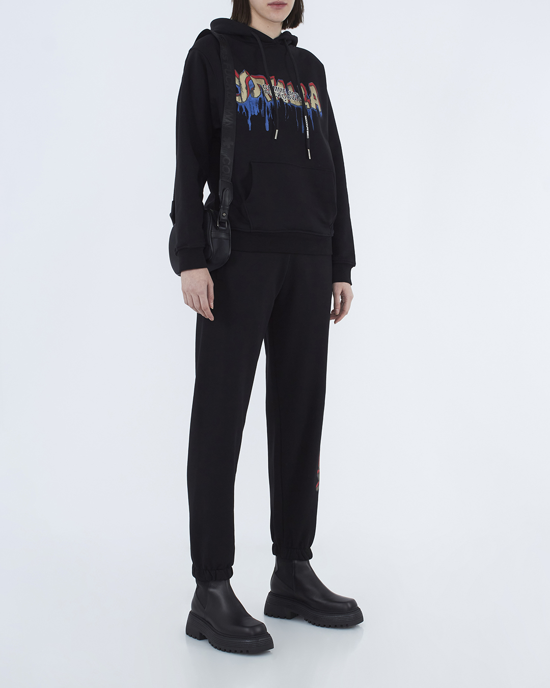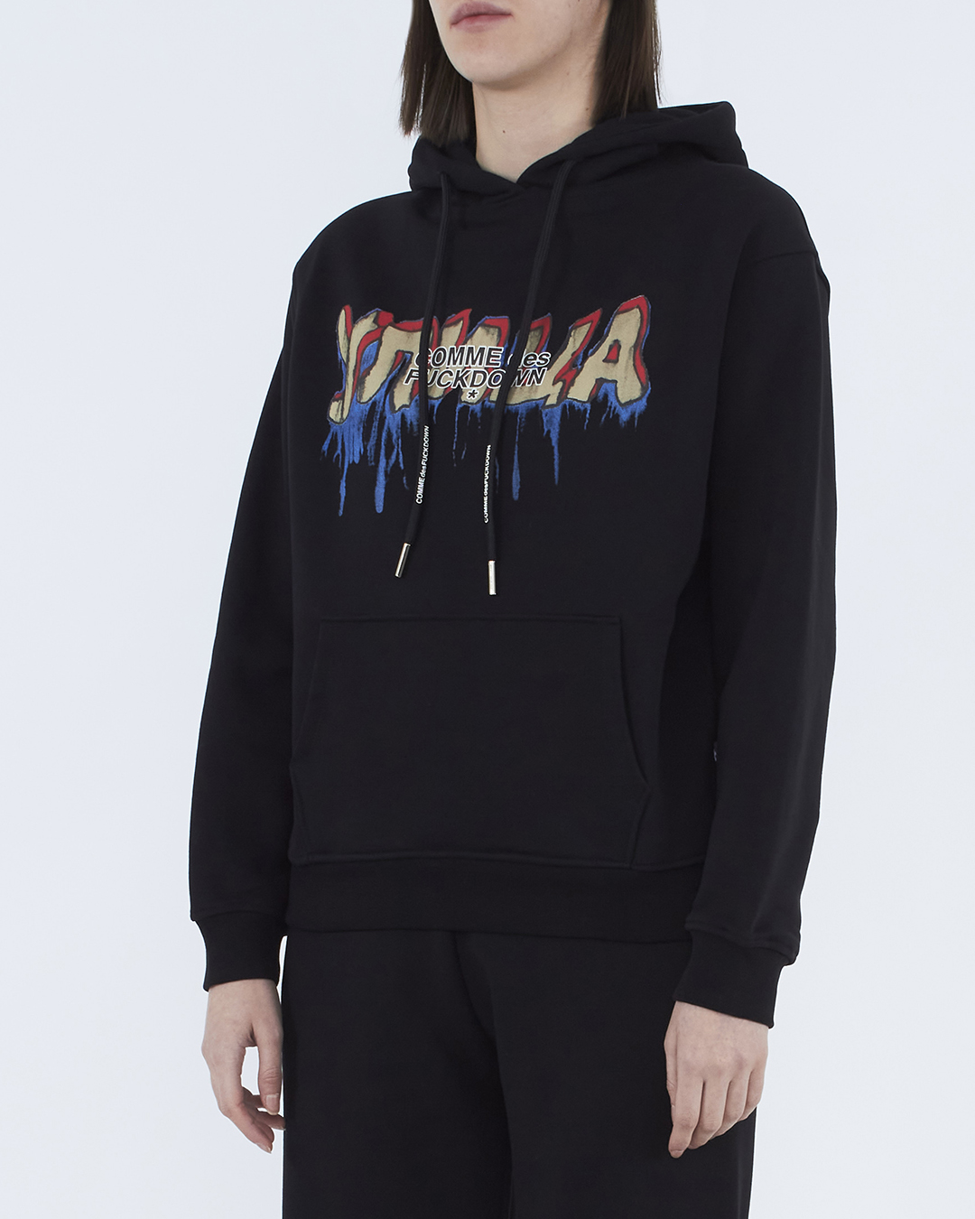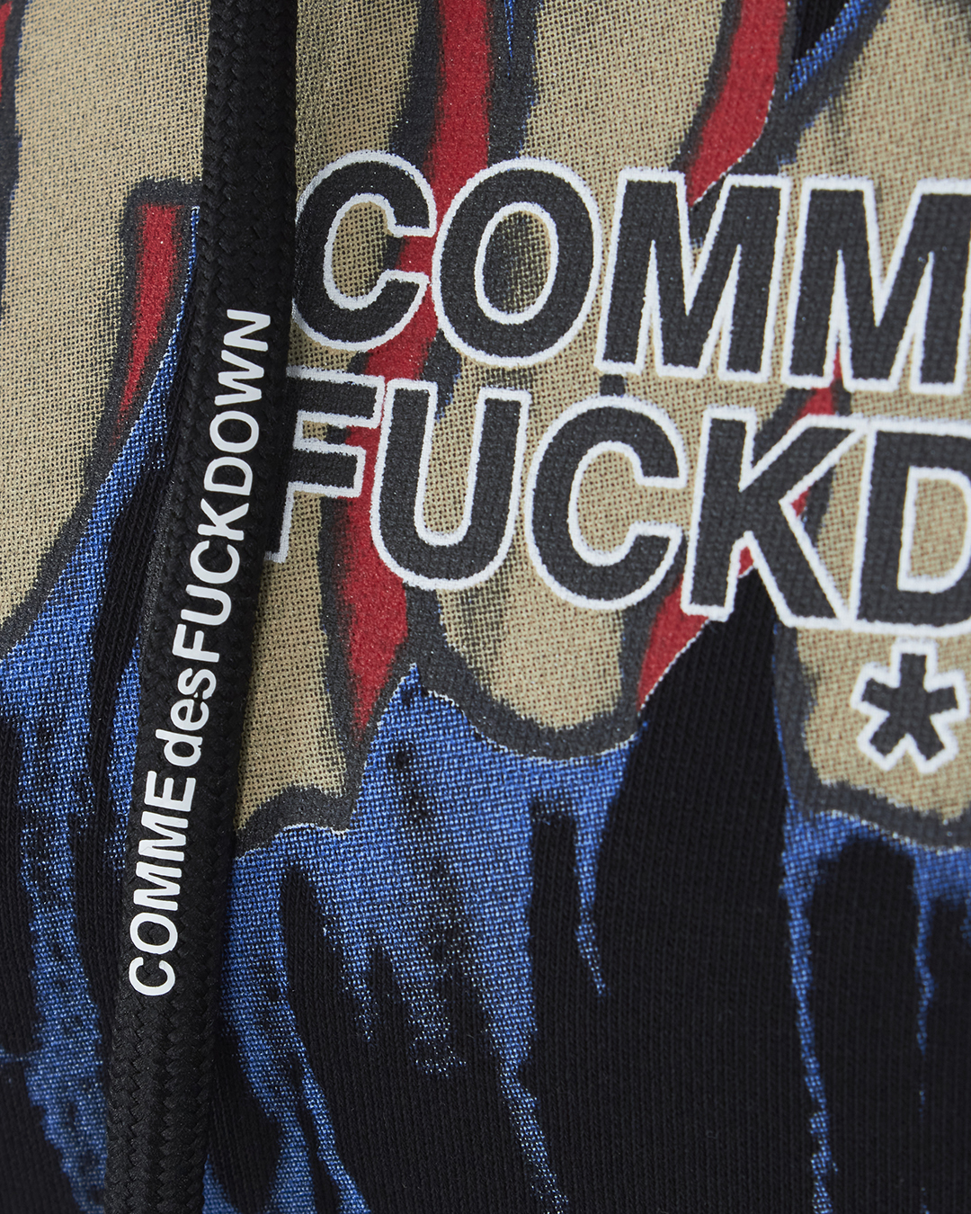 Худи COMME des FUCKDOWN выполнен из трикотажного хлопка с принтом и логотипом бренда. Прямой непринужденный крой дополнен длинными рукавами и спущенной линией плеч. Худи с уплотненной отделкой манжет и линии низа дополнен капюшоном с завязками и карманом-кенгуру.