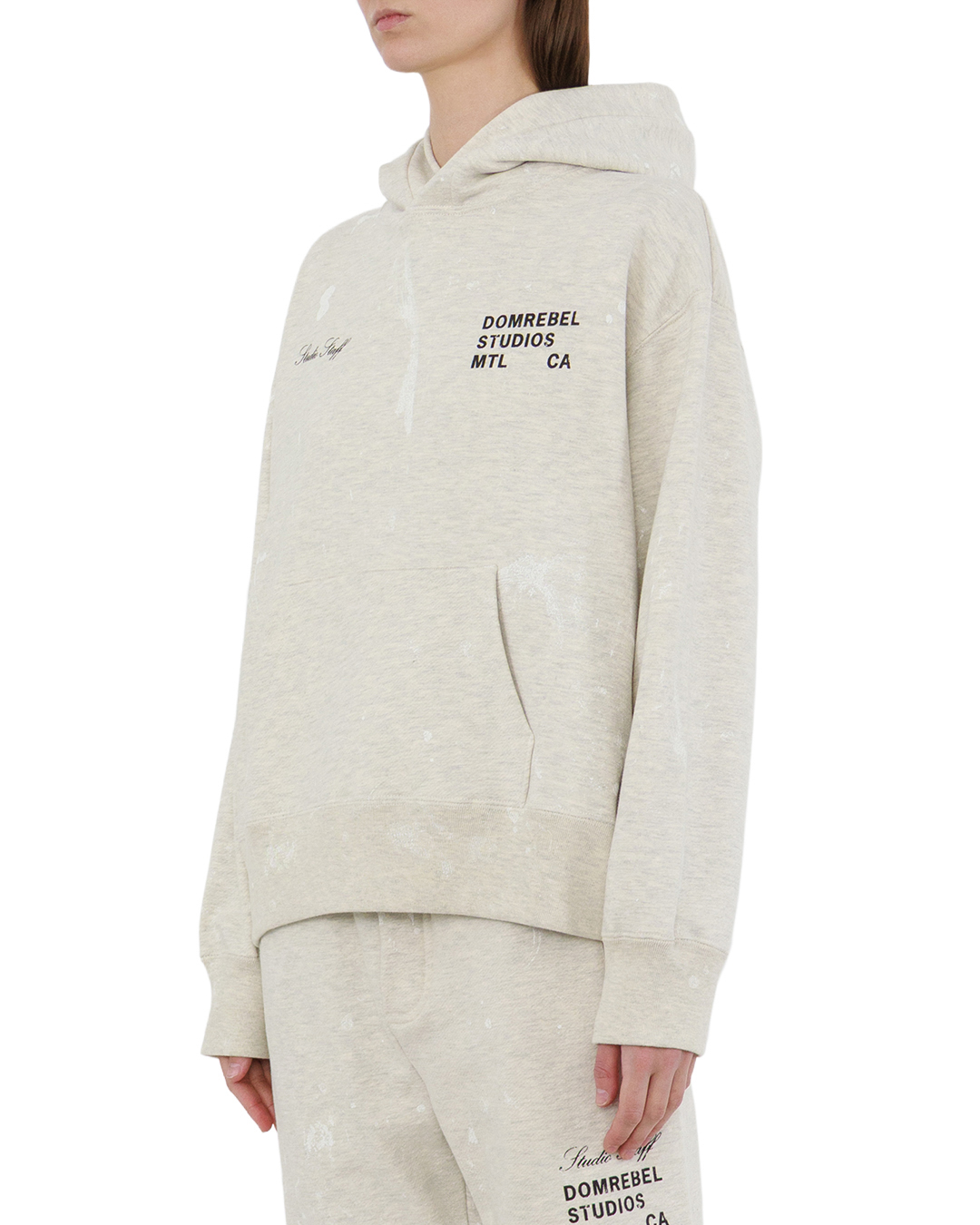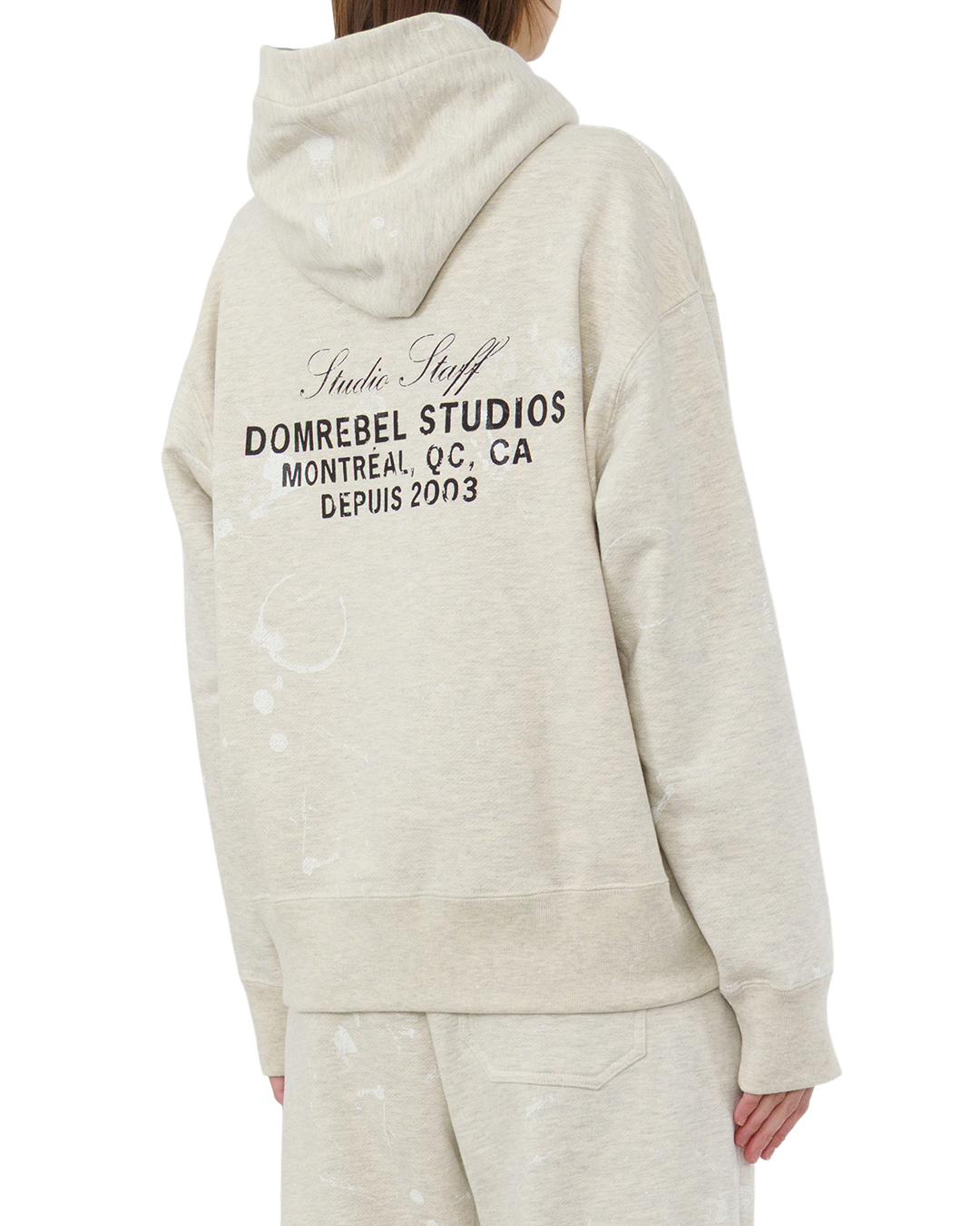 Это худи — воплощение сдержанной элегантности. Светлый, слегка меланжевый оттенок создаёт ощущение лёгкости и непринуждённости, а свободный крой подчёркивает комфорт без потери стиля. Глубокий капюшон с мягкими складками добавляет образу расслабленности, а вместительный карман-кенгуру органично вписывается в композицию. Манжеты и пояс выполнены в рубчик, что придаёт изделию фактурность и аккуратность. Лёгкие разводы на полотне создают эффект винтажной изношенности, делая модель уникальной. Минималистичные надписи усиливают характер вещи, не перегружая дизайн.