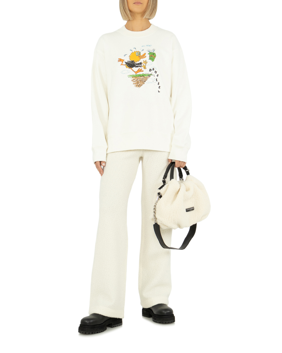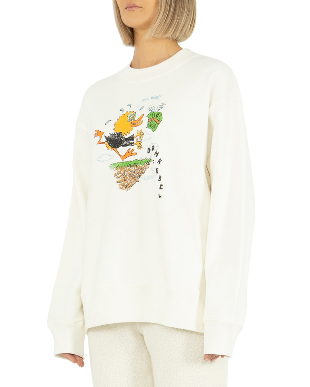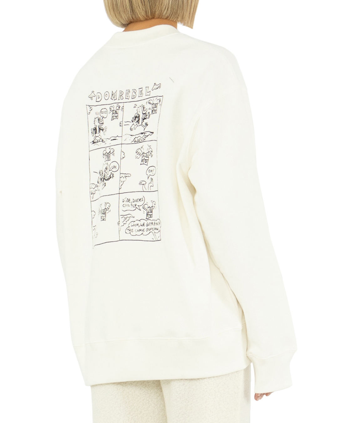 Этот свитшот Dom Rebel — квинтэссенция современного стиля с вкраплением игривой эстетики. Он выполнен из высококачественного хлопка, что обеспечивает комфорт и мягкость при носке. Фоновый цвет — теплый белый, являющийся отличным холстом для яркого и выразительного принта. На лицевой стороне свитшота размещена иллюстрация в подчеркнуто мультяшном стиле, где насыщенные цвета создают динамичную и запоминающуюся картинку, а так же комикс на спине. Забавный персонаж придаёт изделию нотку шикарной неформальности, которая идеально подходит для создания непринужденных аутфитов. Особое внимание уделено деталям и отделке: эластичные манжеты и пояс обеспечивают идеальную посадку, сохраняют форму и комфорт. Круглый вырез горловины подчёркивает универсальность и делает свитшот подходящим для сочетания с другими элементами гардероба. Это идеальный выбор для тех, кто ценит не только практичность, но и уникальный дизайн.