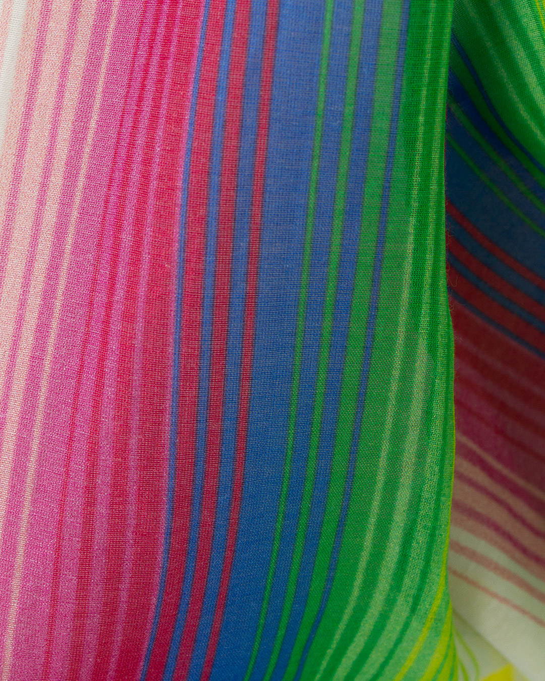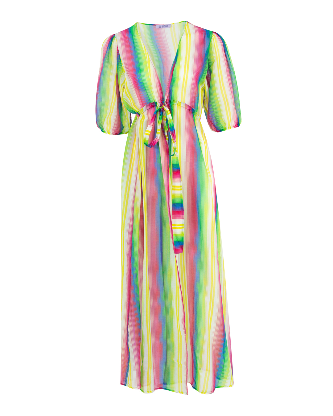 Пляжная туника MC2 Saint Barth из хлопка и шелка с принтом. Модель приталенного силуэта длины макси с поясом.