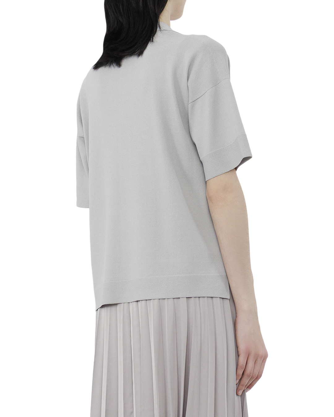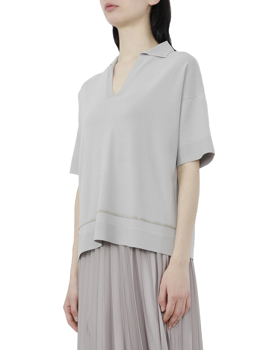 Стильное вязаное поло выполнено из мягкой и легкой вискозы, что обеспечивает комфорт и приятные ощущения при носке. Насыщенный серый цвет делает его универсальным элементом гардероба, подходящим для различных стилей и случаев. Поло имеет отложной воротник, который добавляет элегантности и завершенности образу. Контрастная полоска по линии подола из металических нитей придает изделию интересный акцент и делает его более выразительным. Короткие рукава обеспечивают свободу движений и идеальны для теплой погоды. Расклешенный силуэт создает эффектный вид, подчеркивая фигуру и добавляя женственности. Это поло отлично подойдет как для повседневного ношения, так и для более формальных мероприятий. Сочетайте его с юбками, брюками или шортами для создания стильных образов на любой случай!