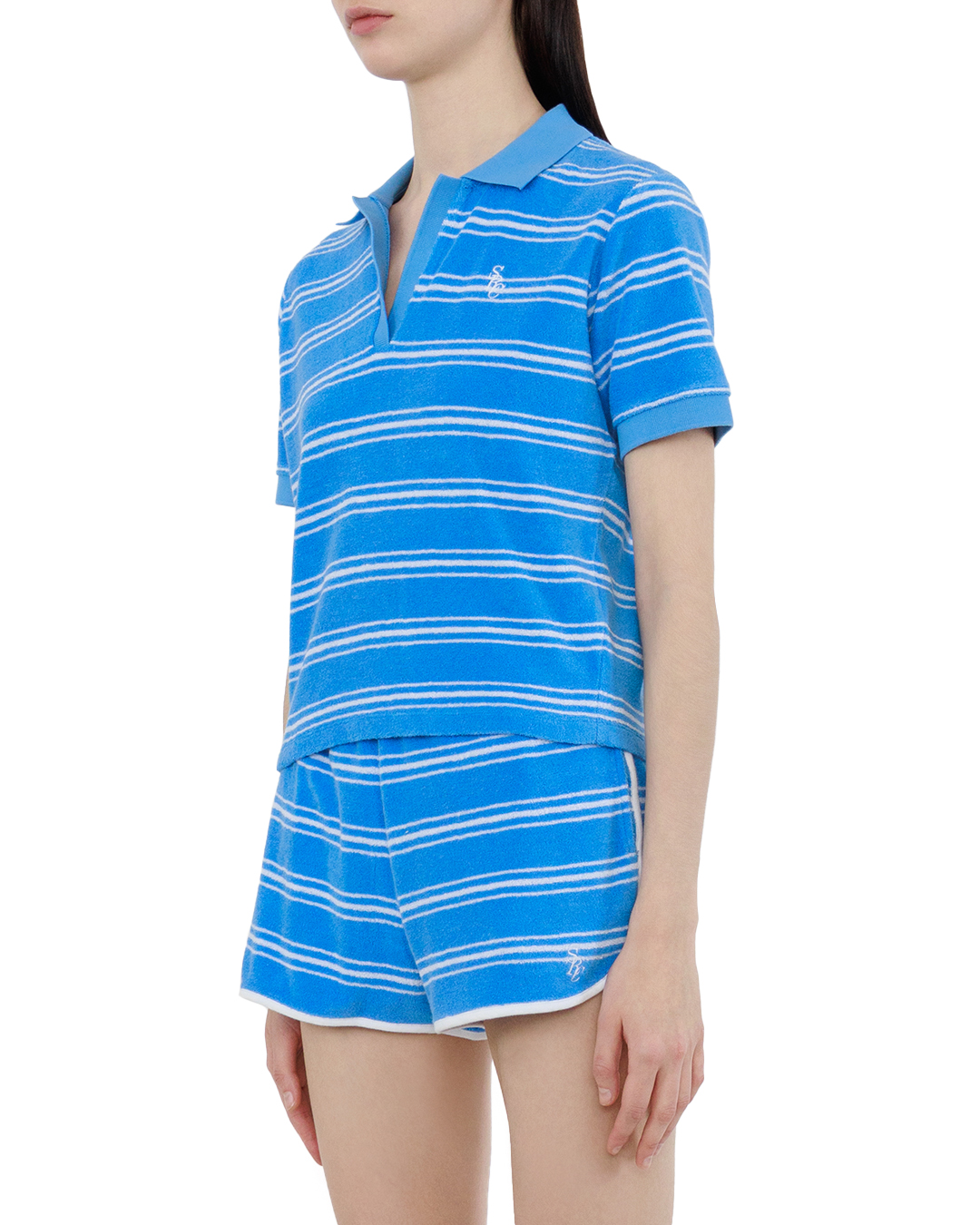 Эта модель поло привлекает внимание своим выразительным цветовым решением и уникальной текстурой. Изготовленная из легкого и дышащего материала, она обеспечивает комфорт в теплую погоду и прекрасно держит форму. Небольшой воротник с элегантной отделкой создает аккуратный силуэт, а структура с контрастными полосами придает образу динамичность и свежесть. Краткие рукава обеспечивают свободу движений, что делает эту модель идеальной для активного отдыха или неформальных встреч. Логотип, изысканно вышитый на груди, добавляет элемент брендинга и стильный акцент. Обработка краев рукавов и подола выполнена с учетом тонких деталей, оставляя приятное впечатление. Этот яркий голубой оттенок легко комбинируется с различными элементами гардероба, от шорт до джинс, что делает поло универсальным выбором для летнего сезона.