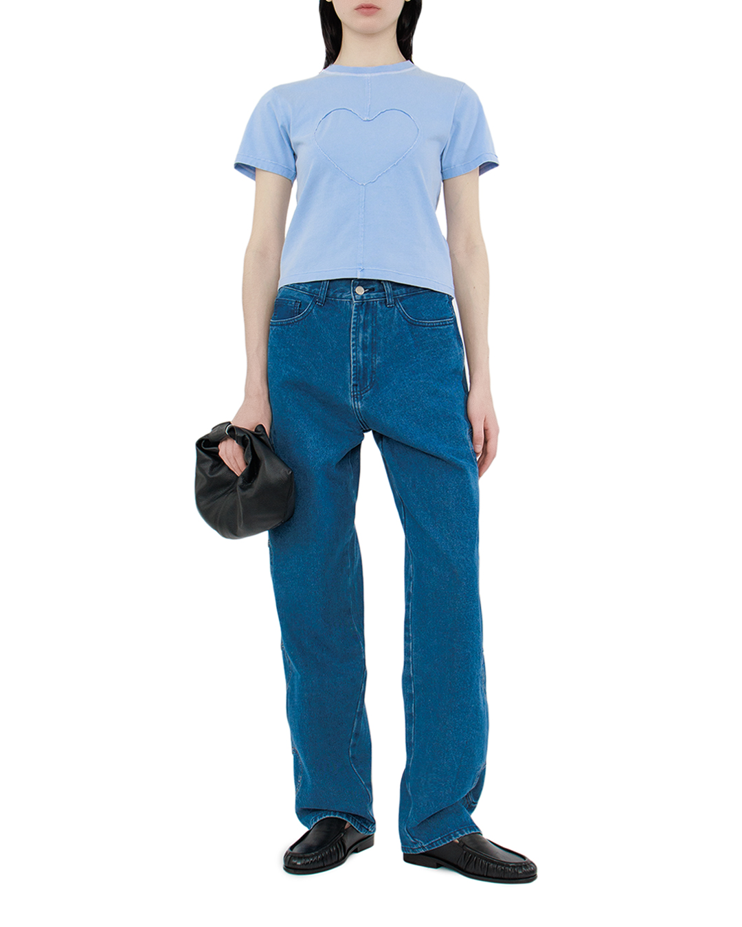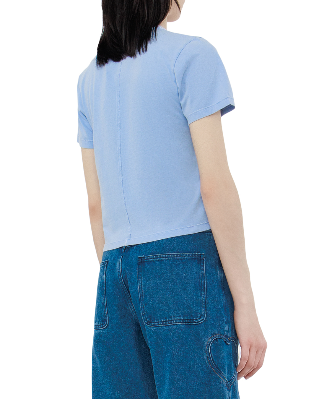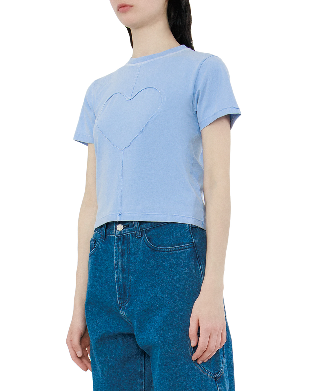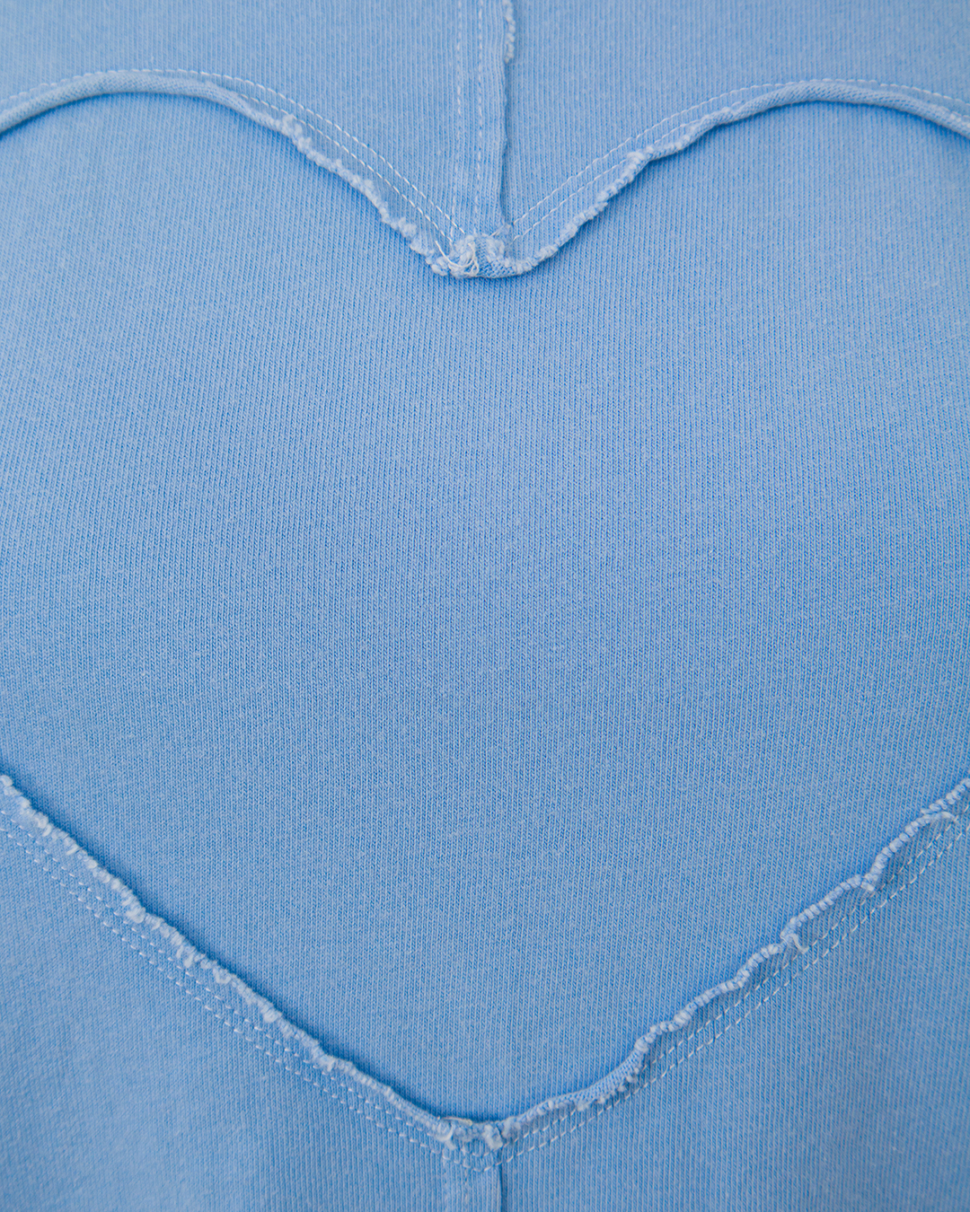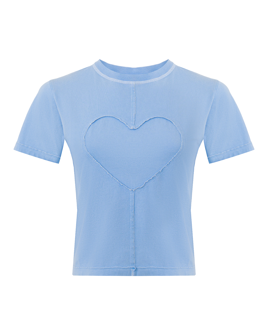 Футболка Carne Bollente Stitch of Love нежно-голубого цвета изготовлена из 100% хлопка по приталенному силуэту с потертыми швами в форме сердца.