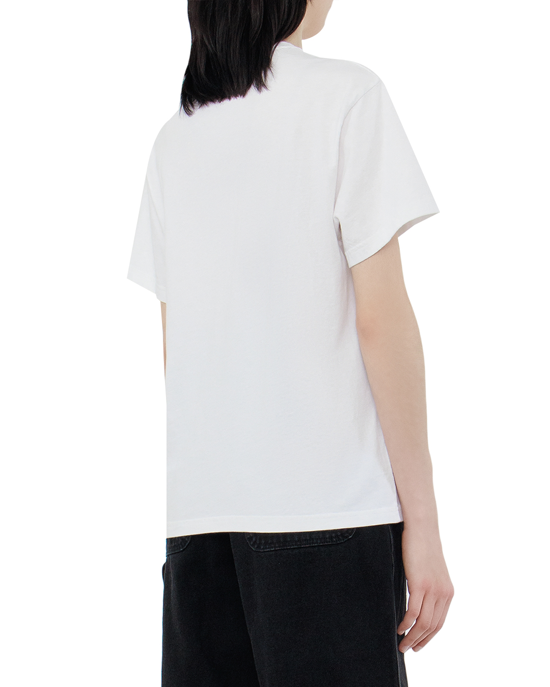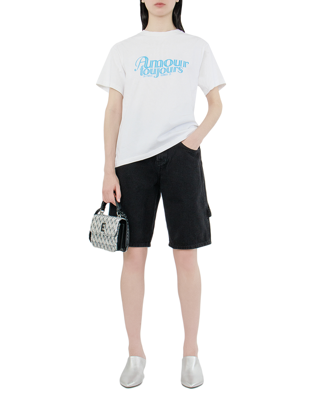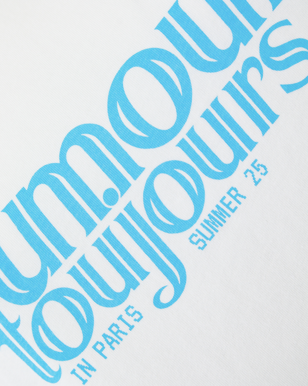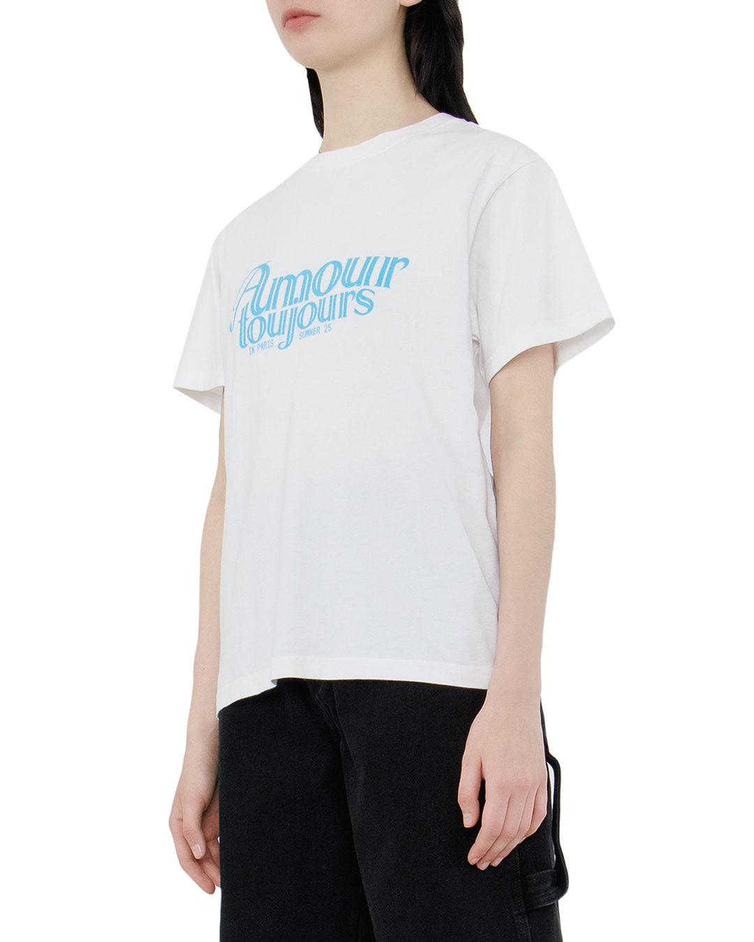 Футболка белого базового цвета с короткими рукавами и круглым вырезом. Модель из 100% хлопка украшает принт с надписью «Amour Toujours».