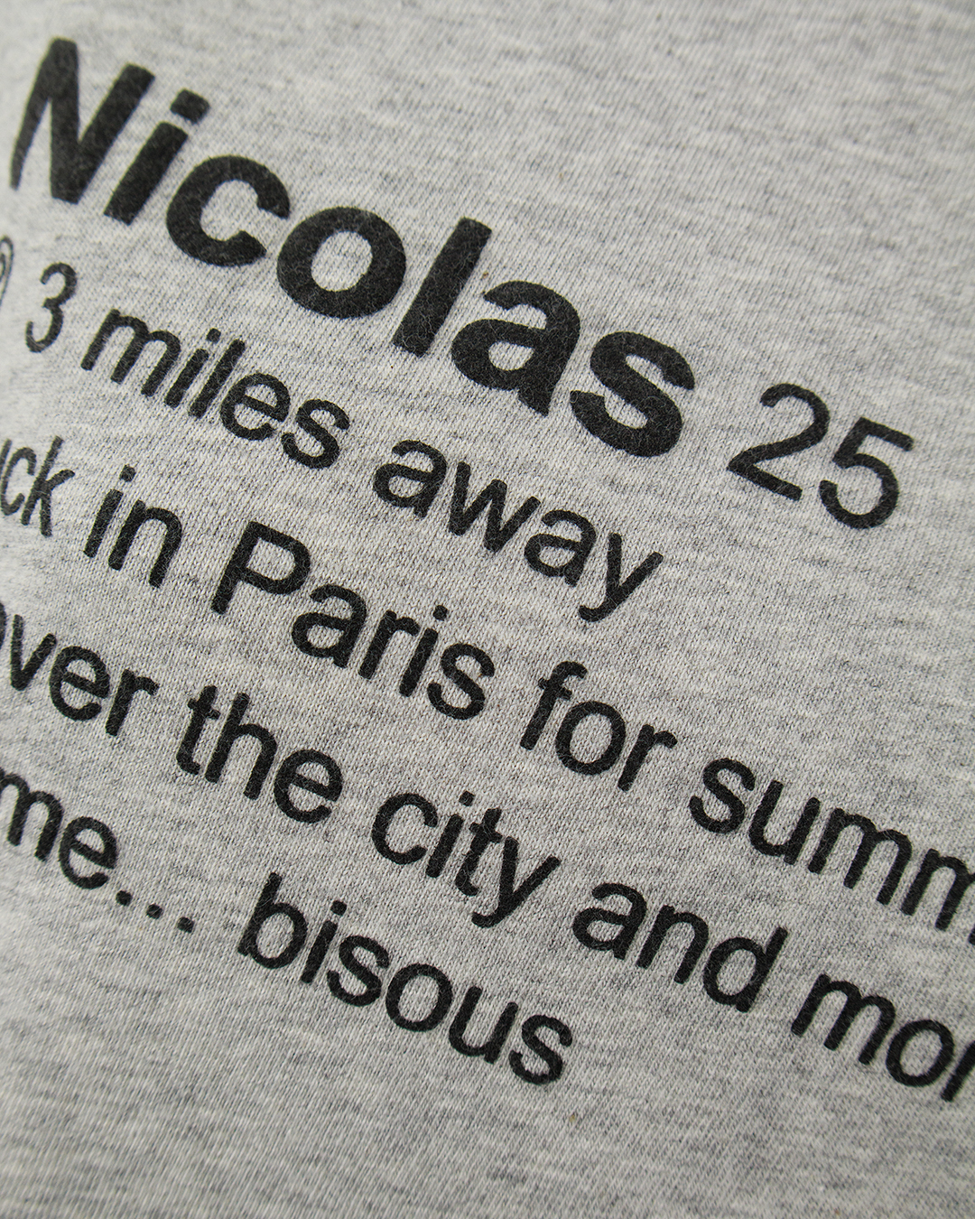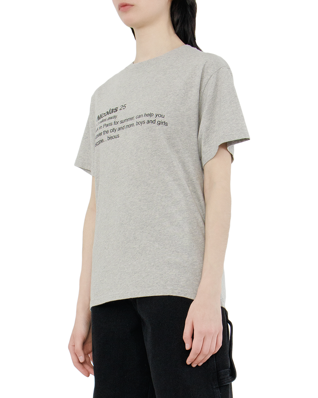 Эта футболка искусно сочетает в себе непринужденный стиль и оригинальность, подчеркивая современный урбанистический дух. Изготовленная из мягкого серого меланжированного хлопка, она обеспечивает комфорт и практичность, став прекрасным базовым элементом гардероба. Ключевой акцент дизайна — это текстовый принт в виде лаконичной заметки на передней части. Черный шрифт на сером фоне создает стильный контраст, добавляя графичности и современный акцент. Этот элемент позволяет внести в образ индивидуальность и легкую игривость. Футболка имеет классический прямой крой, предлагающий удобную и расслабленную посадку. Аккуратный круглый вырез горловины, оформленный эластичной резинкой, сохраняет форму и придает завершенный вид. Свободные рукава и общая легкость силуэта делают изделие универсальным выбором как для повседневной носки, так и для более кэжуал образов. Эта футболка легко комбинируется с джинсами или шортами, позволяя создать стильный и выразительный наряд.