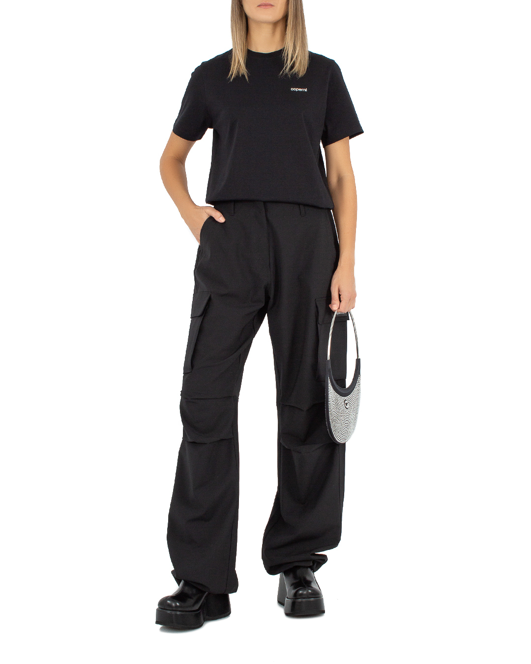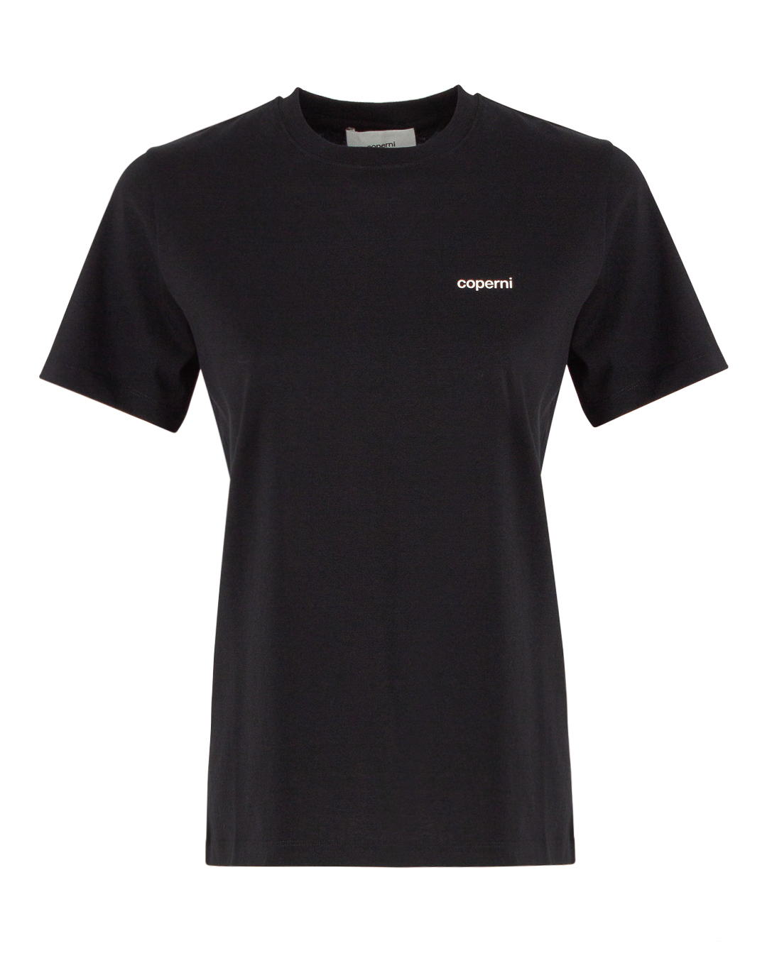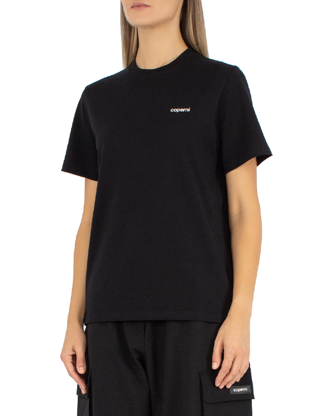 Хлопка COPERNI из трикотажного хлопка с логотипом бренда. Модель прямого силуэта с круглой линией выреза и короткими рукавами.