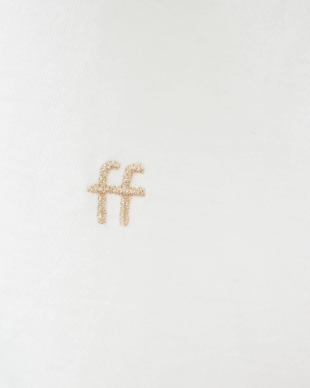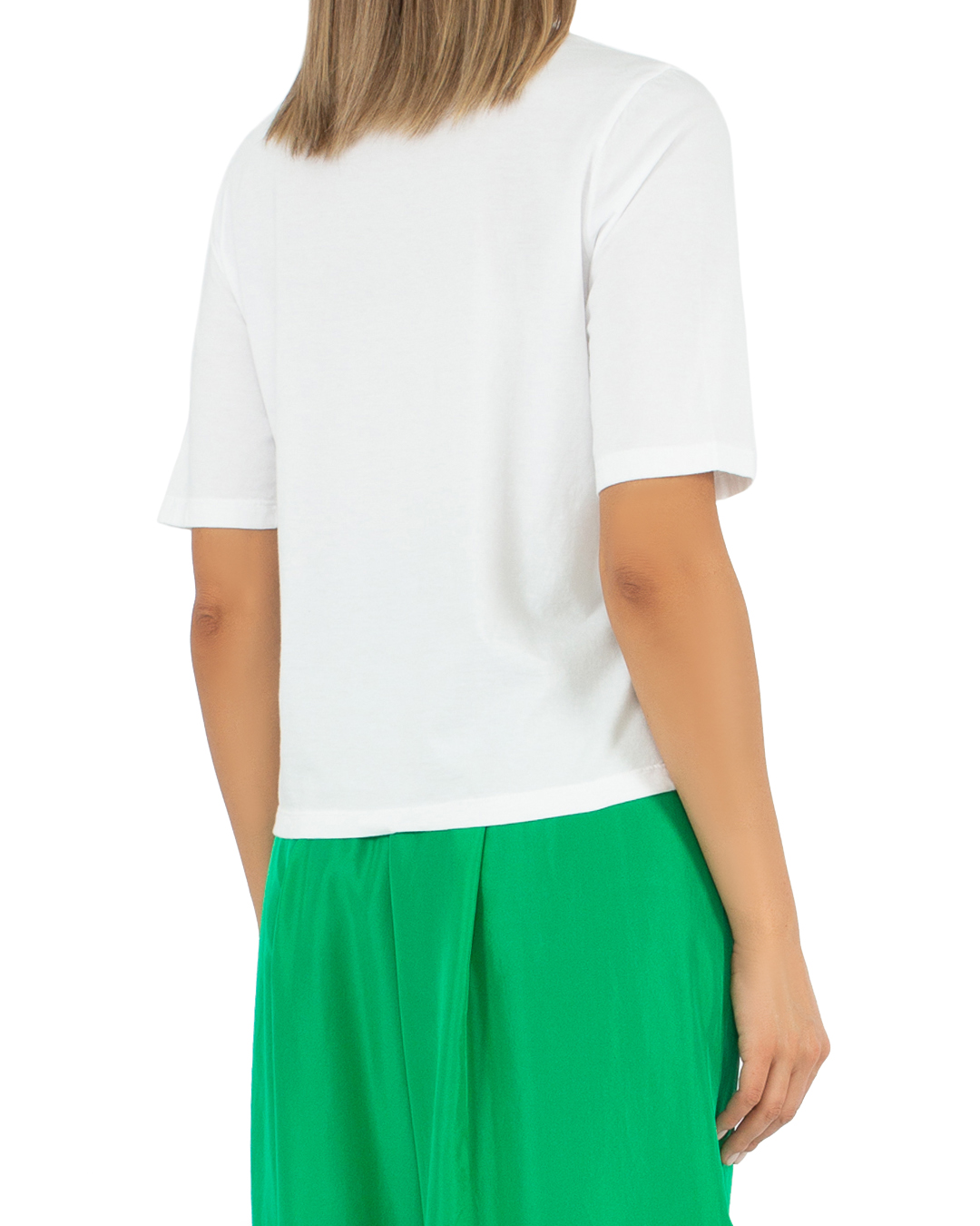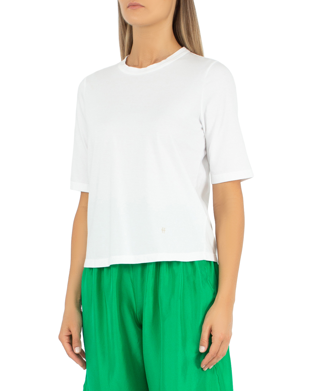 Футболка forte_forte из трикотажного хлопка белого цвета. Модель прямого слегка укороченного силуэта с миниатюрной вышивкой.