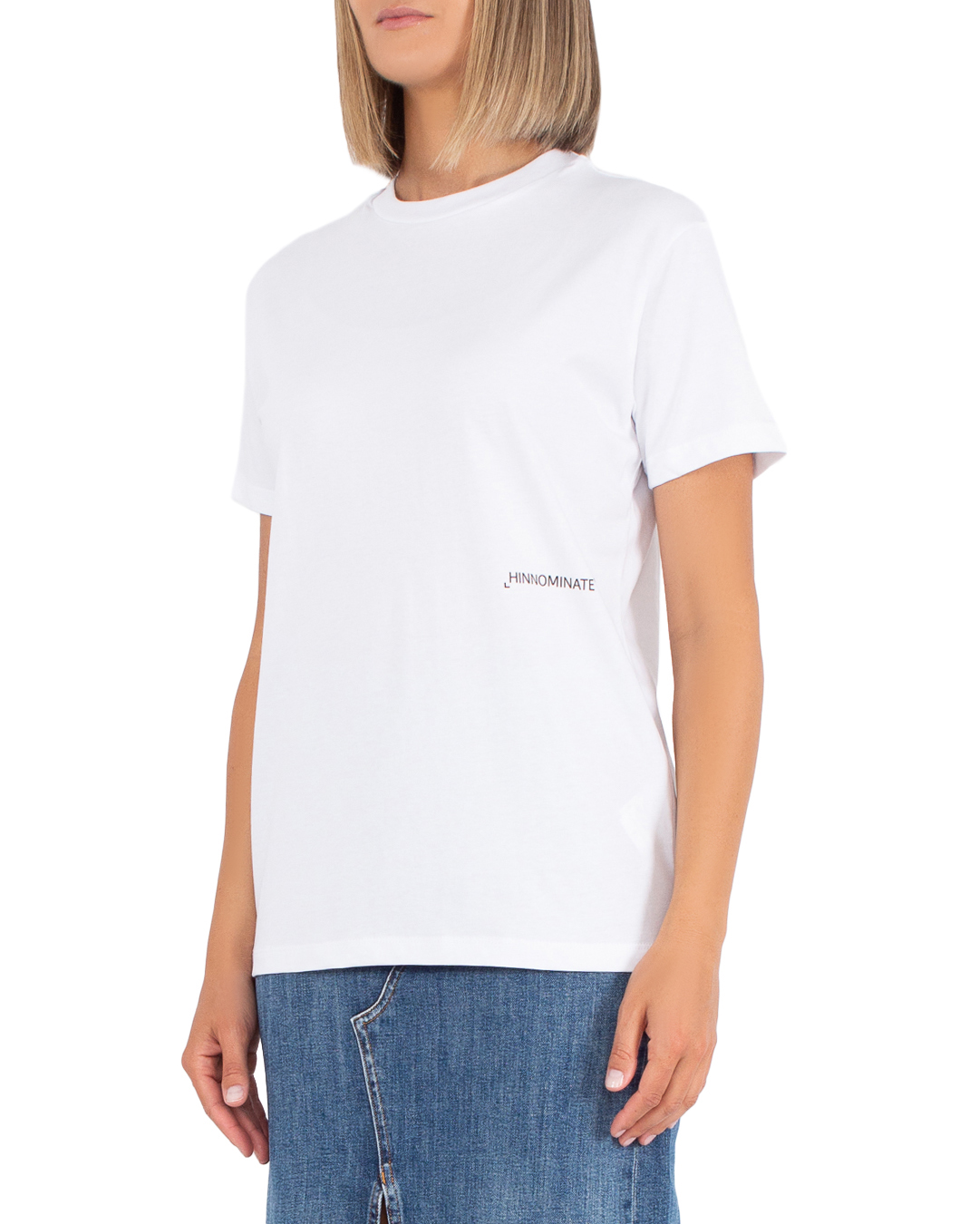 Футболка HINNOMINATE из трикотажного хлопка с логотипом бренда. Модель прямого силуэта с короткими рукавами и круглой линией выреза.