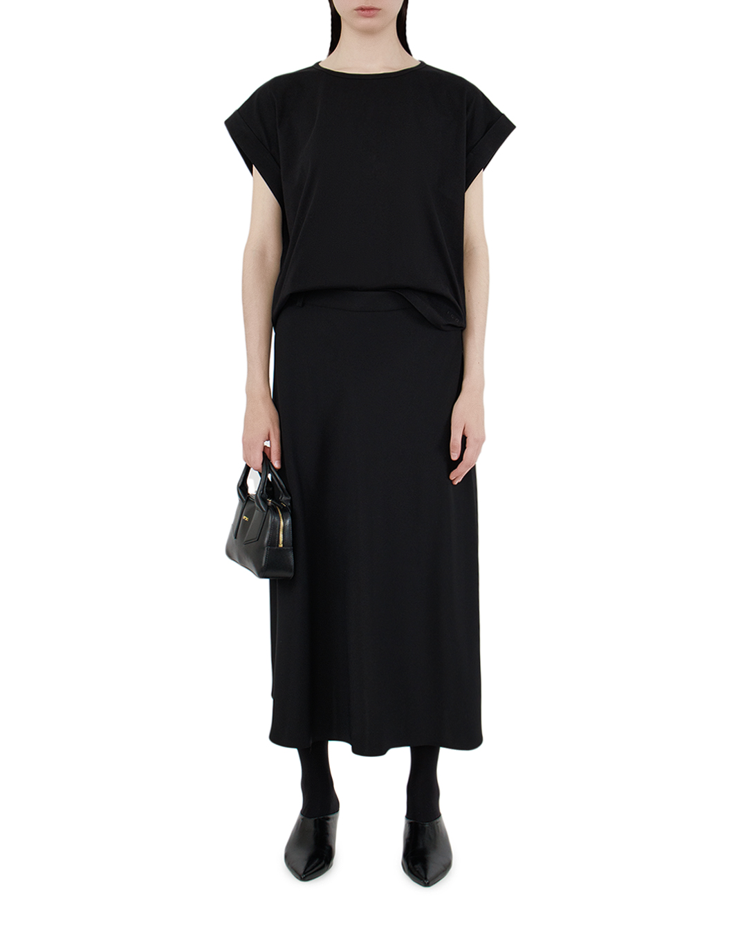 Эта футболка — квинтэссенция элегантного минимализма и современного комфорта. Глубокий черный цвет придает изделию универсальность и делает его базовым элементом гардероба, легко сочетаемым с любыми образами. Изготовленная из мягкой и приятной на ощупь ткани, футболка дарит ощущение комфорта и легкости. Свободный крой обеспечивает непринужденную посадку, а широкие плечи создают современный и актуальный силуэт. Горловина оформлена в классическом стиле с круглым вырезом, который подчеркивает линии шеи и декольте, аккуратно завершая образ. Эффектные отвороты на рукавах добавляют конструкции объем и динамику, привнося нотку архитектурности в общий дизайн. Благодаря созданию чистых линий и акцента на простоту форм, эта футболка станет идеальной для тех, кто ценит стиль и комфорт, и позволит подчеркнуть ваш уникальный вкус, сочетая ее как с джинсами, так и с юбками или костюмами, создавая множество стильных комбинаций.