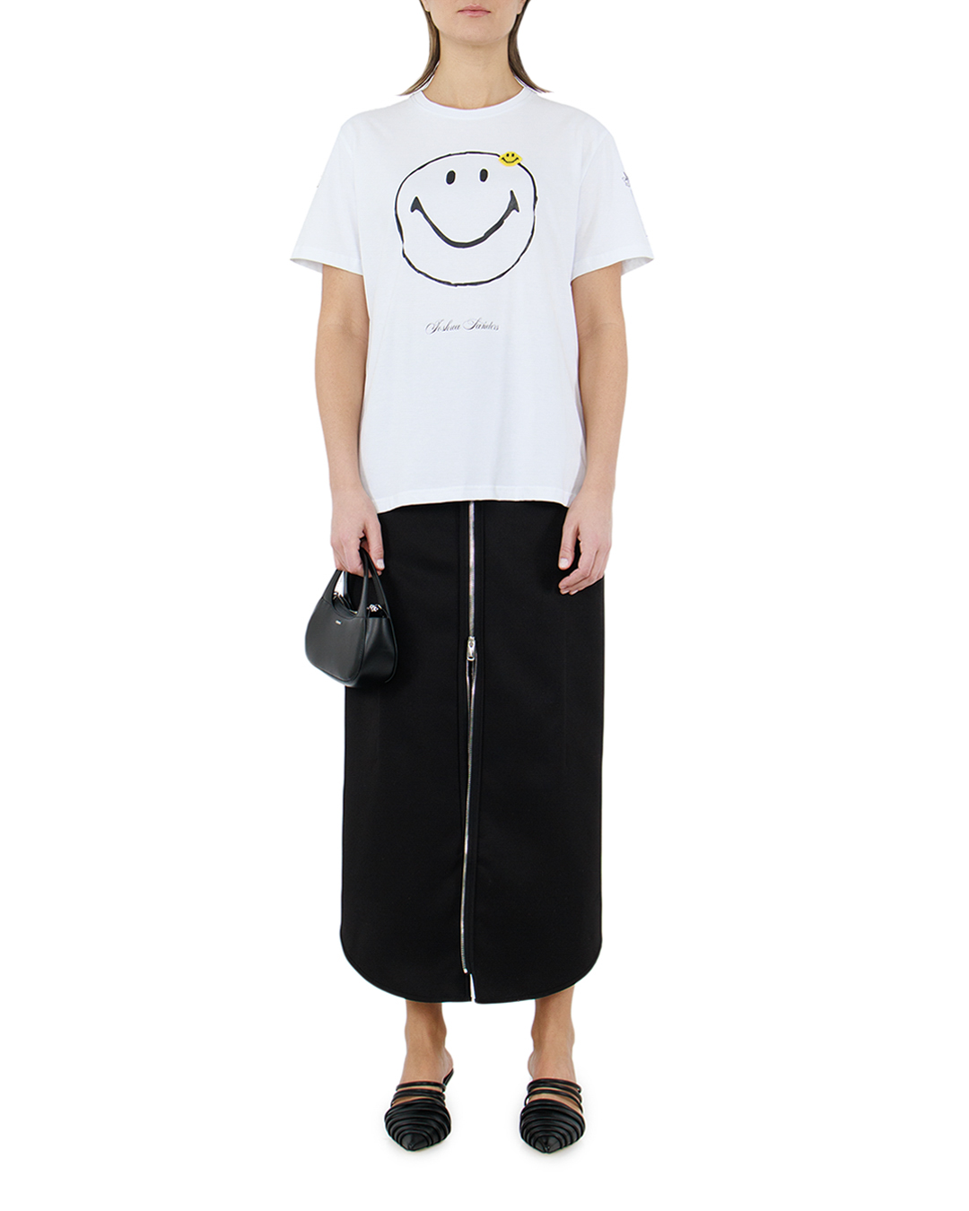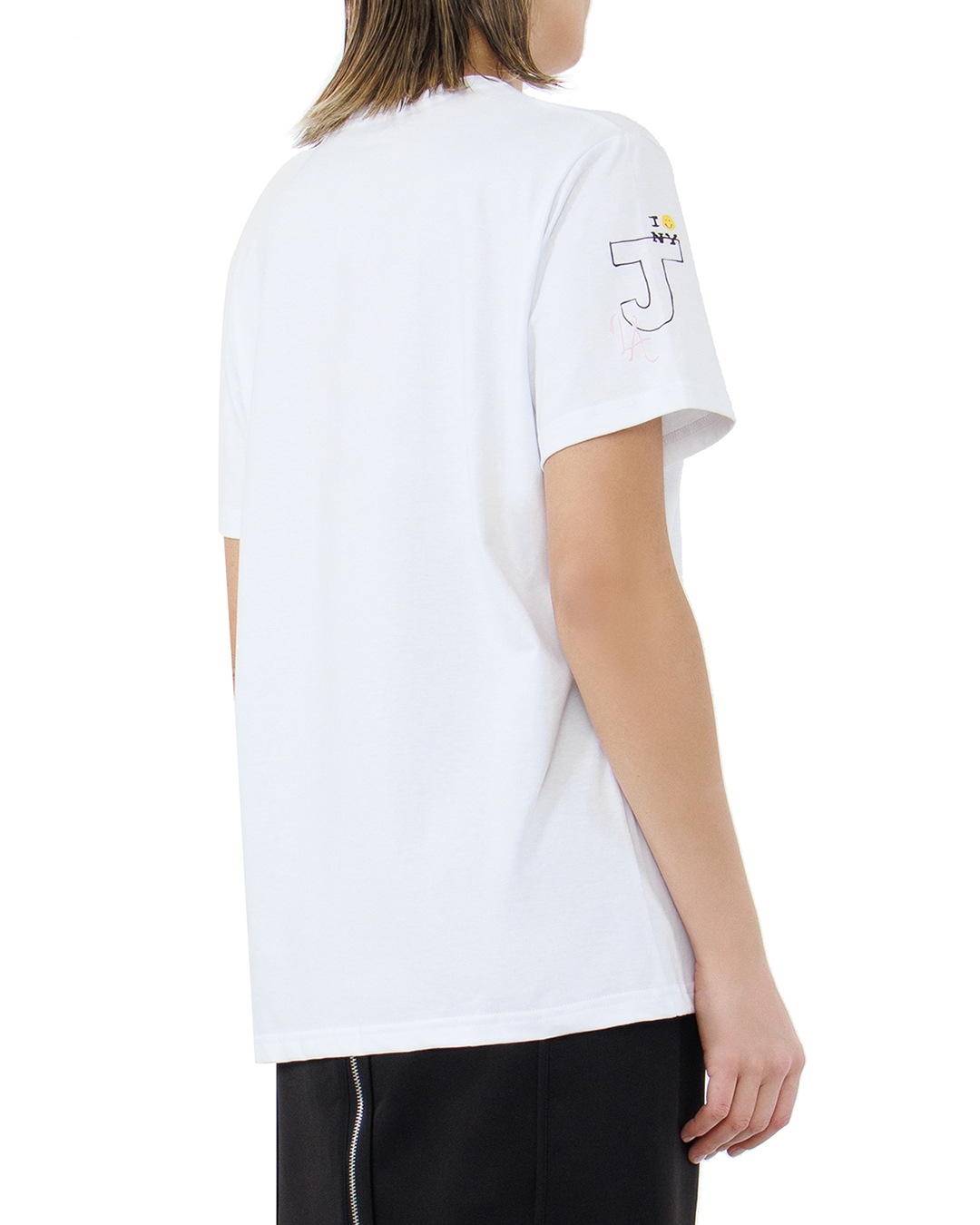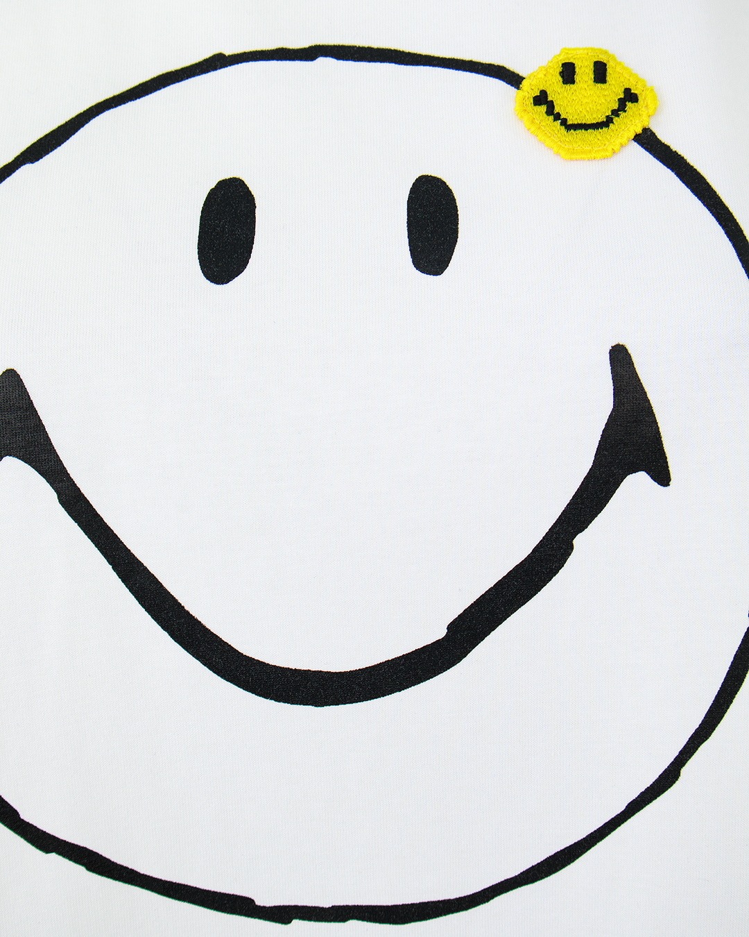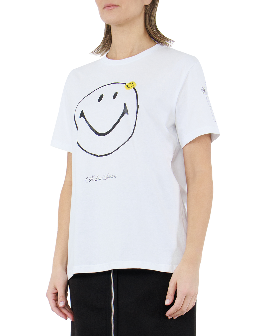 Футболка от JOSHUA'S сочетает в себе игривость и современный стиль, делая её идеальной для создания casual образов. Изготовленная из мягкого хлопка, она обеспечивает комфорт и приятные тактильные ощущения. Белый цвет создаёт чистое полотно, на котором выделяется крупный принт с изображением смайла, воплощая в себе позитив и непринуждённость. Смайл подчеркнут минималистичным черным контуром, а рядом с ним расположено яркое жёлтое вышитое лицо, что добавляет текстурный и цветовой акцент. На уровне груди изящно написано название бренда, создавая тонкую авторскую подпись. На рукаве добавлен небольшой печатный элемент, усиливающий уникальность дизайна. Эта футболка прекрасно впишется в гардероб любителей неформальной моды, привнося атмосферу радости и легкости в повседневные образы.