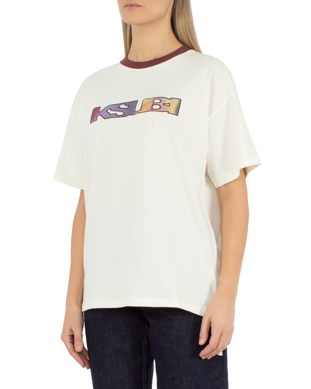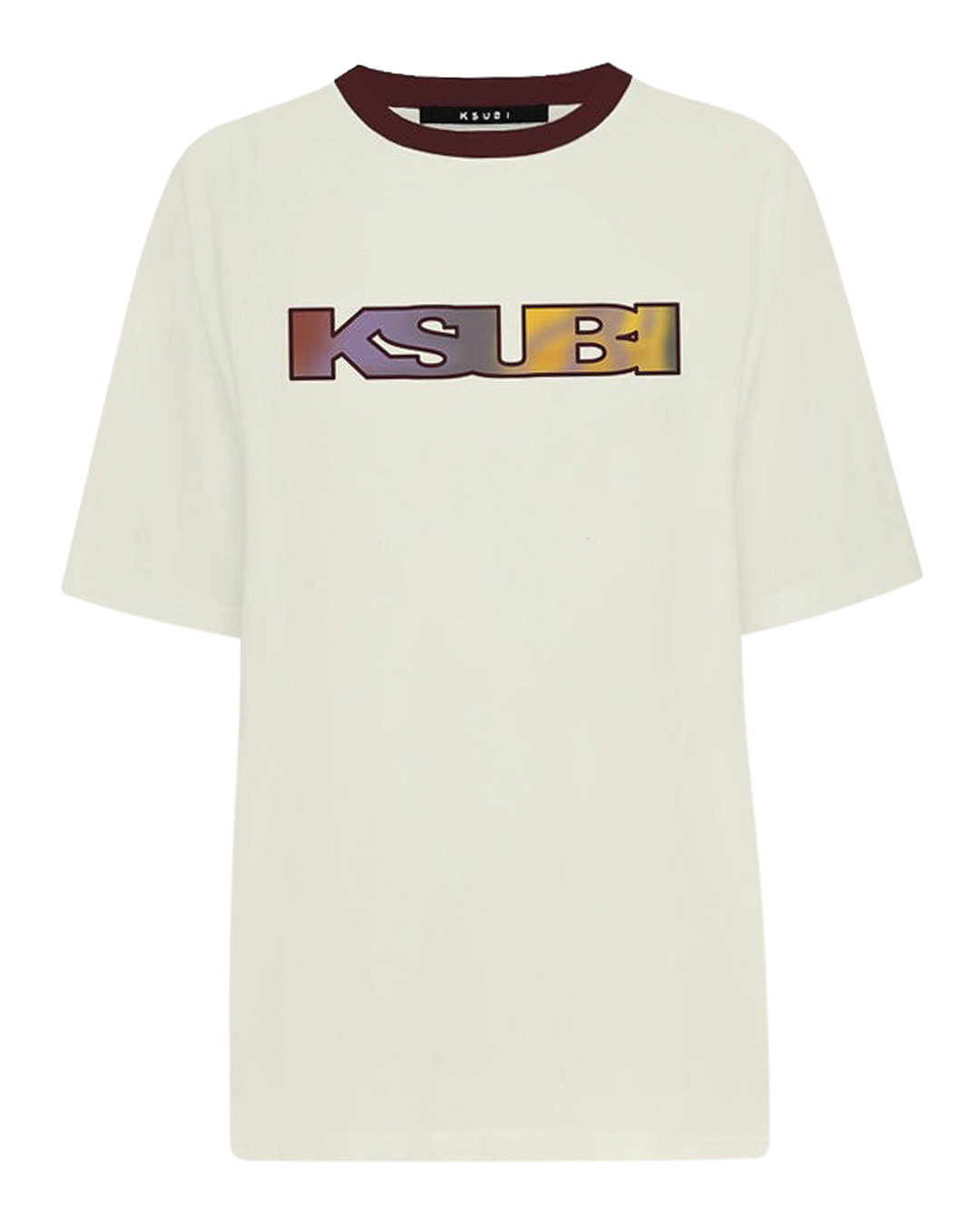 Футболка KSUBI из трикотажного хлопка с принтом. Модель прямого свободного силуэта с круглой линией выреза.