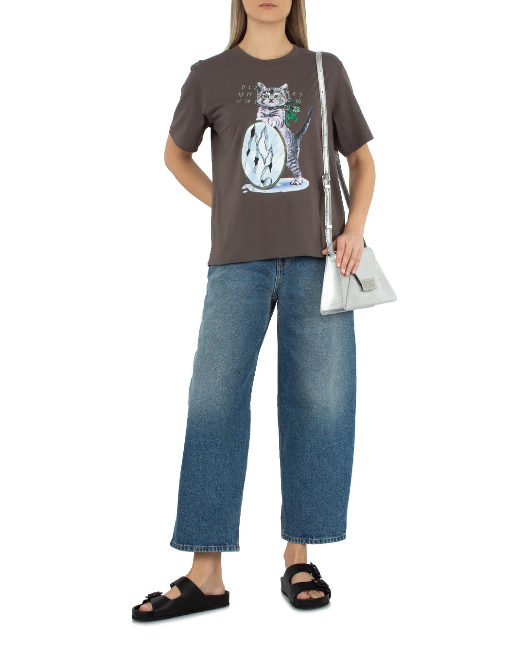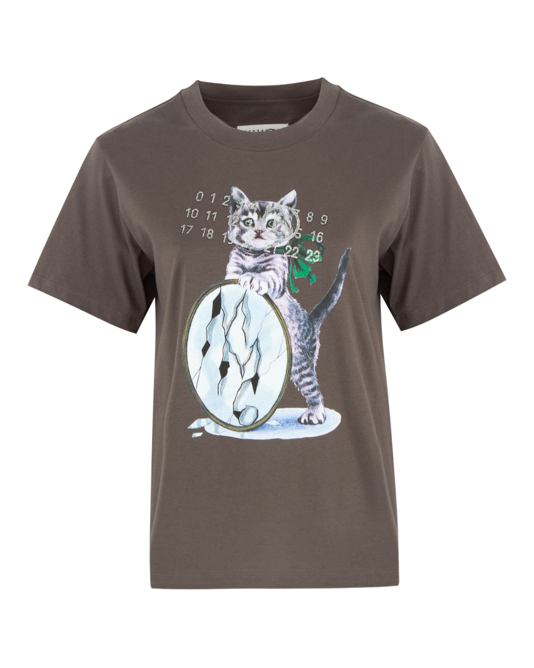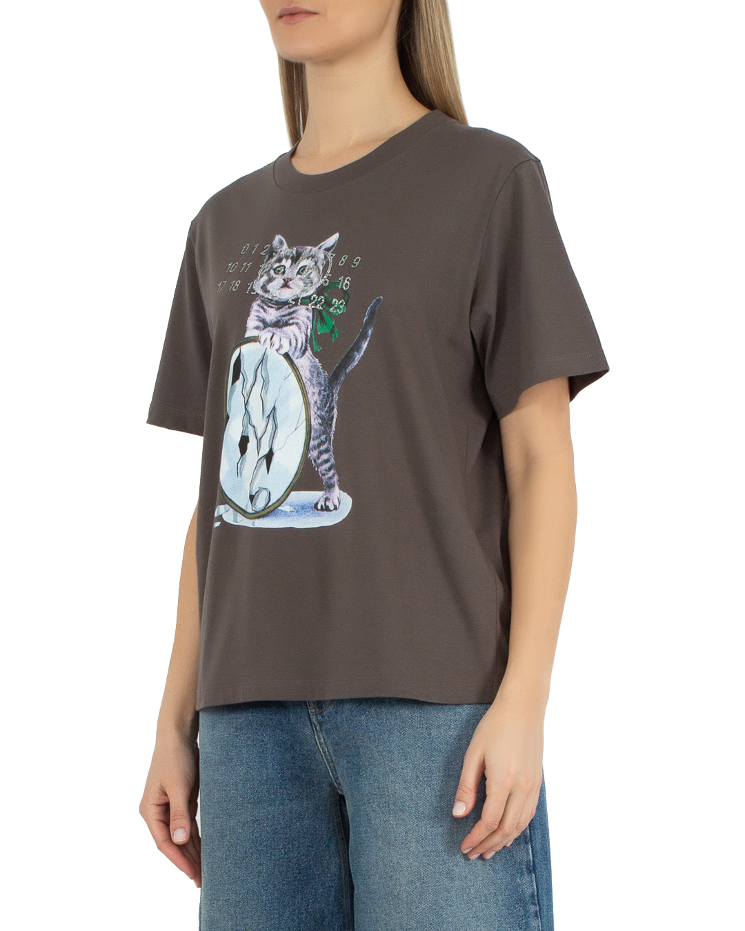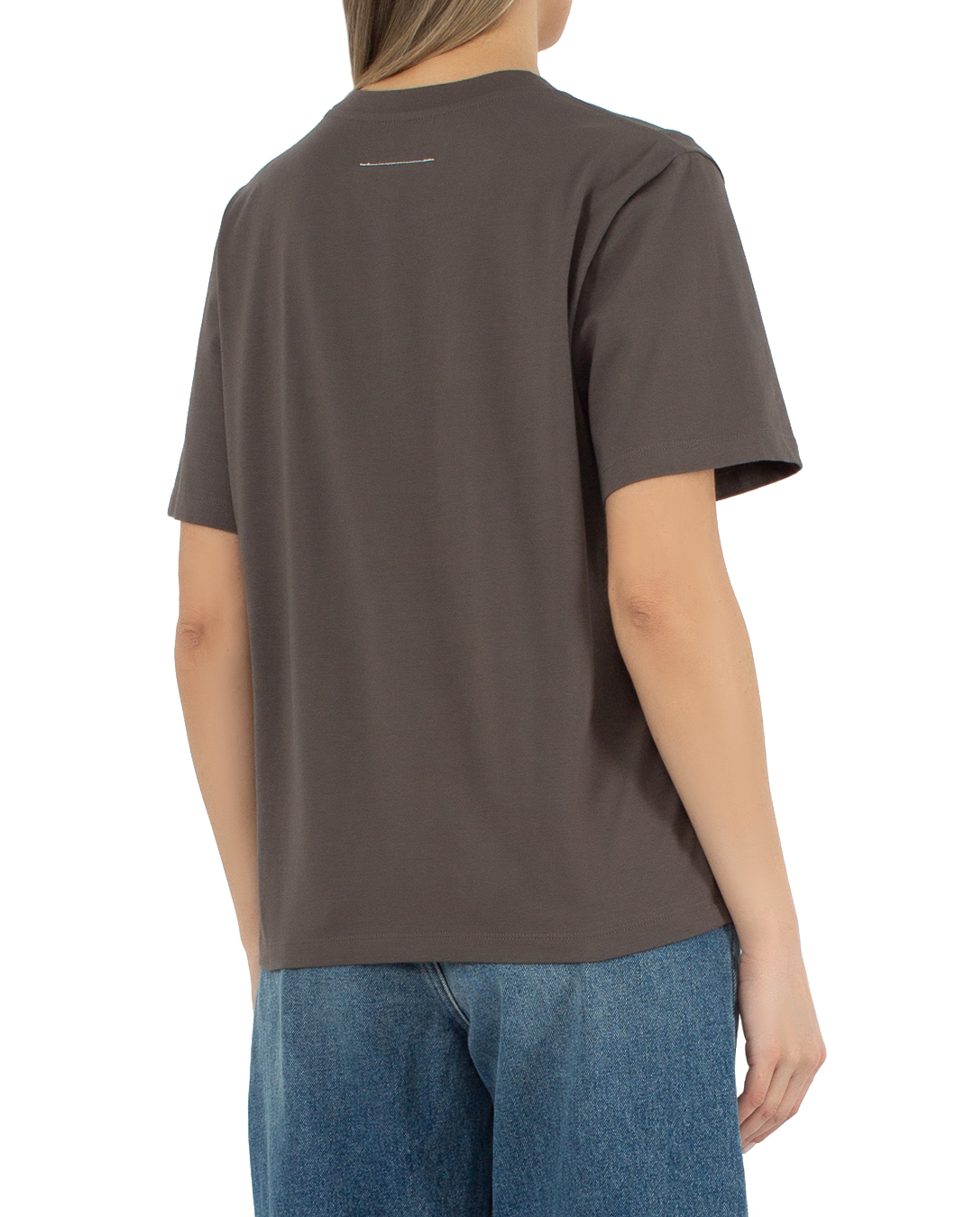 Футболка MM6 Maison Margiela из трикотажного хлопка с принтом. Эластичное изделие прямого силуэта с круглой линией выреза и короткими рукавами.