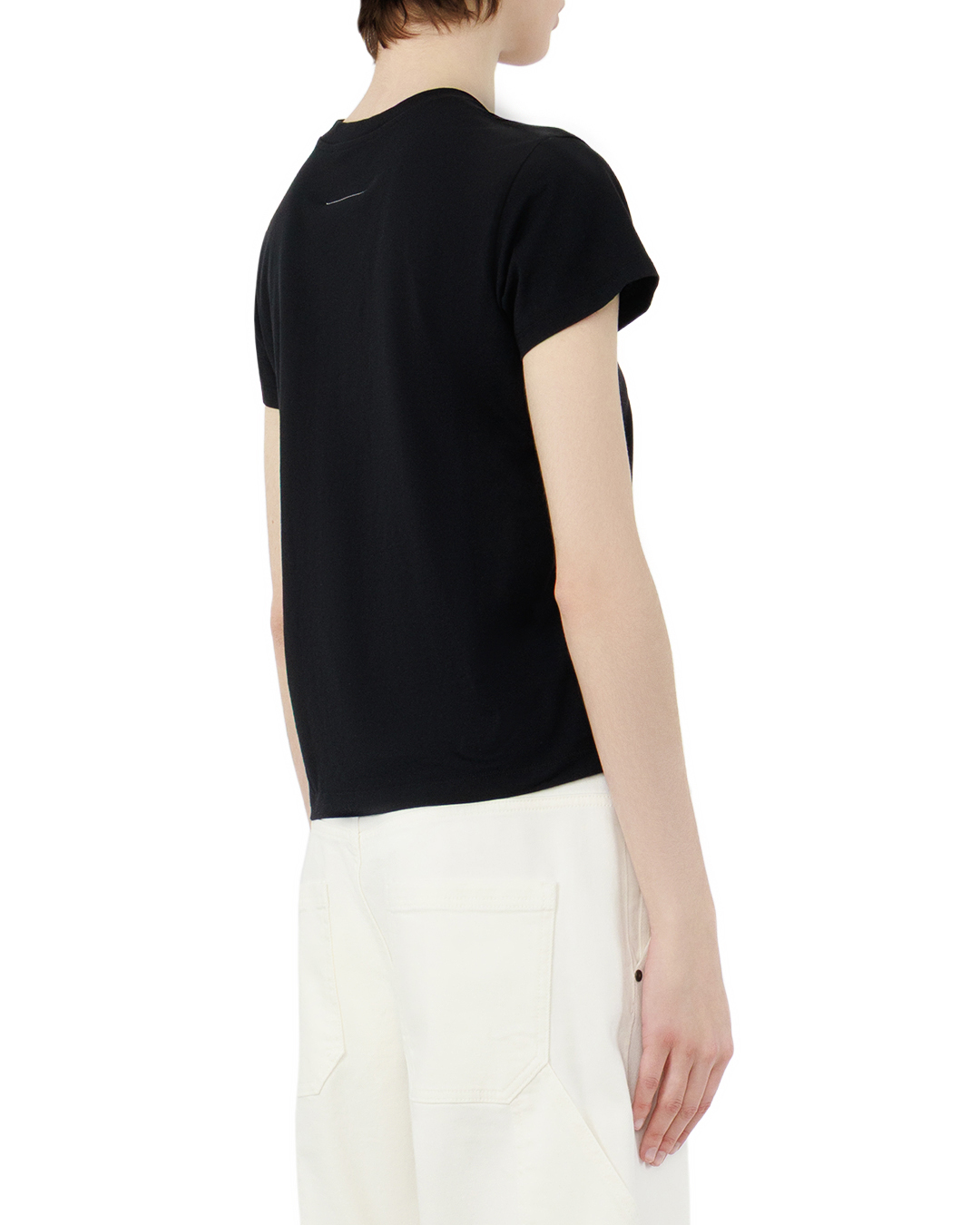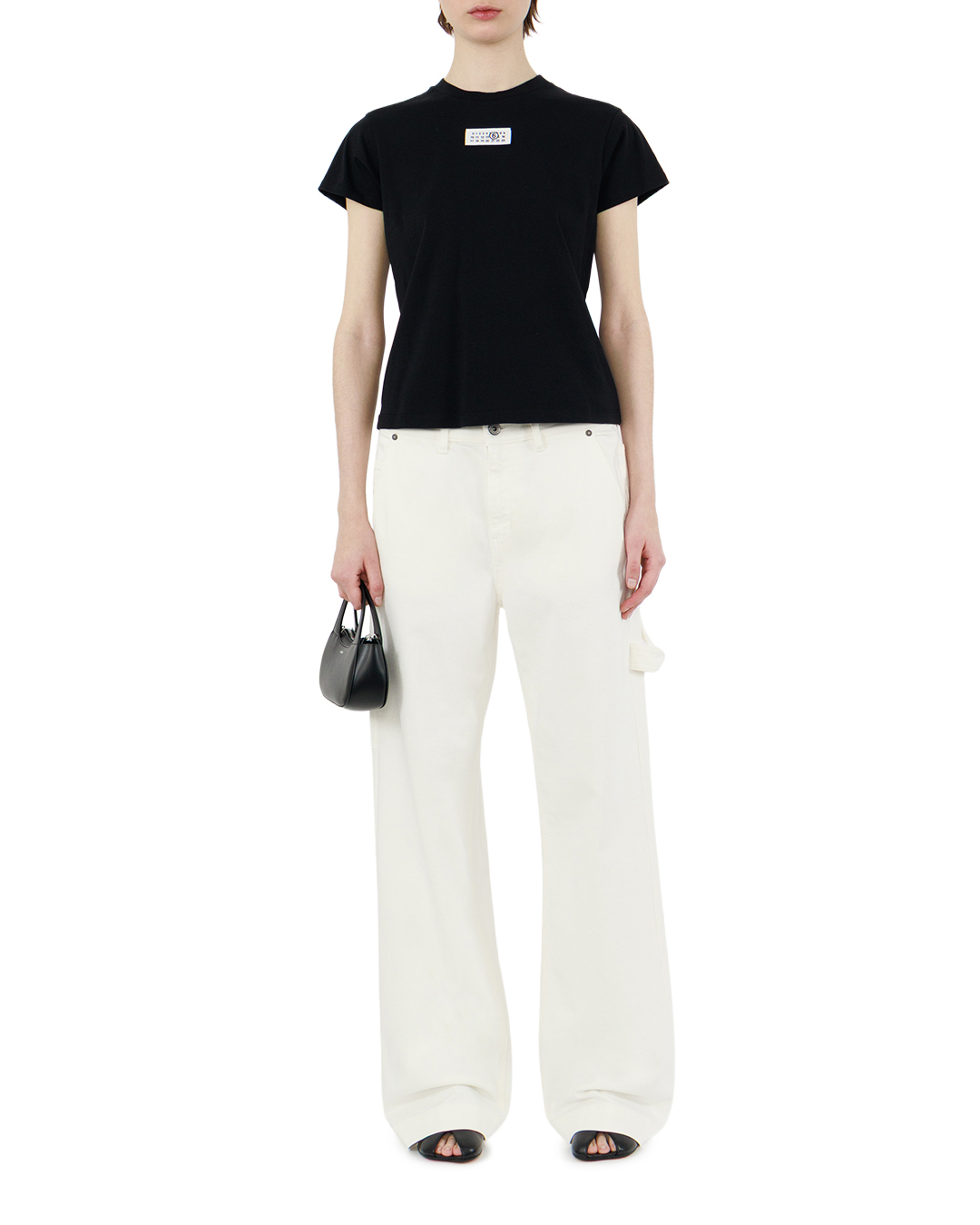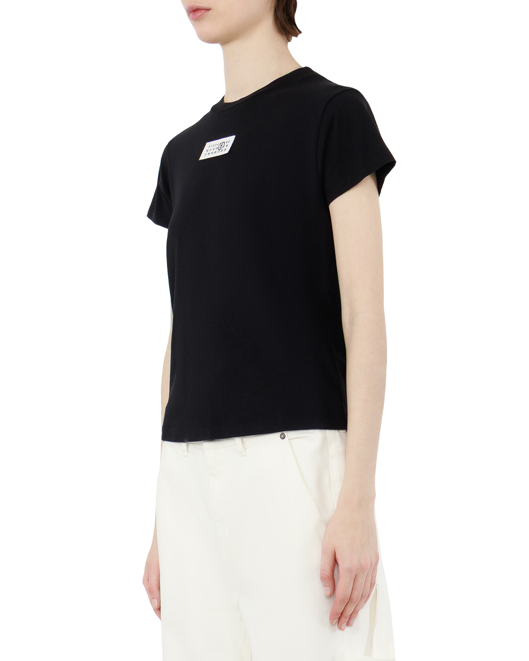 Эта футболка выполнена из высококачественного хлопкового тенсела с плотностью ткани средней толщины, что обеспечивает комфортную посадку и отличную воздухопроницаемость. Классический силуэт с прямым кроем и округлым вырезом горловины (neckline) выгодно подчеркивает универсальность модели, подходит для любого типа фигуры. Отделка минималистична и в то же время выразительна: мелкая нашивка с фирменным цифро-типографическим мотивом расположена на груди, играя роль акцента и декоративного элемента. Обработка швов — двойная игла с аккуратной строчкой по низу и рукавам, что гарантирует долговечность и эстетичность изделия. Благодаря своему лаконичному дизайну и качественным материалам, футболка идеально впишется как в базовый гардероб, так и в более концептуальные модные образы.