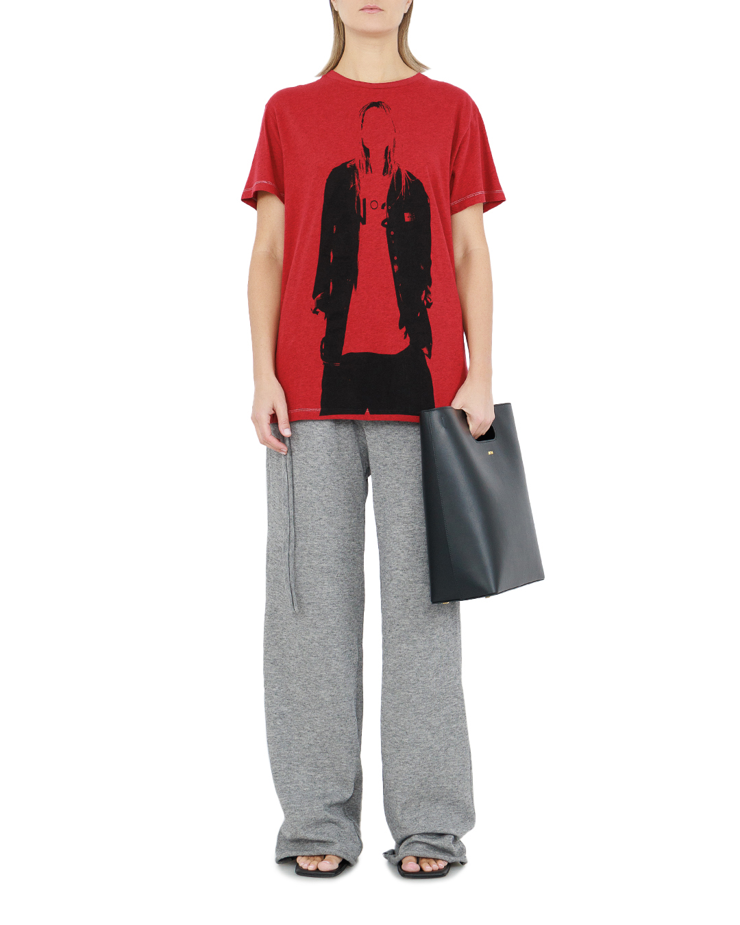 Футболка №21 — это яркое выражение индивидуальности и современного искусства. Насыщенный красный цвет выступает отличным фоном для дерзкого графического принта, привносящего нотку авангарда и креативности в ваш гардероб.  Силуэт футболки с классическим кроем и короткими рукавами обеспечивает комфорт и универсальность, легко сочетаваясь с разными элементами одежды. Изготовленная из мягкого, дышащего материала, она гарантирует приятные ощущения при носке.  Главный акцент этой модели — выразительный принт в виде силуэта, выполненный в контрастном черном цвете. Он добавляет одежде динамики и загадочности, позволяя характеризовать ваш образ как смелый и современный.  Эта футболка идеально подходит как для повседневных выходов, так и для создания оригинальных кэжуал-образов. Ее можно комбинировать с джинсами, юбками или шортами, чтобы добавить вашему стилю ярких акцентов и выразить уникальный вкус.