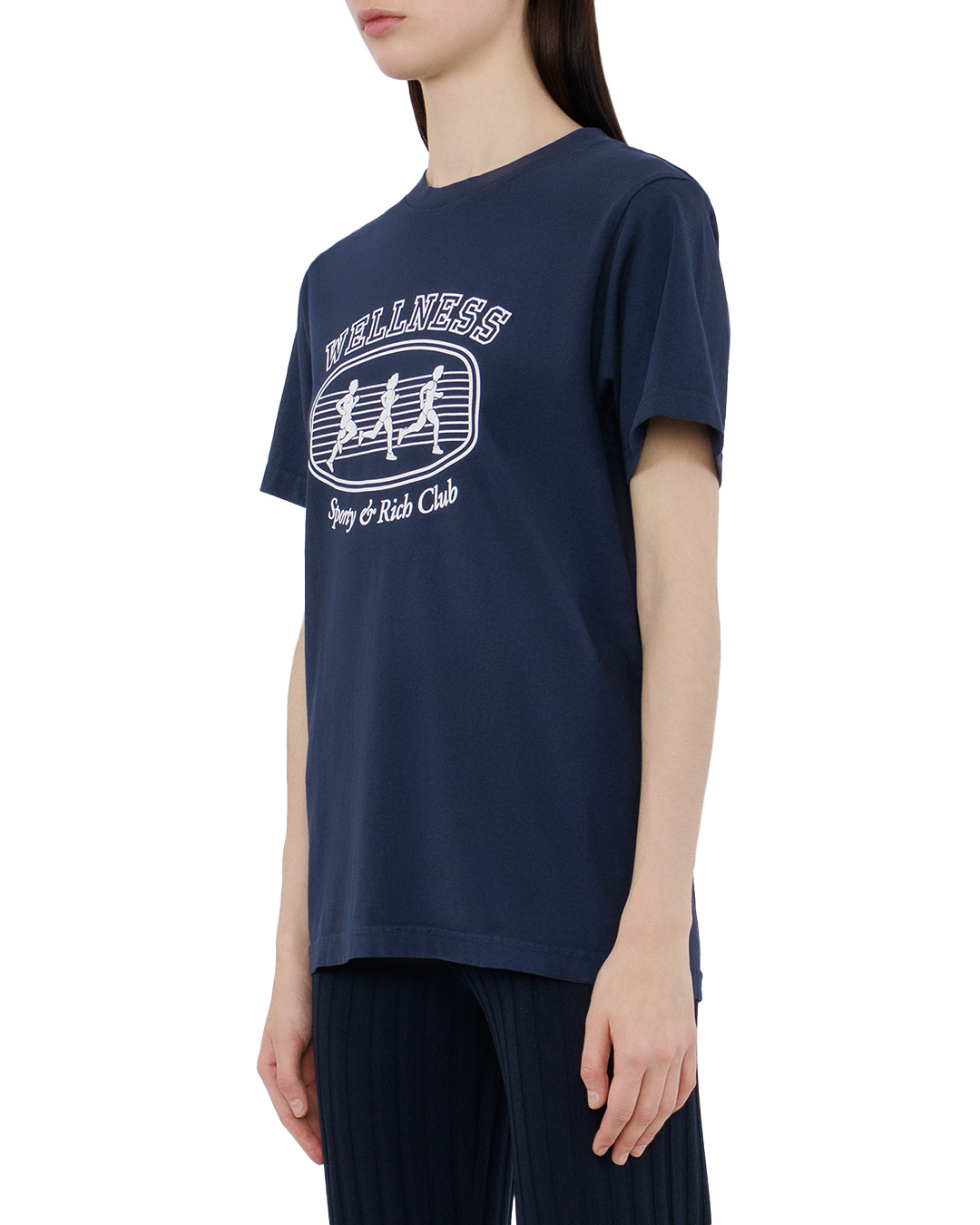 Эта футболка в насыщенном темно-синем оттенке представляет собой идеальное сочетание стиля и комфорта. Изготовленная из качественного хлопка, она обеспечивает отличную воздухопроницаемость и приятные ощущения на коже. Структурированный прямой крой создает универсальный силуэт, который отлично подходит для любого типа фигуры. Классический круглый вырез дополнен мягкой ребристой отделкой, что придает футуристичный и аккуратный вид. На передней части футболки изображен стильный принт, выполненный в технике шелкографии, с графическими элементами, что добавляет акцент и создает современный, молодежный образ. Окантовка рукавов и нижнего края выполнена с использованием двойного шва, что не только подчеркивает общую аккуратность выполненной работы, но и значительно повышает прочность изделия. Эта футболка идеально сочетается как с денимом, так и с спортивными штанами, создавая безупречные образ и комфорт в любой ситуации.