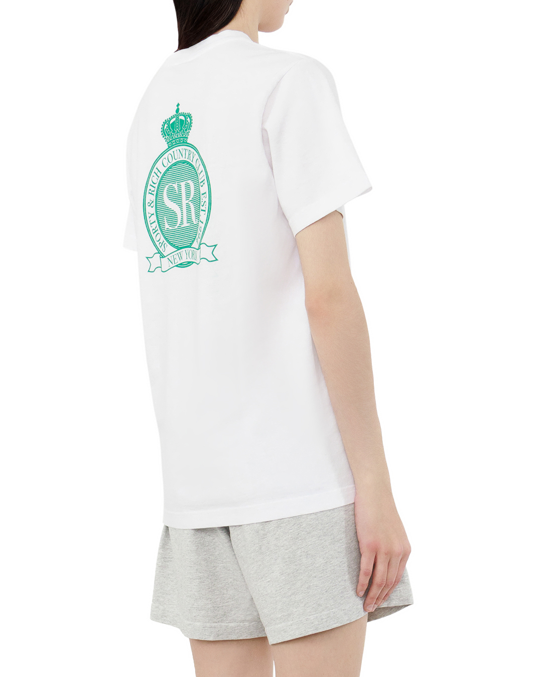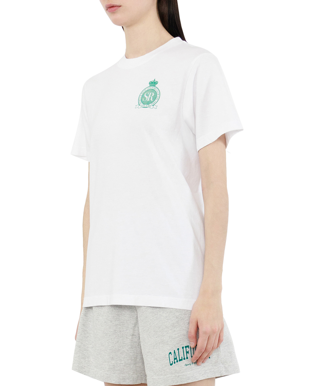 Эта классическая белая футболка представляет собой идеальный пример современного стиля и минимализма. Изготовленная из высококачественного хлопка премиум-класса, она обеспечивает превосходную воздухопроницаемость и мягкость на ощупь. Крой футболки — прямой, что создает универсальный и свободный силуэт, идеально подходящий для любого типа фигур. Классический круглый вырез с ребристой отделкой придает изделию аккуратный и стильный вид. На груди выполнен тонкий вышитый логотип в нежном зеленом оттенке, который добавляет утонченности и акцента. Эта элегантная отделка не только подчеркивает индивидуальность, но и создает интересный контраст с чистотой белого фона. Двойные швы по всему периметру графически подчеркивают внимание к деталям и высокое качество исполнения, что обеспечивает долговечность изделия. Эта футболка отлично сочетается как с классическими джинсами, так и с более формальной одеждой, позволяя создать разнообразные образы.