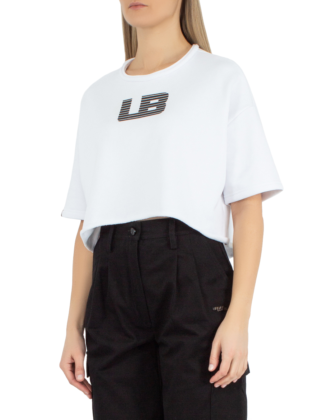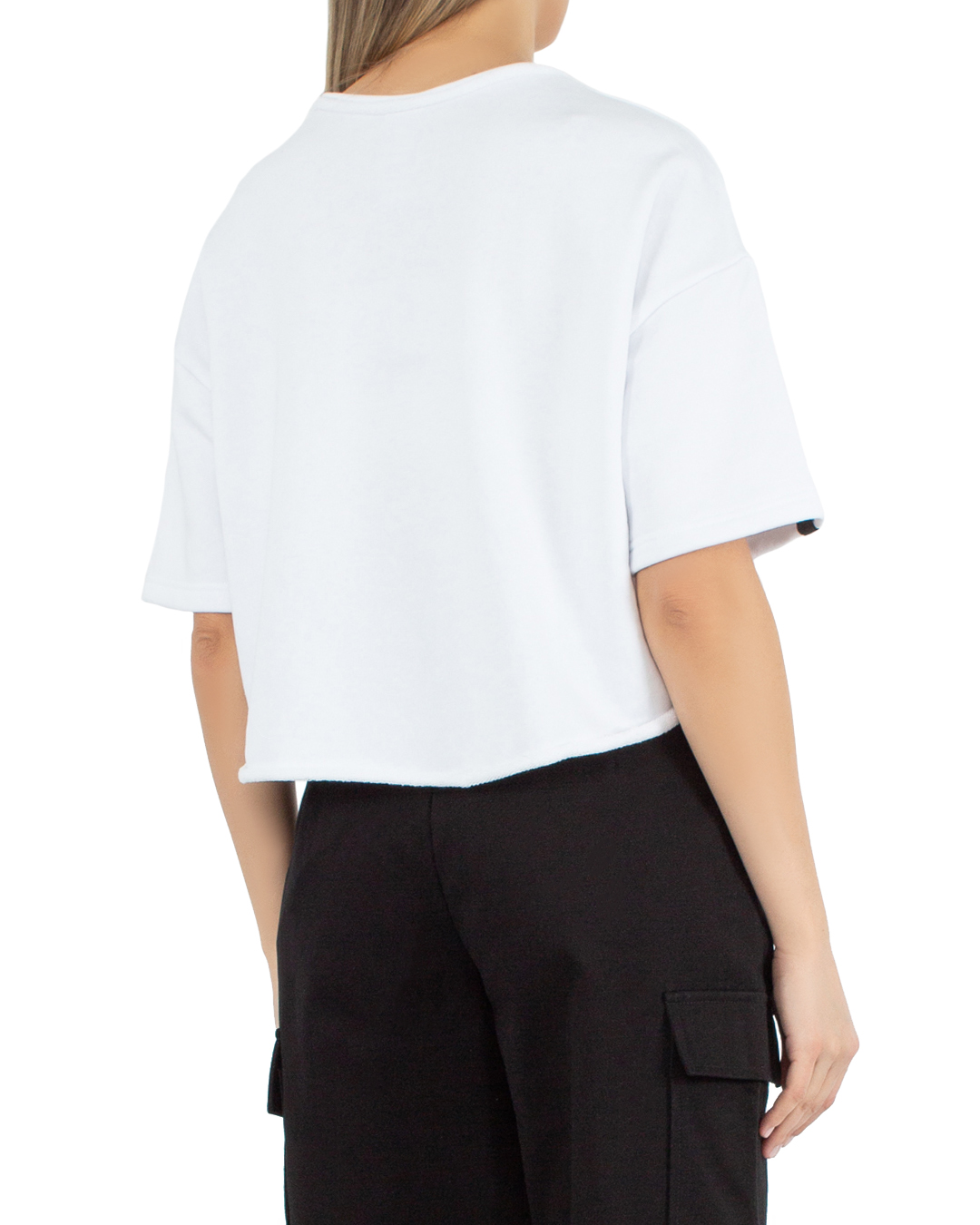 Кроп-топ COPERNI из трикотажного хлопка с принтом логотипа бренда. Укороченное изделие свободного силуэта с круглой линией выреза.