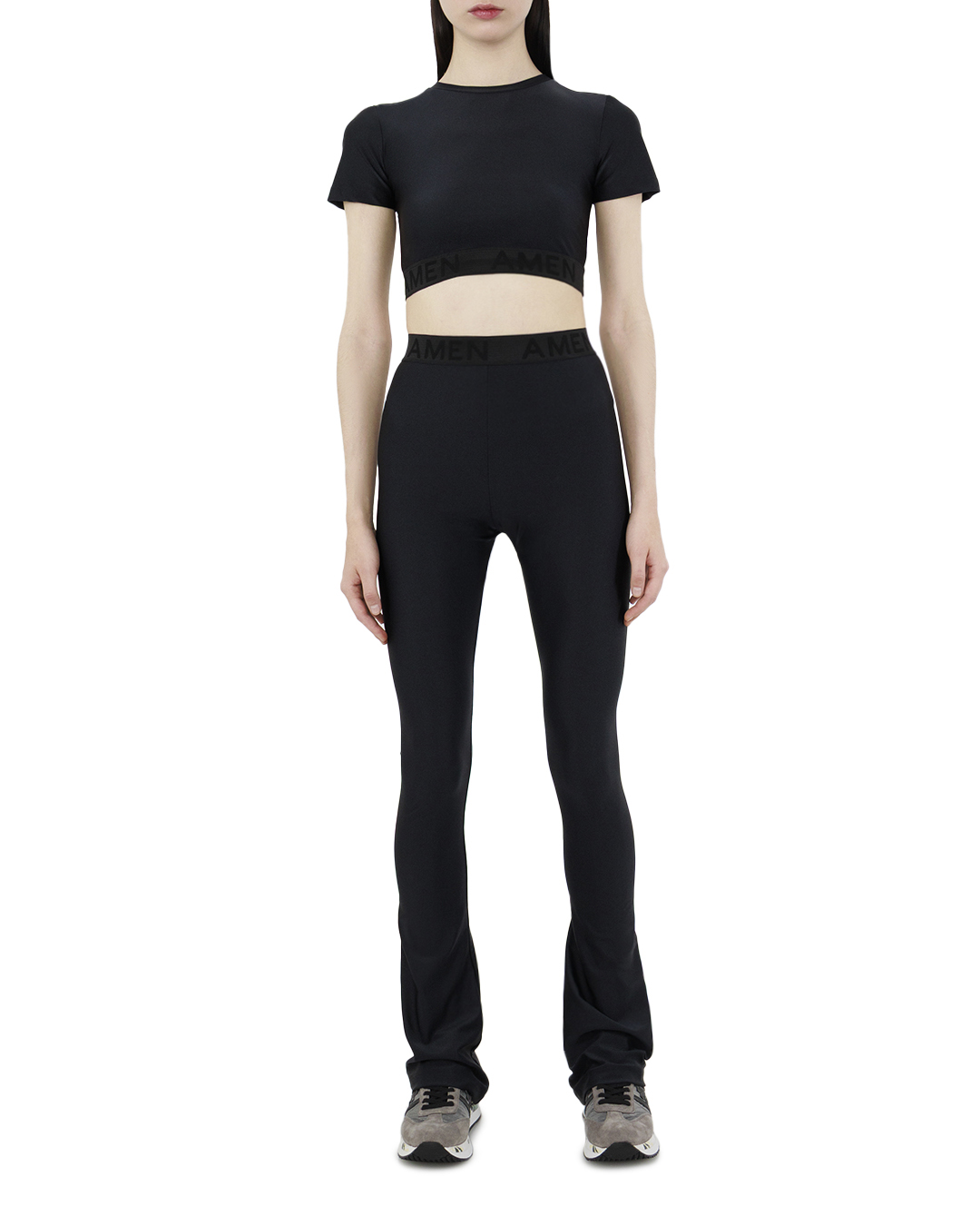 Этот топ олицетворяет собой идеальное сочетание минимализма и современных тенденций. Глубокий черный цвет придает ему универсальность и делает его незаменимой частью гардероба. Лаконичный крой с круглым вырезом и короткими рукавами обеспечивает стильную простоту и независимость от модных капризов. Укороченная длина создаёт элегантный акцент на линии талии, добавляя современной изысканности. Эластичная лента с брендовым логотипом на нижнем крае добавляет спортивный оттенок и динамичность. Этот элемент создает контрастную нотку и привносит в образ легкий намек на спортивный шик. Материал топа обеспечивает комфорт и хорошую посадку, что делает его идеальным выбором как для повседневного ношения, так и для тренировок. Этот топ легко комбинировать с разнообразными элементами гардероба, позволяя создавать как кэжуальные, так и более изысканные образы, с ноткой сдержанной элегантности и стиля.